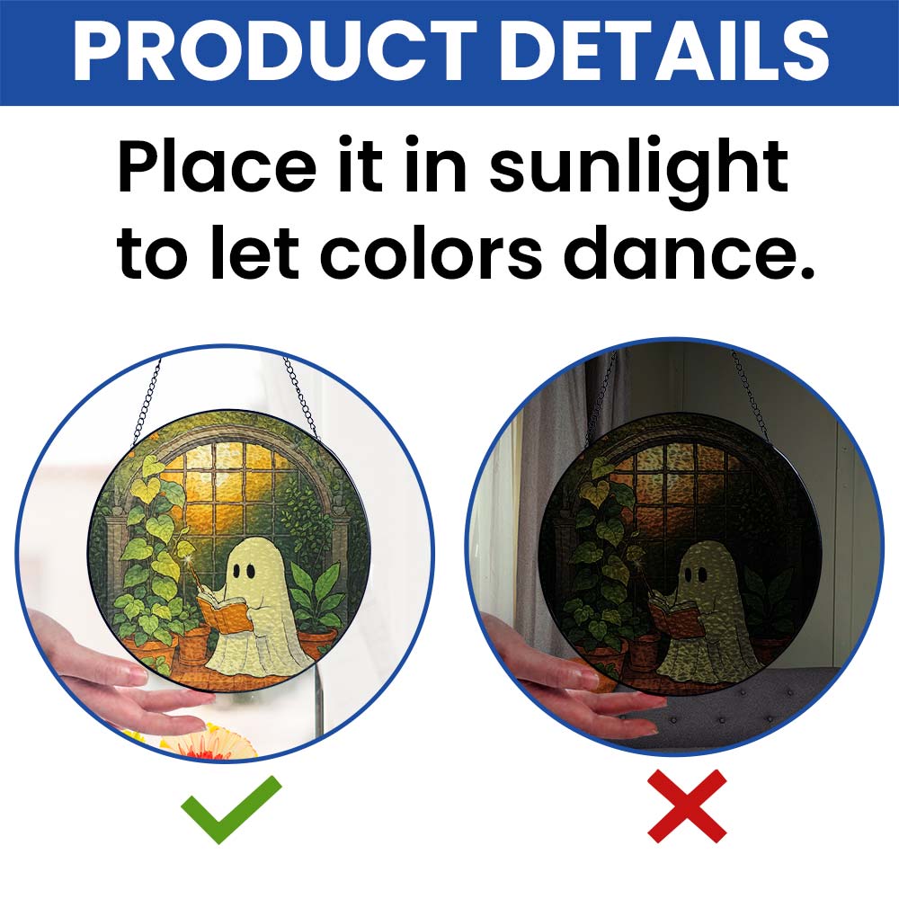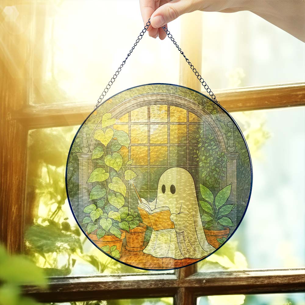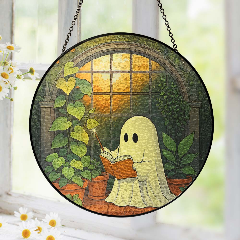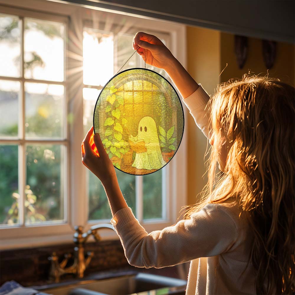 Cute Ghost at Greenhouse Suncatcher – Stained Glass Window Hanging For Plant Lovers