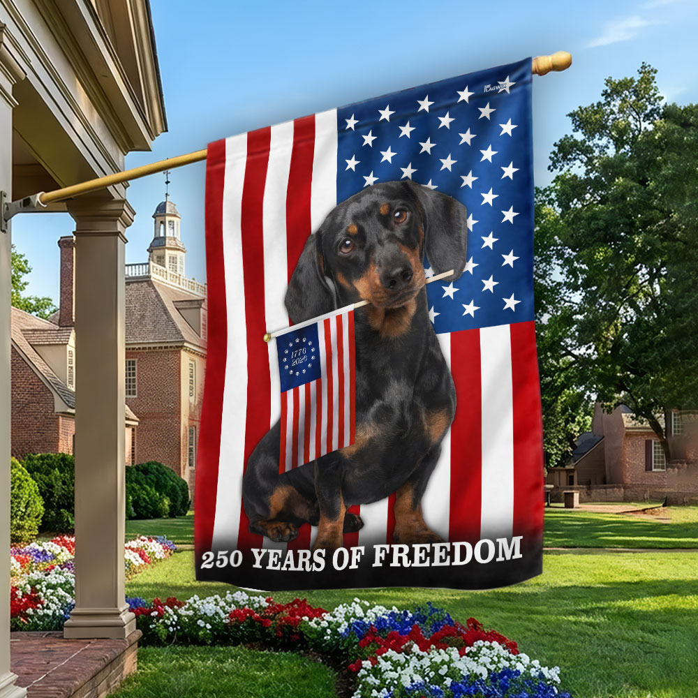 Dog American Flag, 250 Years of Freedom Dachshund Dog US Flag