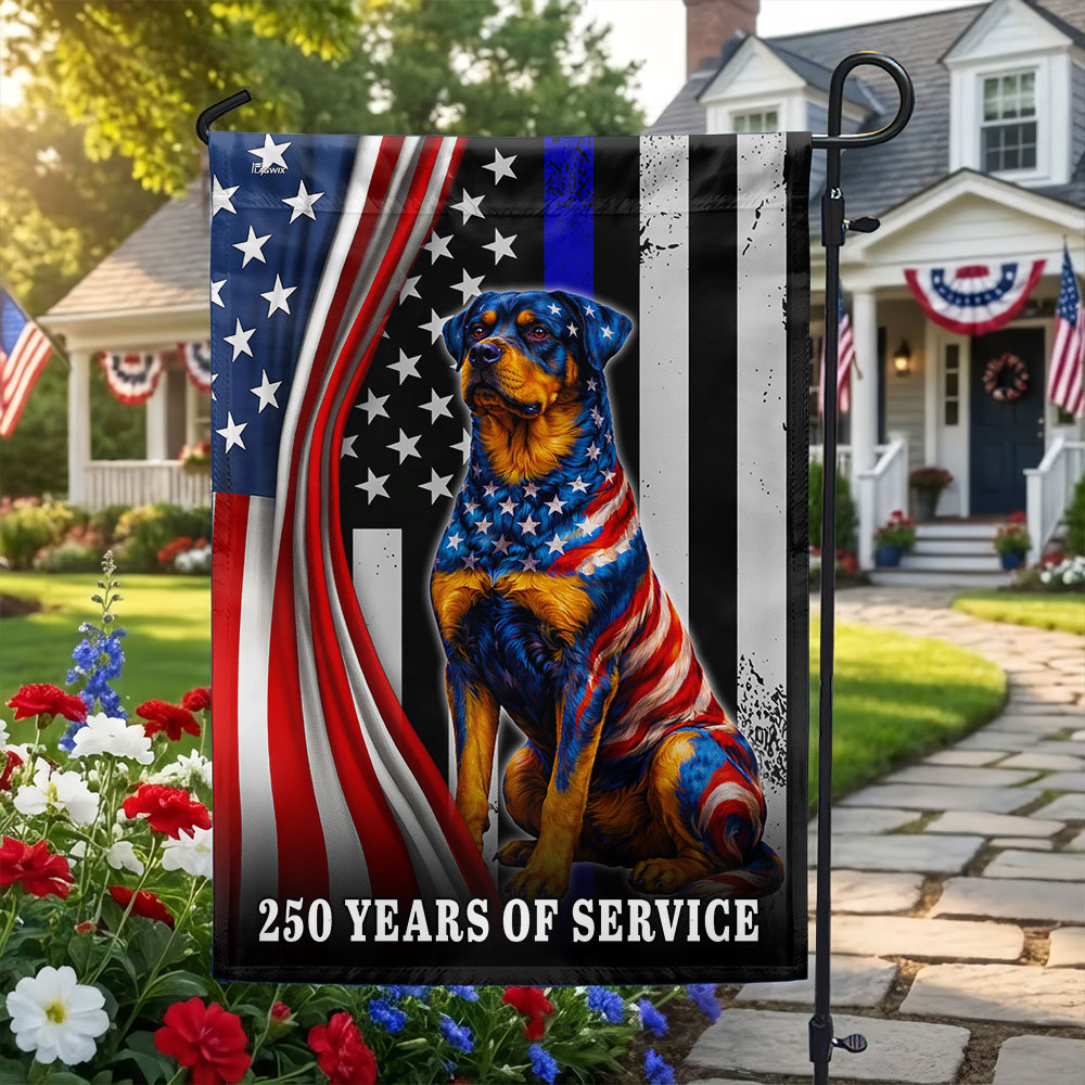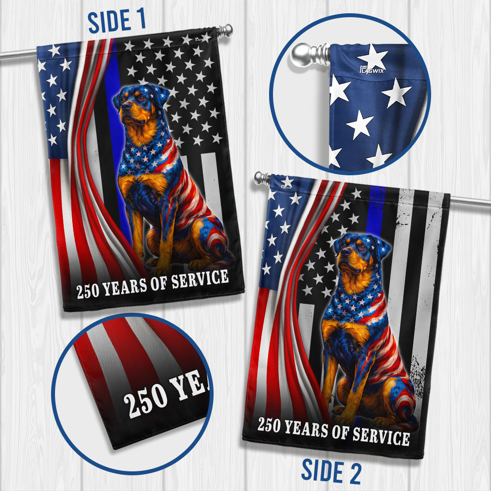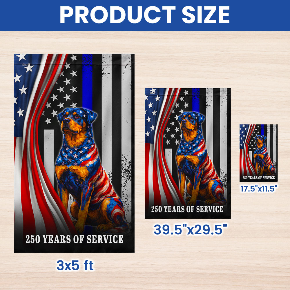 Dog American Flag, 250 Years of Service Rottweiler Thin Blue Line US Flag