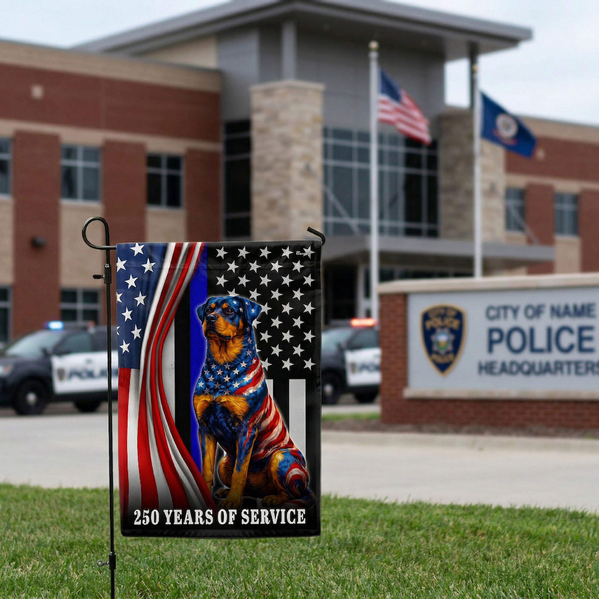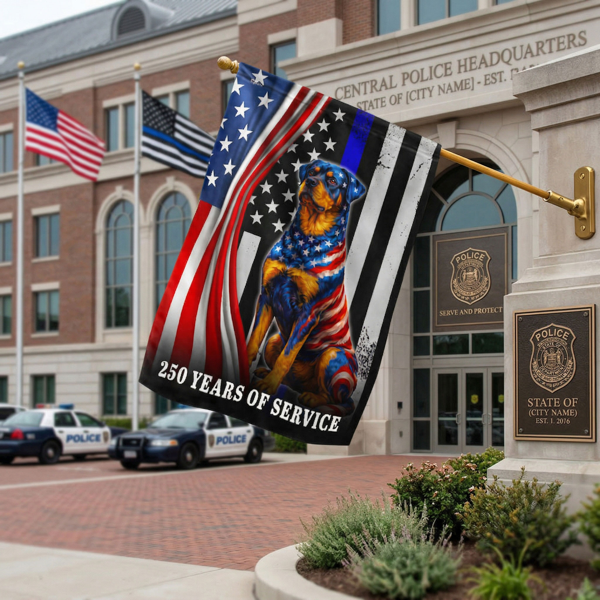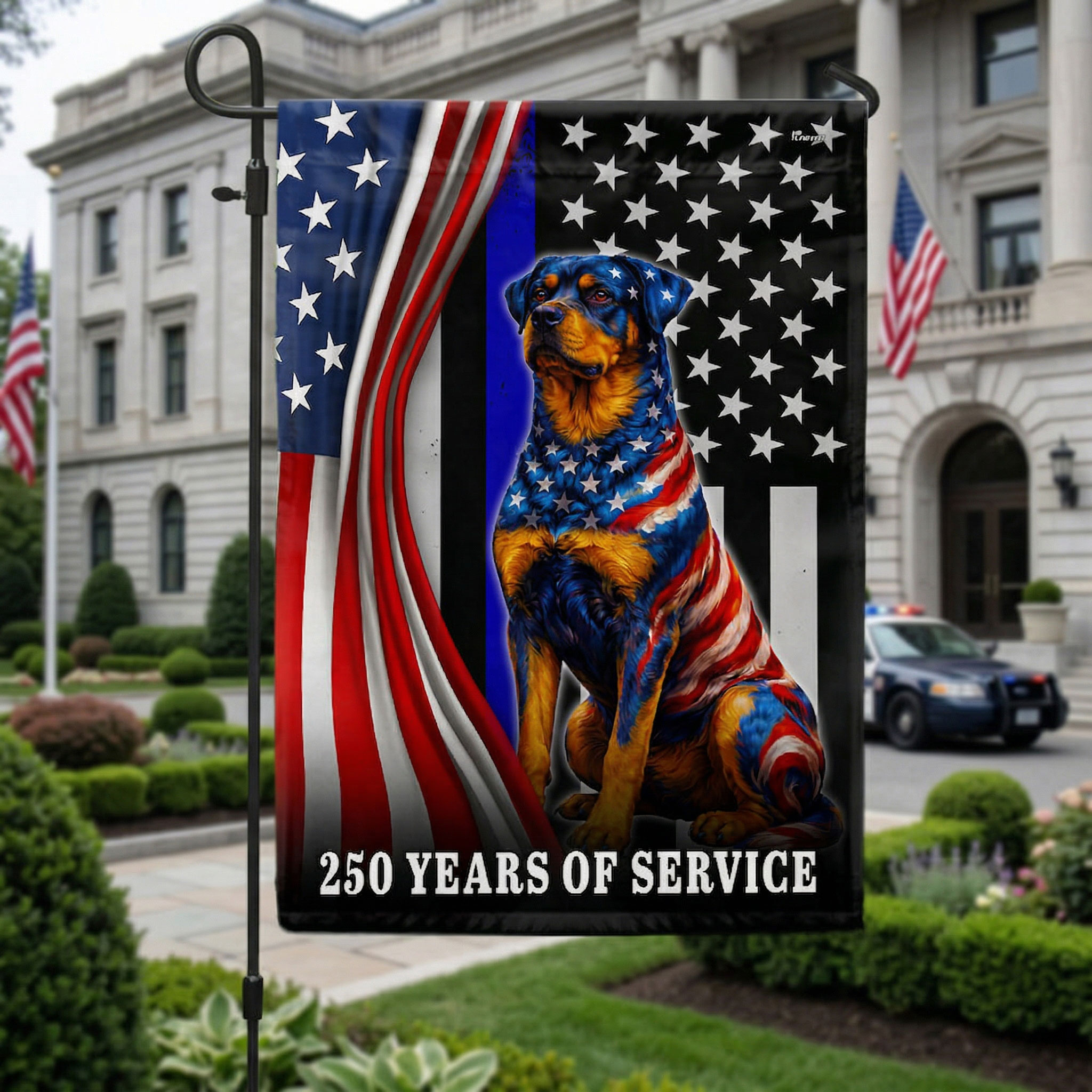Dog American Flag, 250 Years of Service Rottweiler Thin Blue Line US Flag
