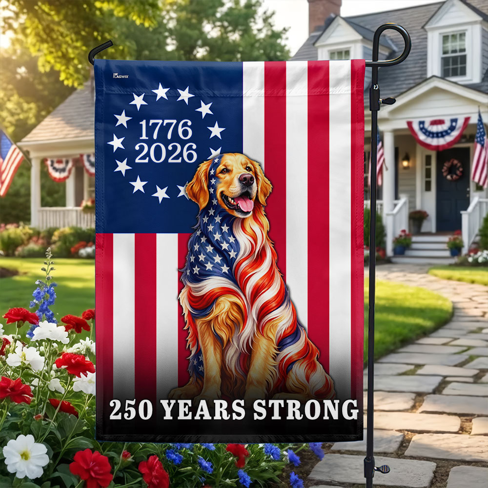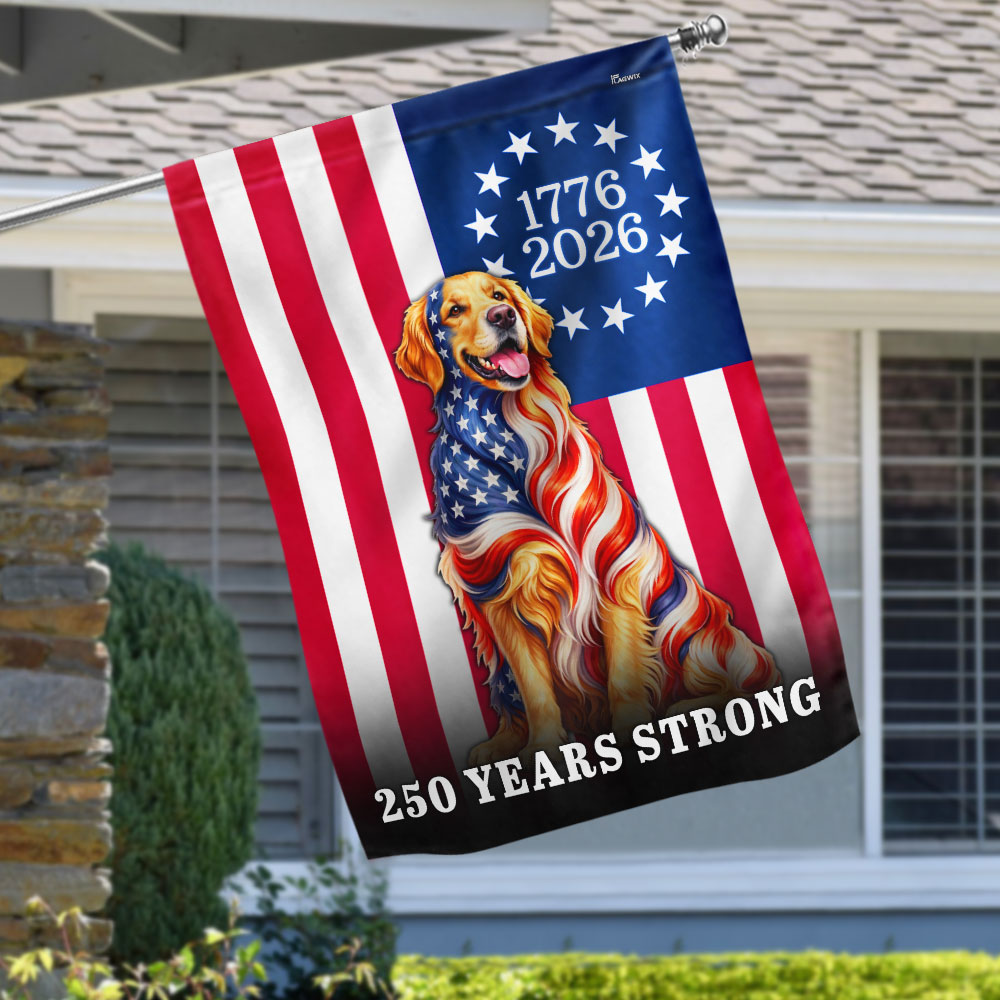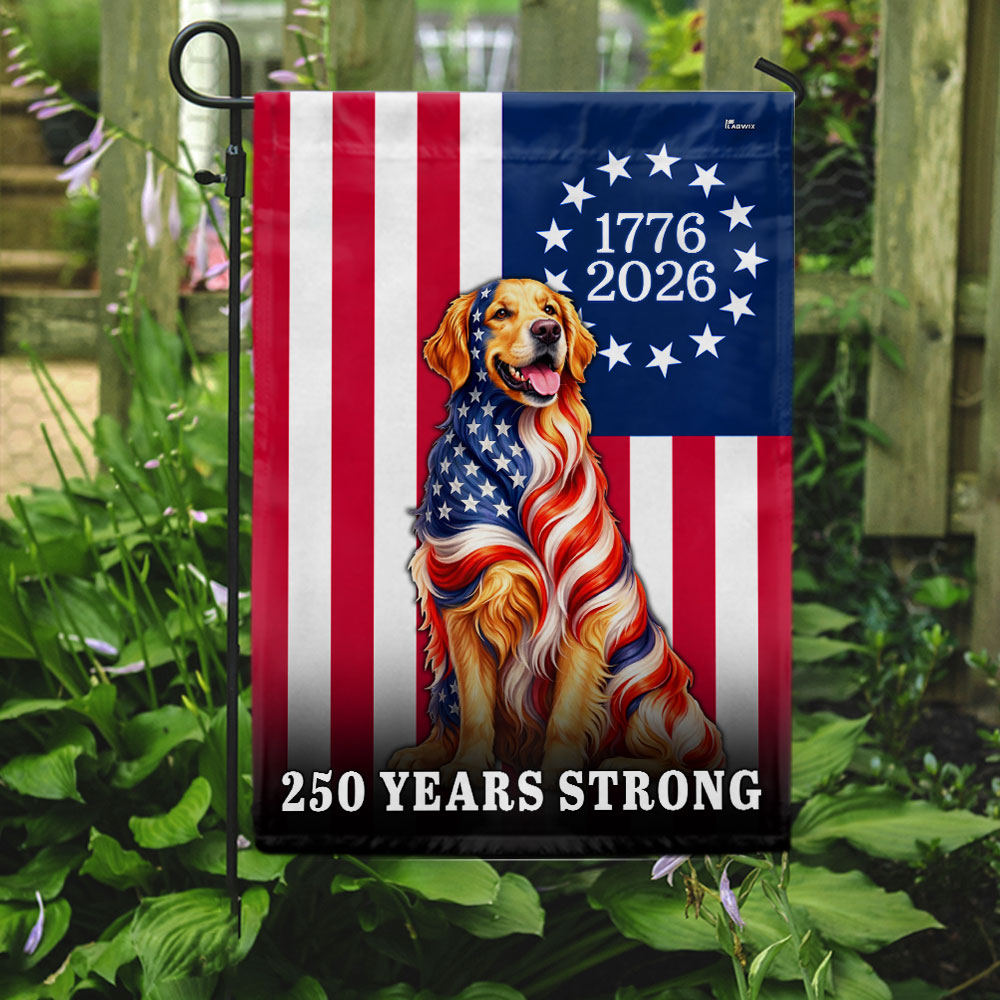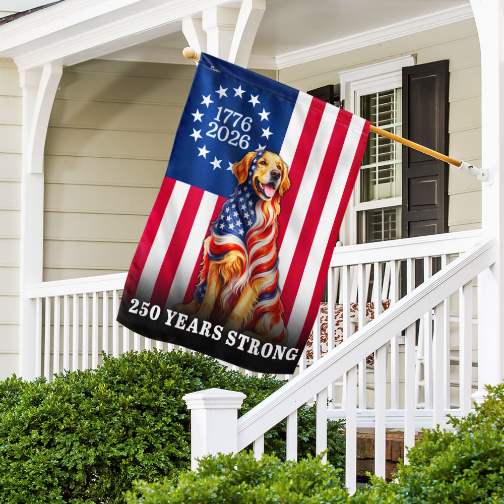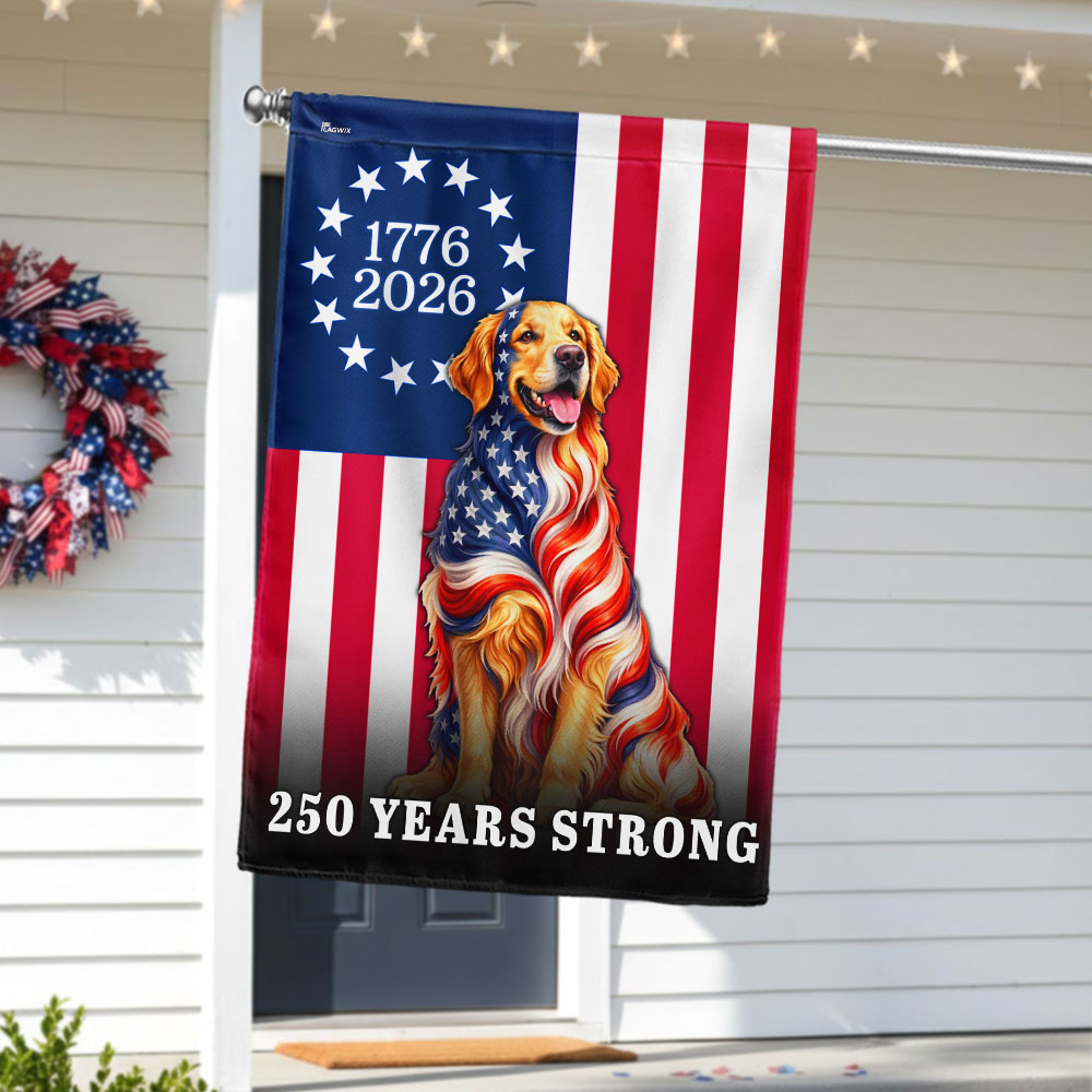 Dog American Flag, 250 Years Strong Golden Retriever US Flag