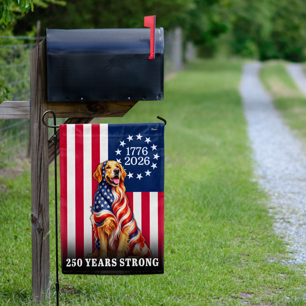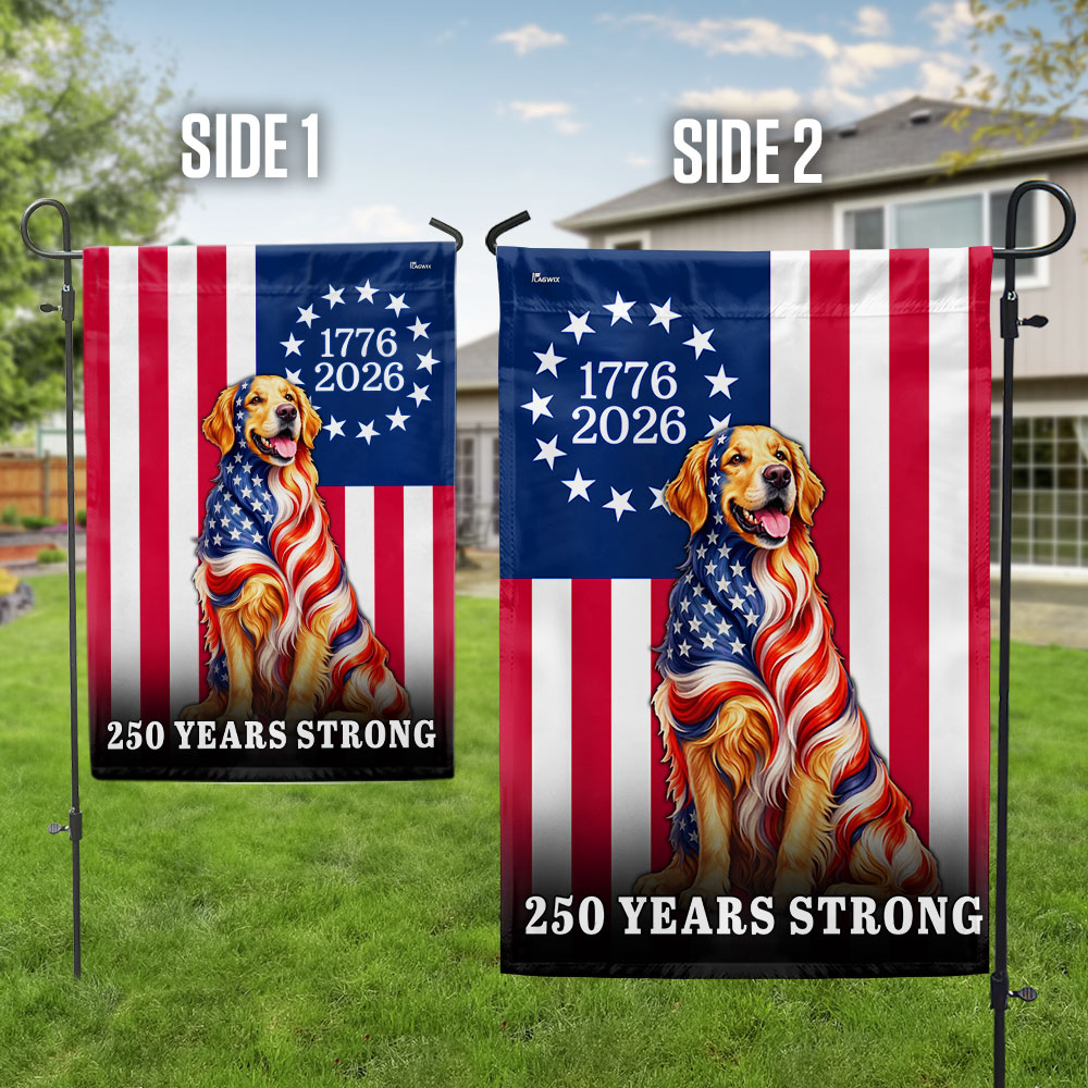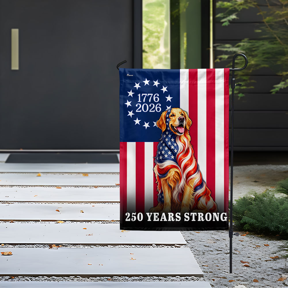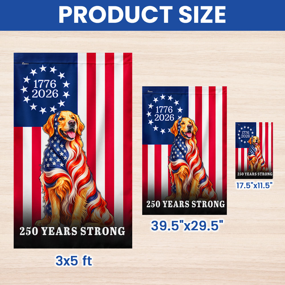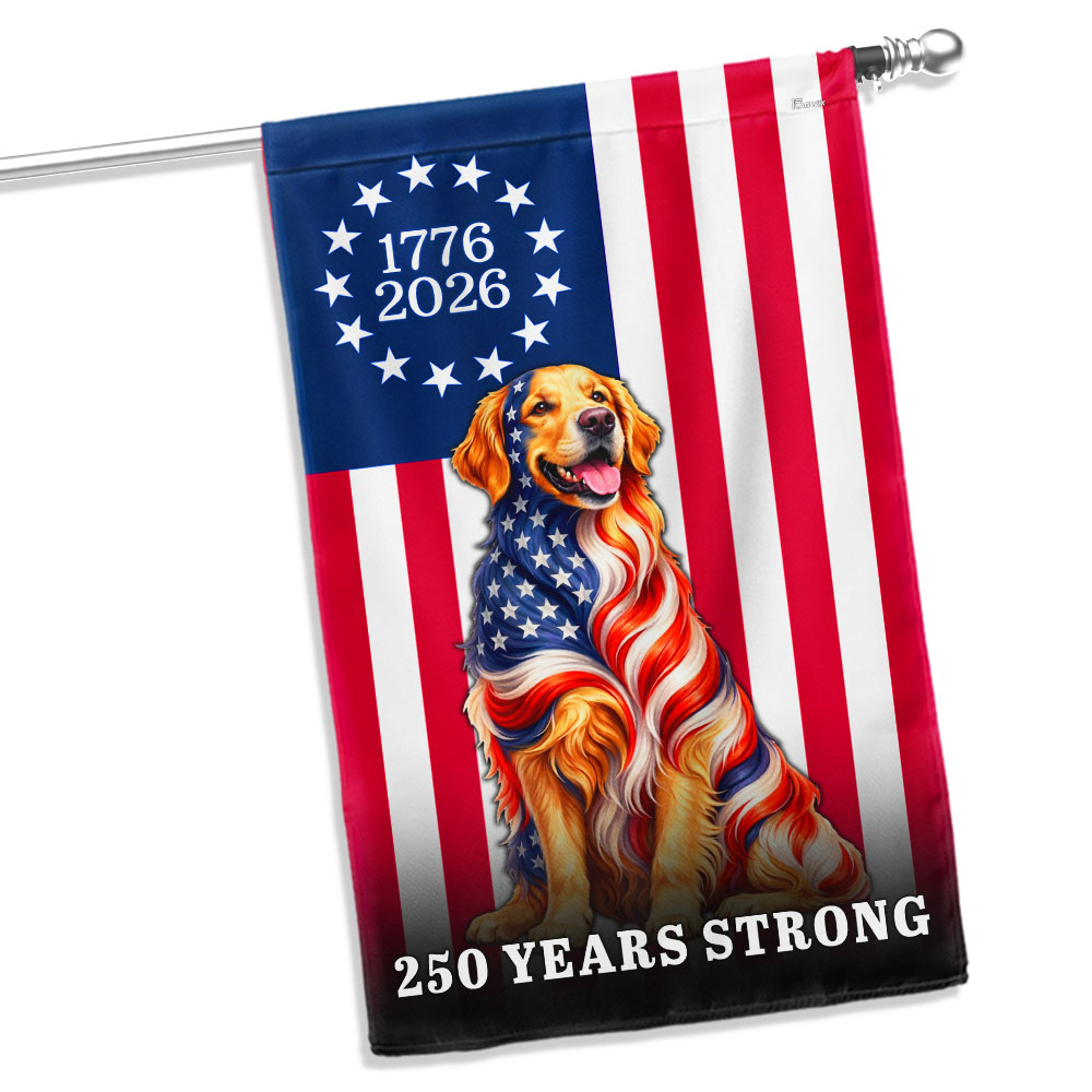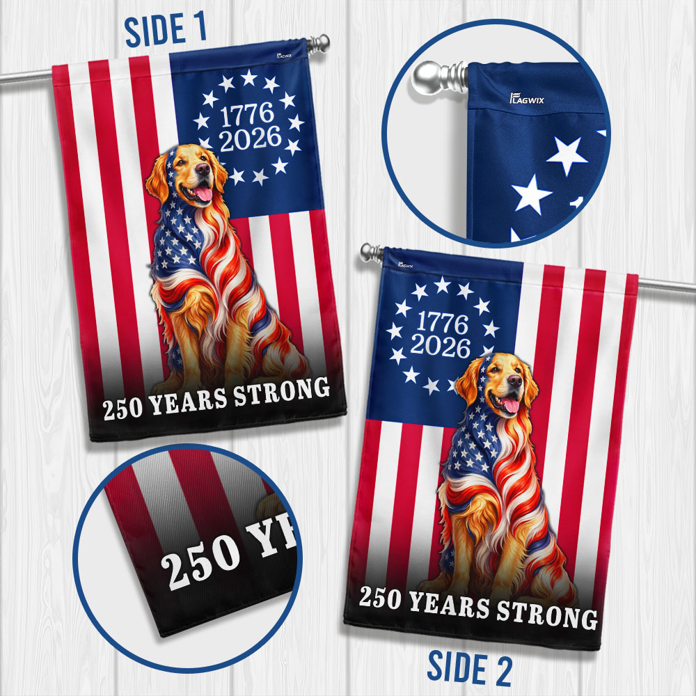 Dog American Flag, 250 Years Strong Golden Retriever US Flag