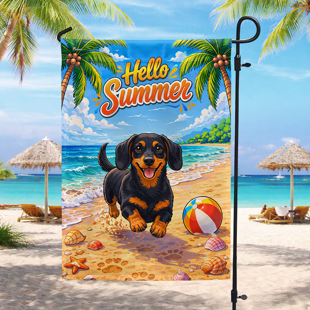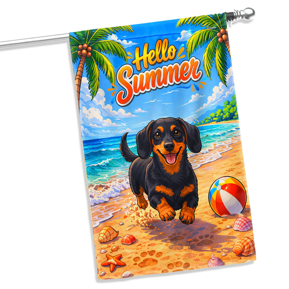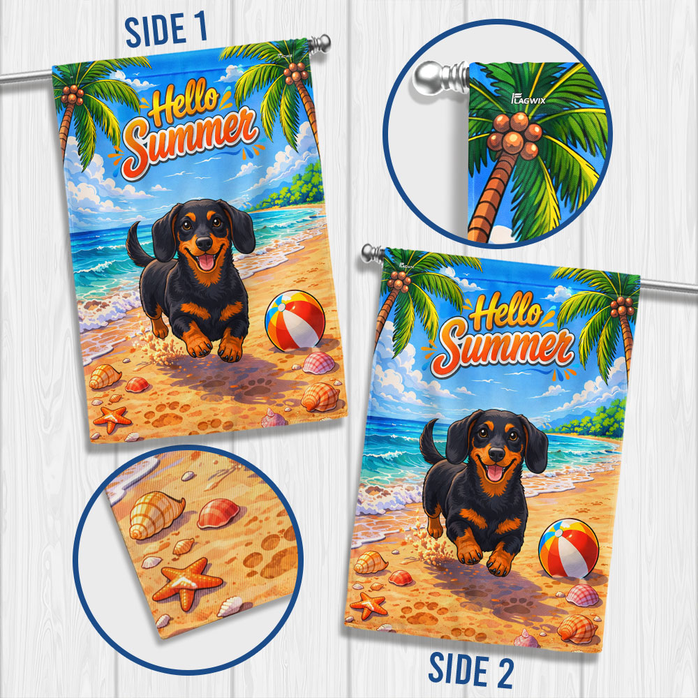 Dog American Flag, Dachshund Hello Summer Beach Vibes US Flag