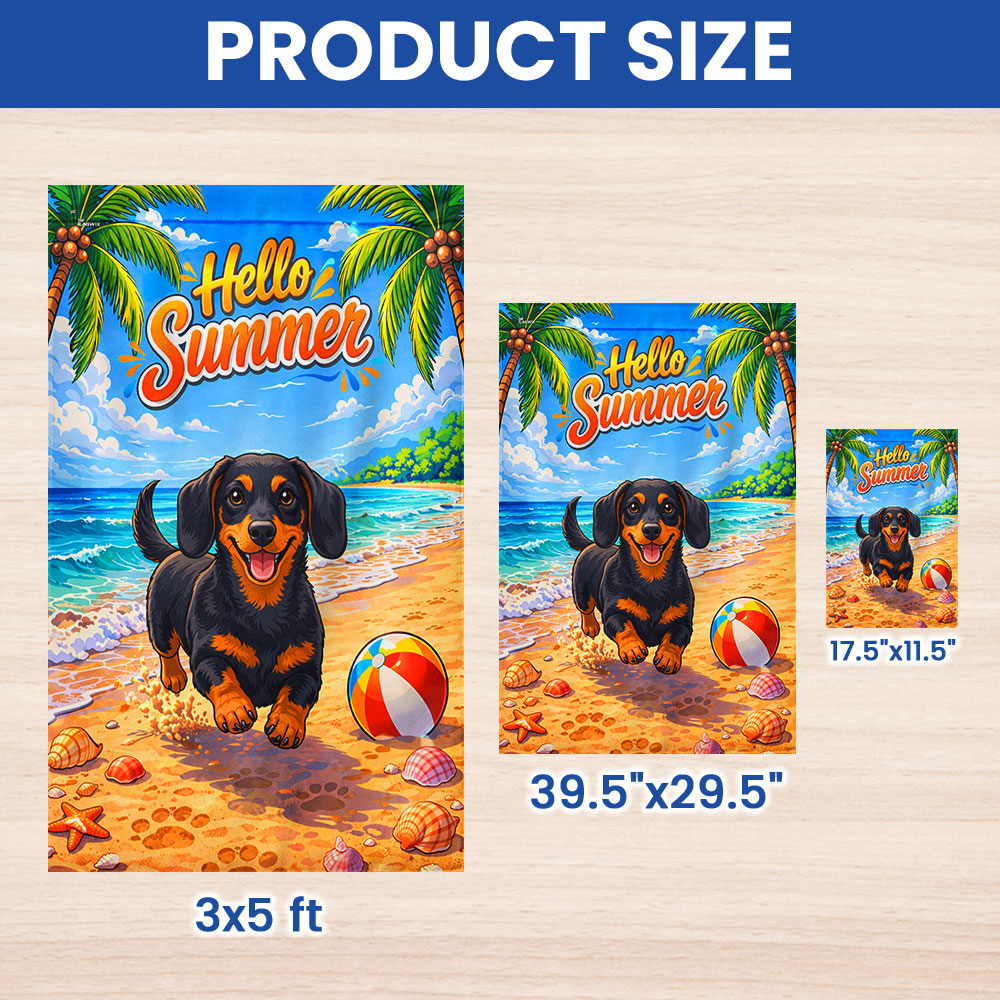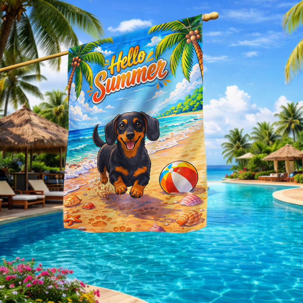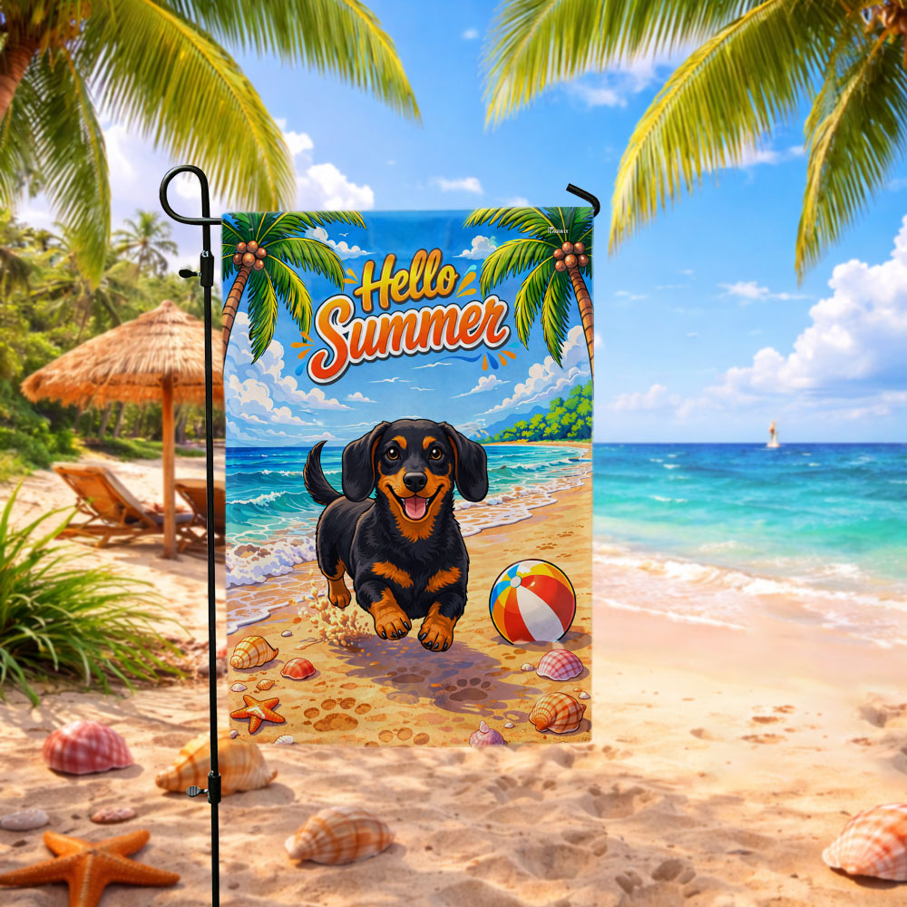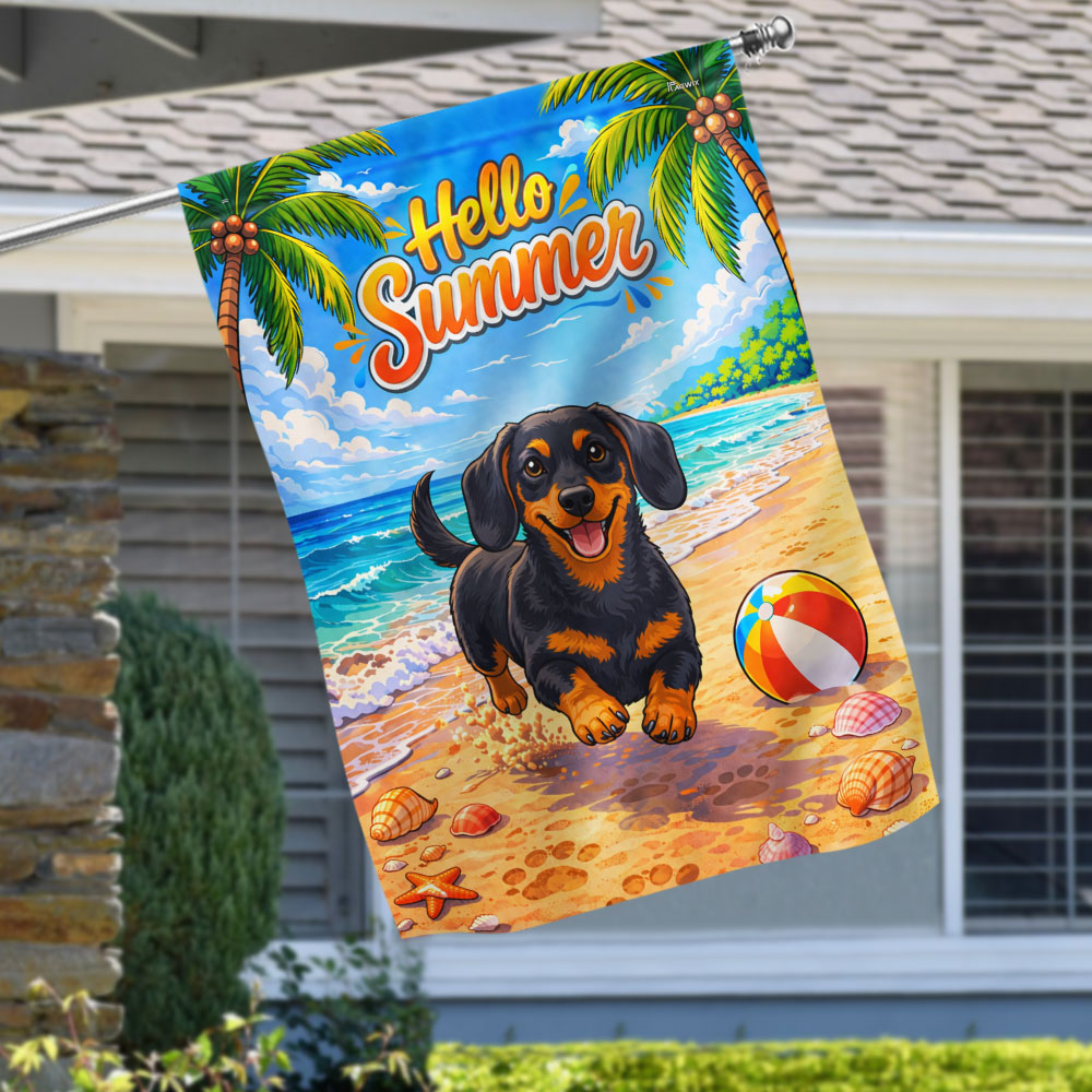 Dog American Flag, Dachshund Hello Summer Beach Vibes US Flag
