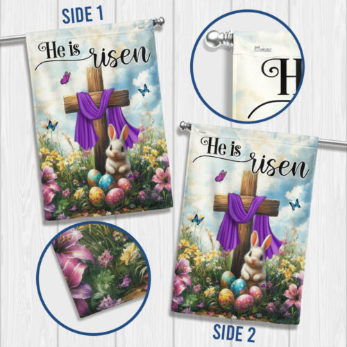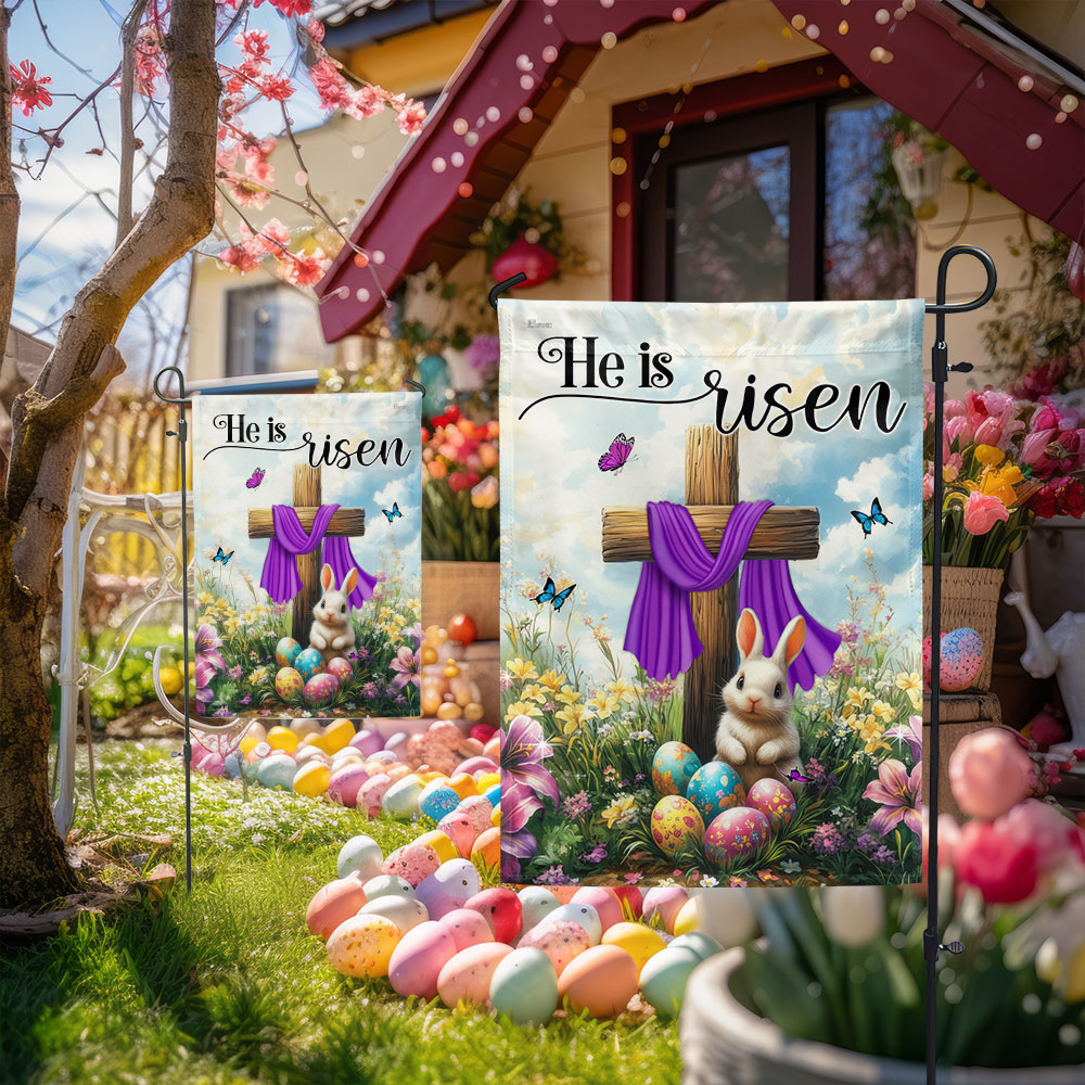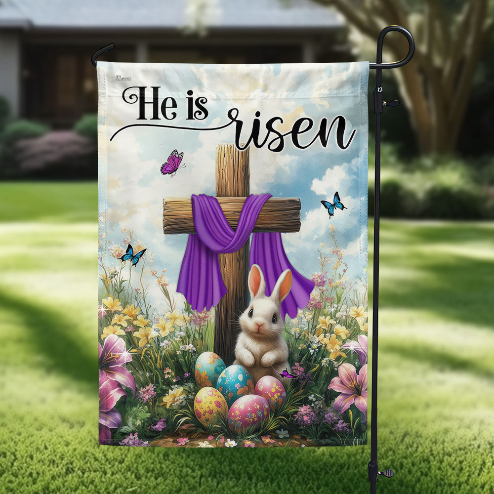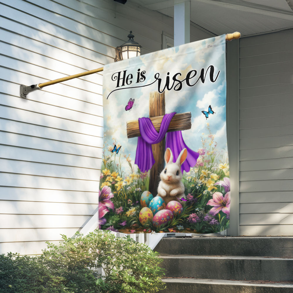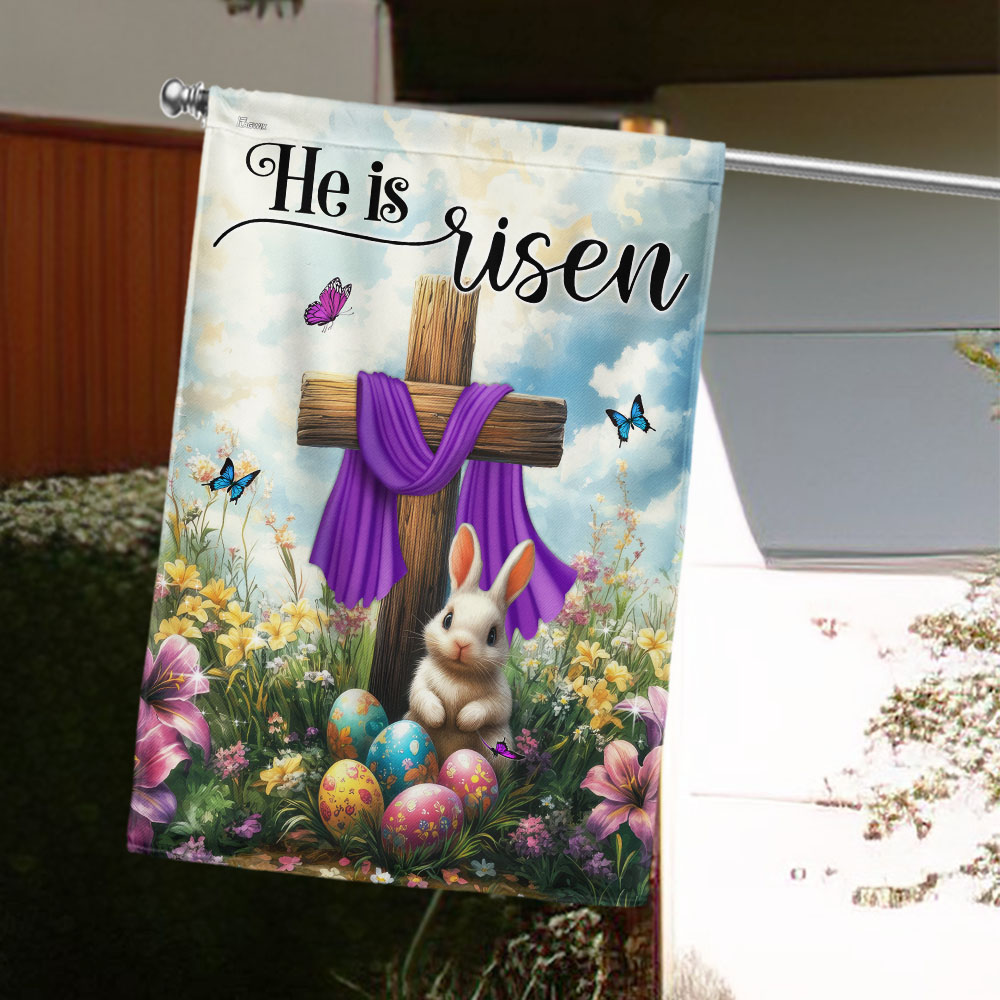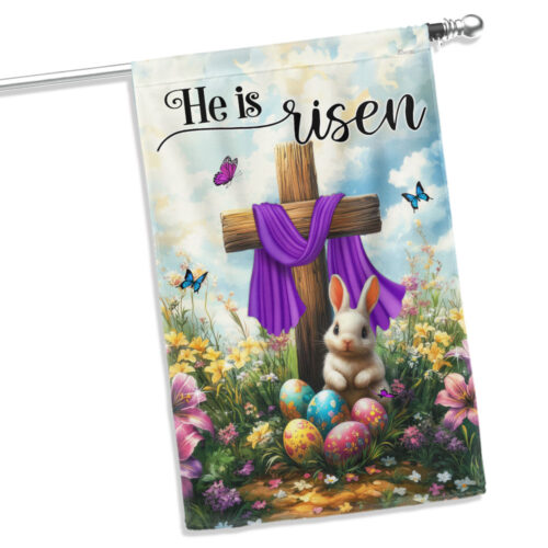 Easter Cross Rabbit He Is Risen Jesus Christ Flag MLN5591TTH