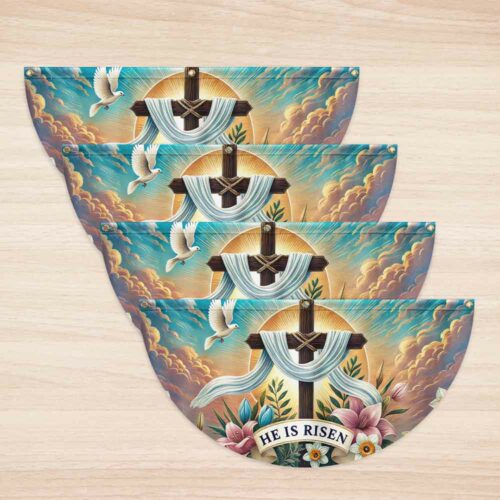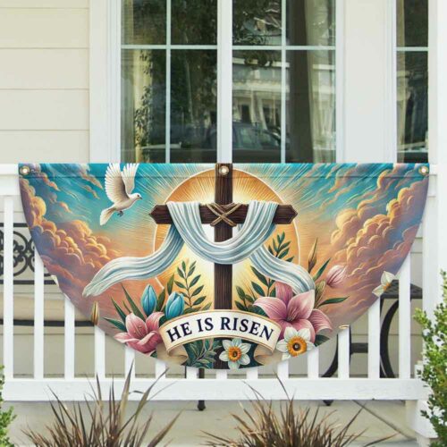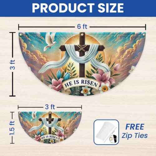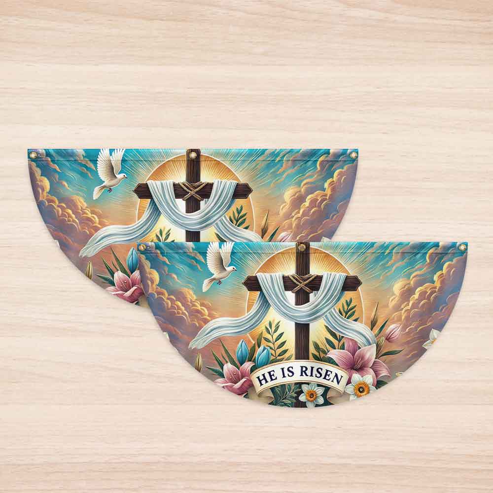Easter Day Christian Cross He Is Risen Non-Pleated Fan Flag MLN5358DNV