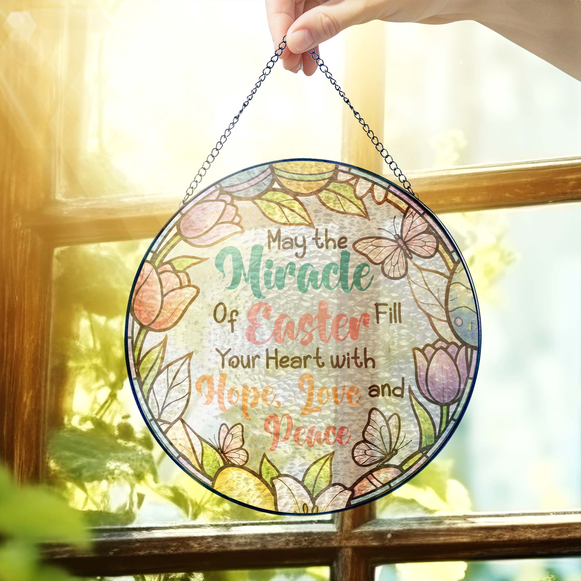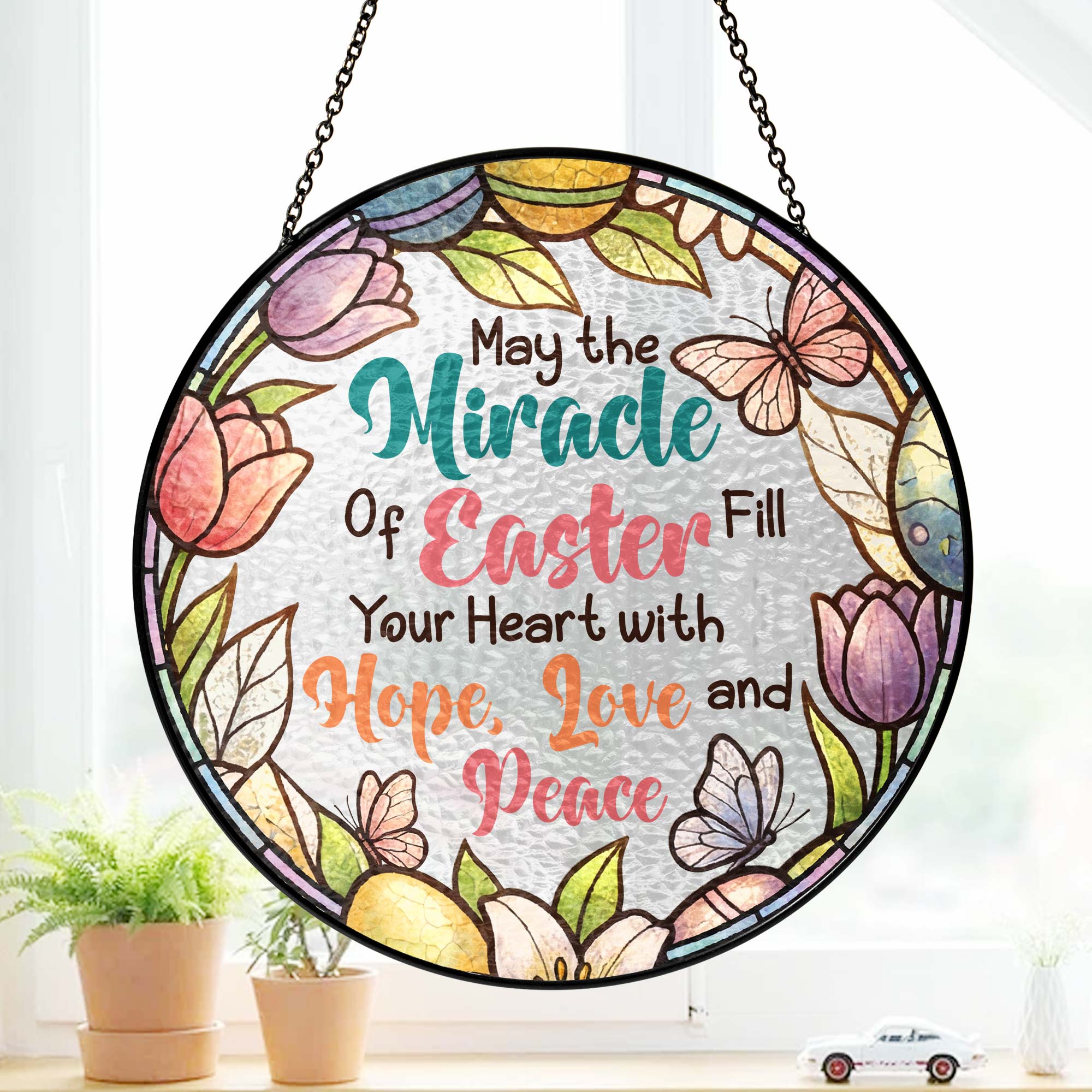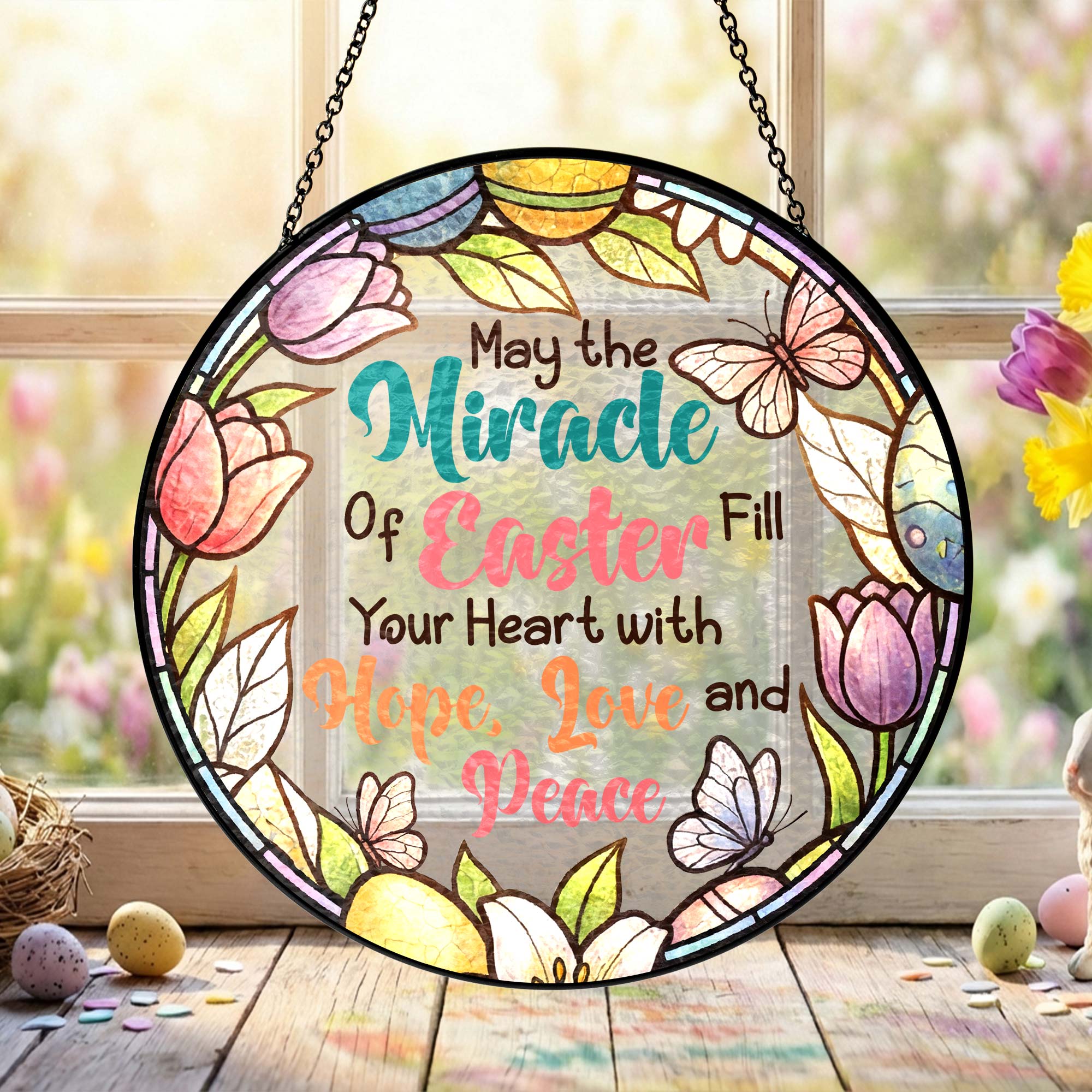 Easter Quotes Stained Glass, Happy Easter Day Stained Glass Ornament