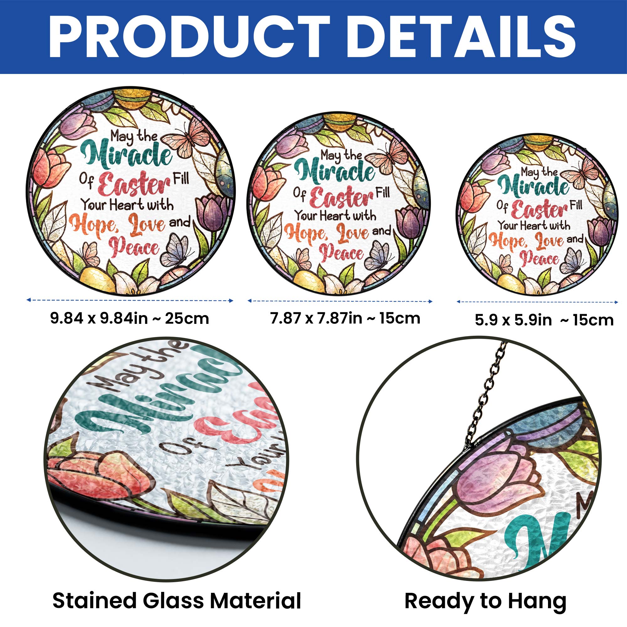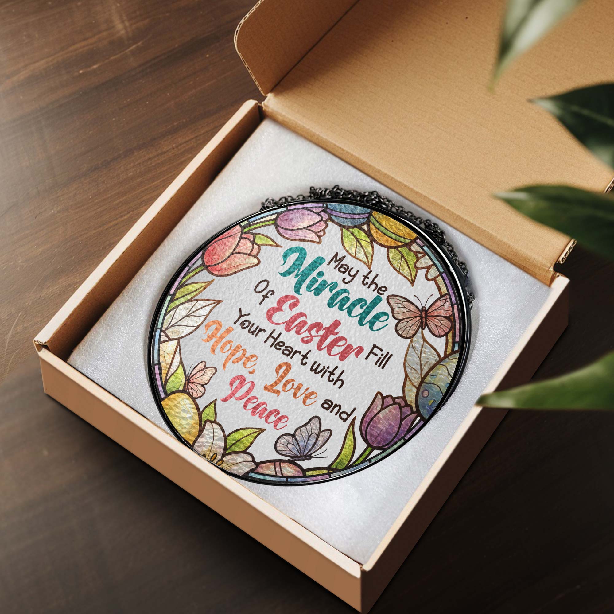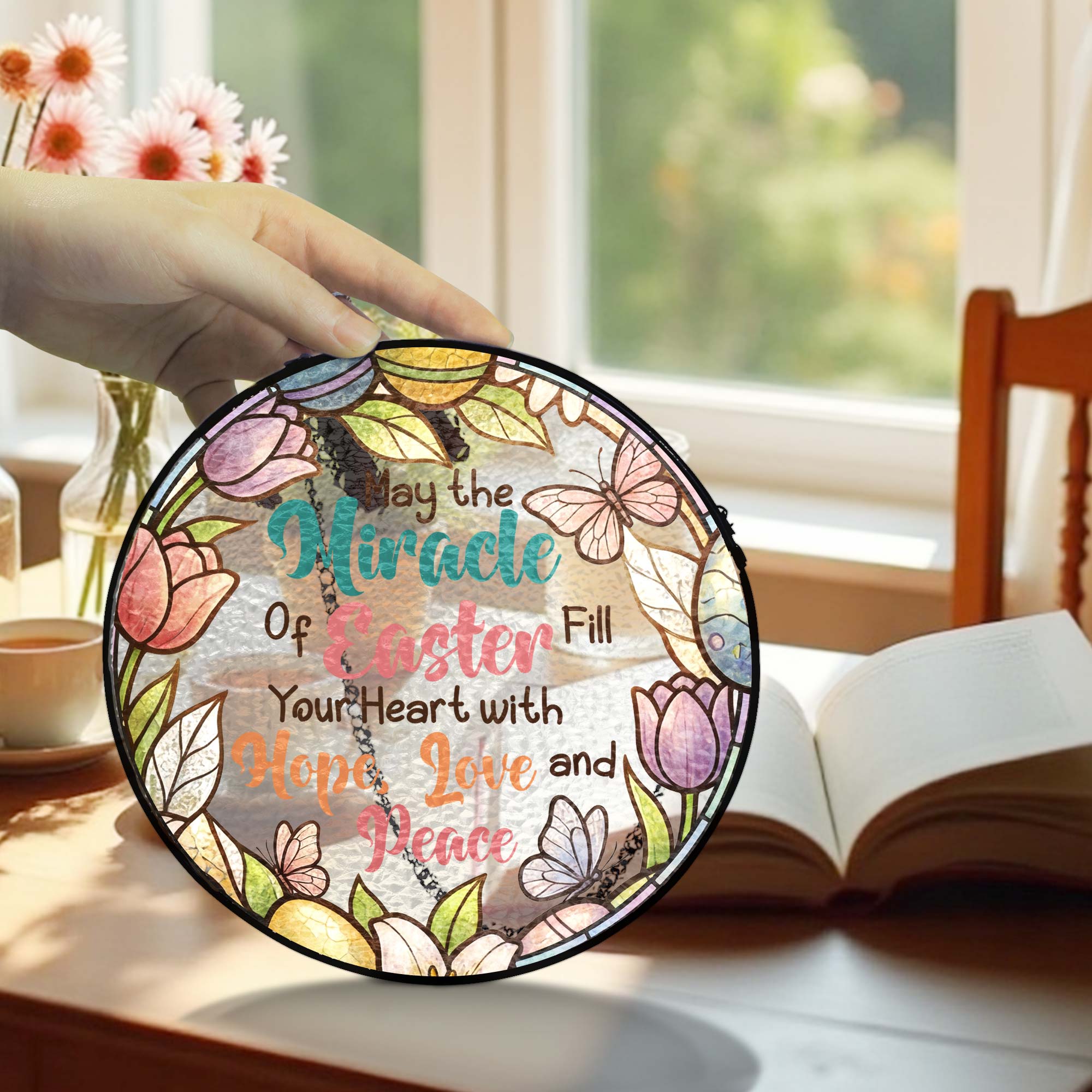 Easter Quotes Stained Glass, Happy Easter Day Stained Glass Ornament