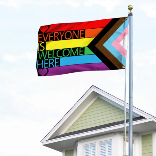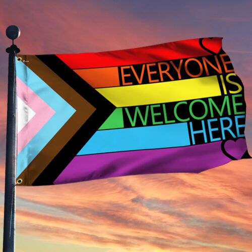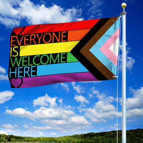 Everyone Is Welcome Here Teacher LGBT Pride Grommet Flag TQN5117NTH