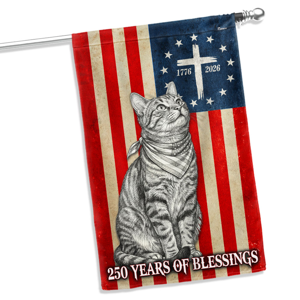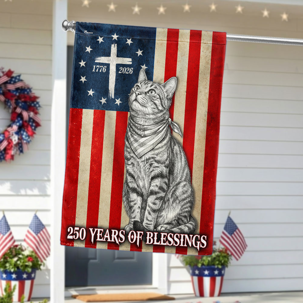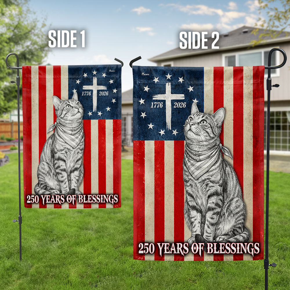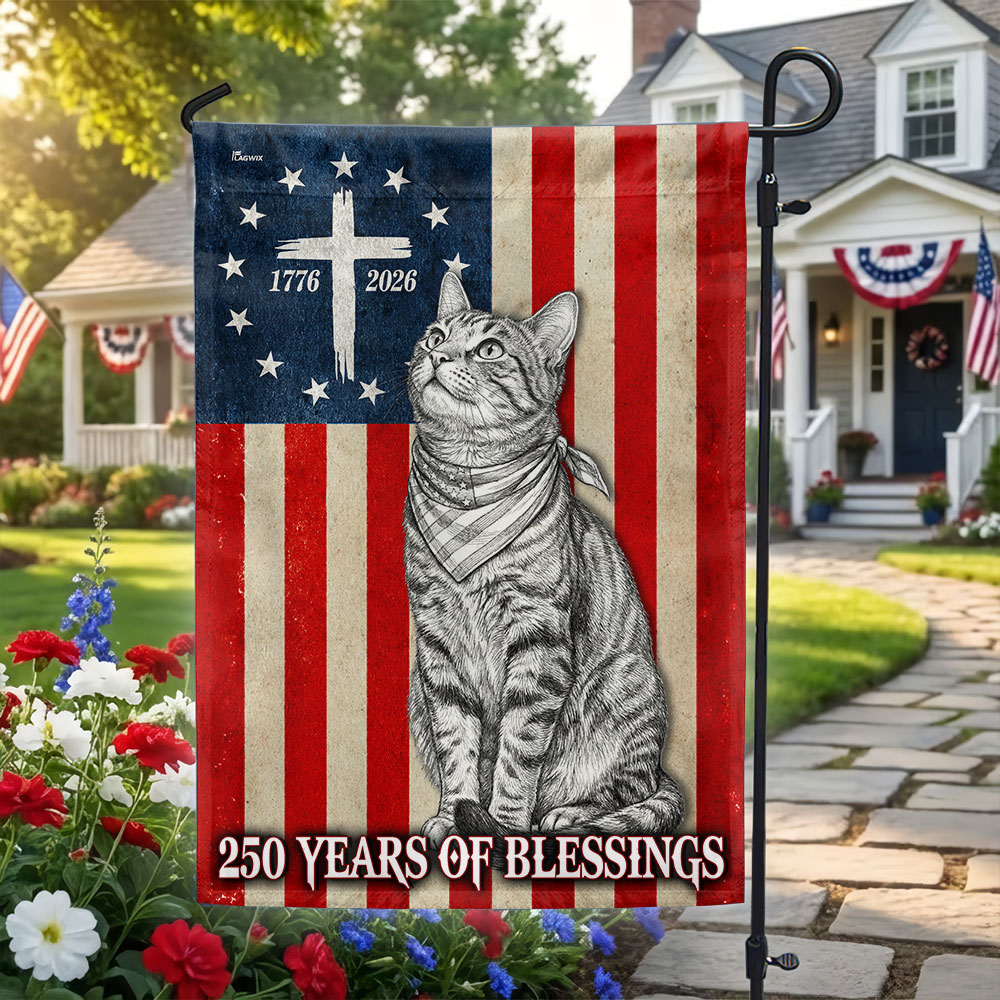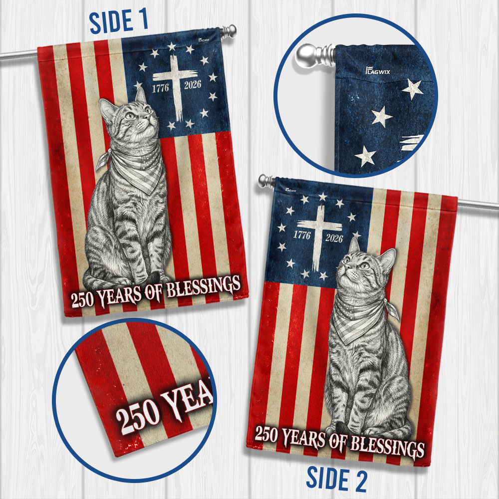 Flagwix Christian Patriotic Cat Garden Flag, 250 Years of Blessings Flag Decor for Cat Lover