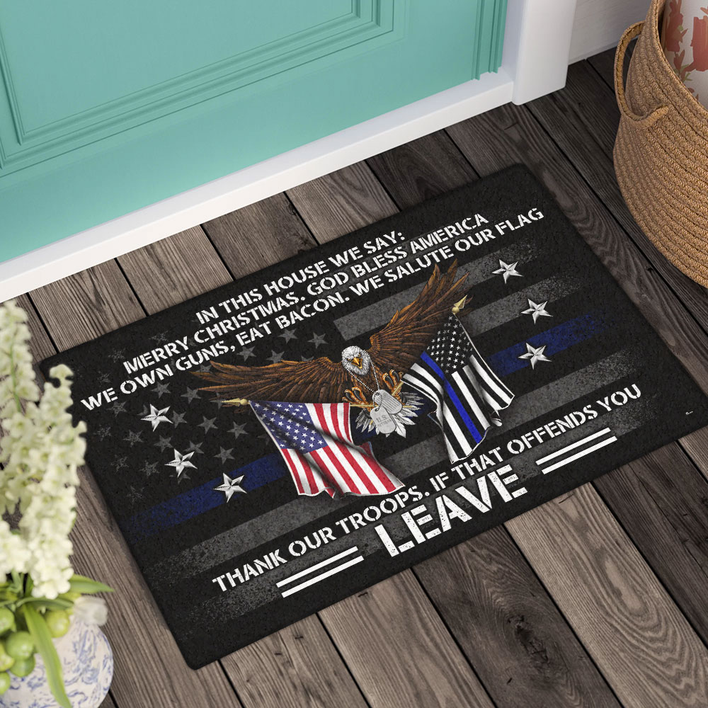 Flagwix Patriotic Eagle Thin Blue Line Doormat We Salute Our Flag