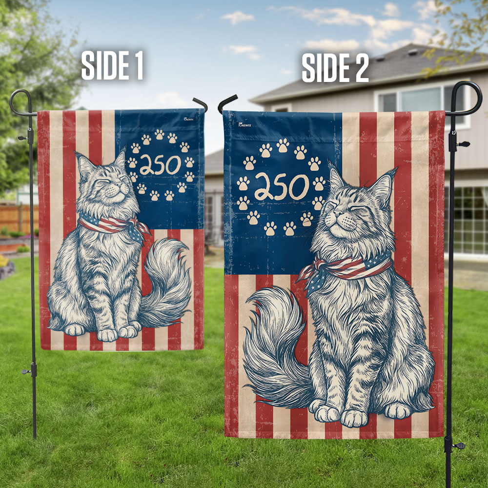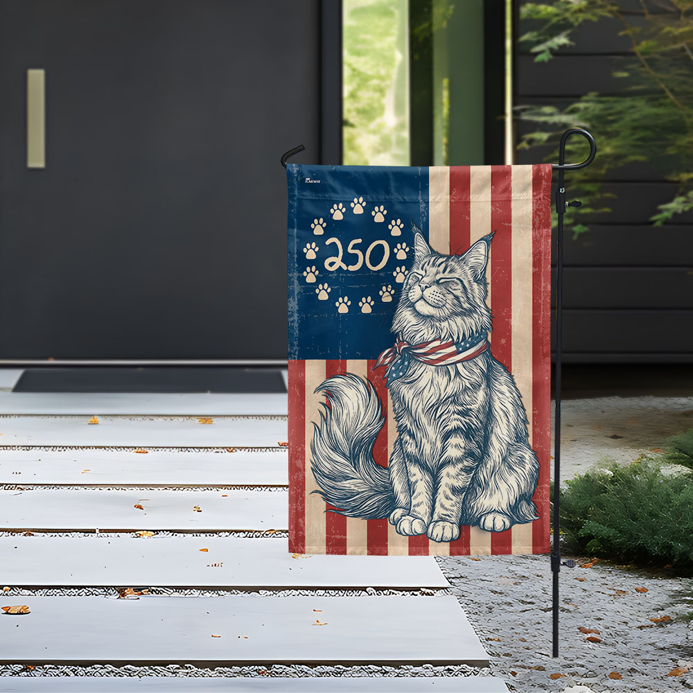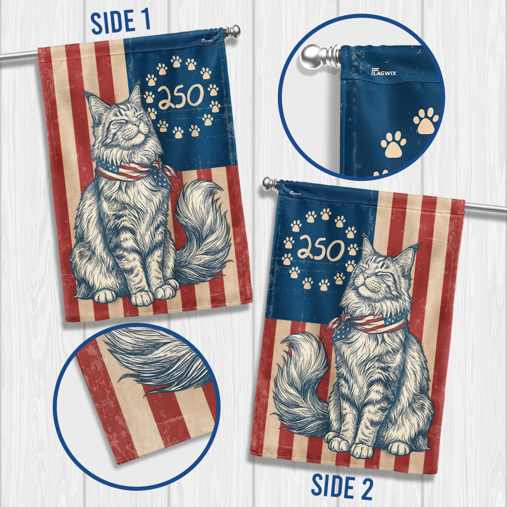 Flagwix Patriotic Maine Coon Cat Garden Flag – 250th Anniversary Patriotic Paw Prints Betsy Ross Flag Decor