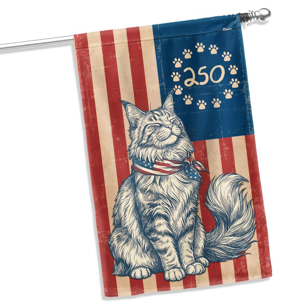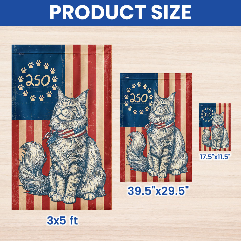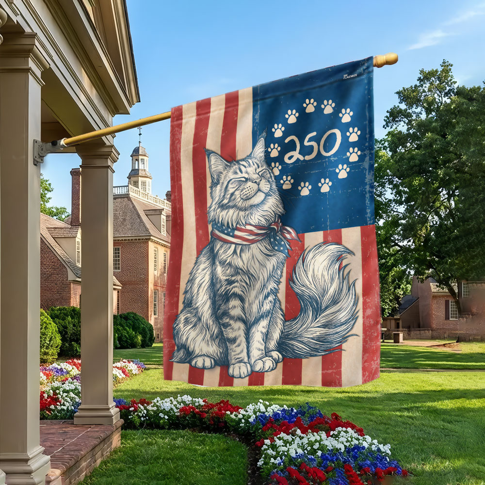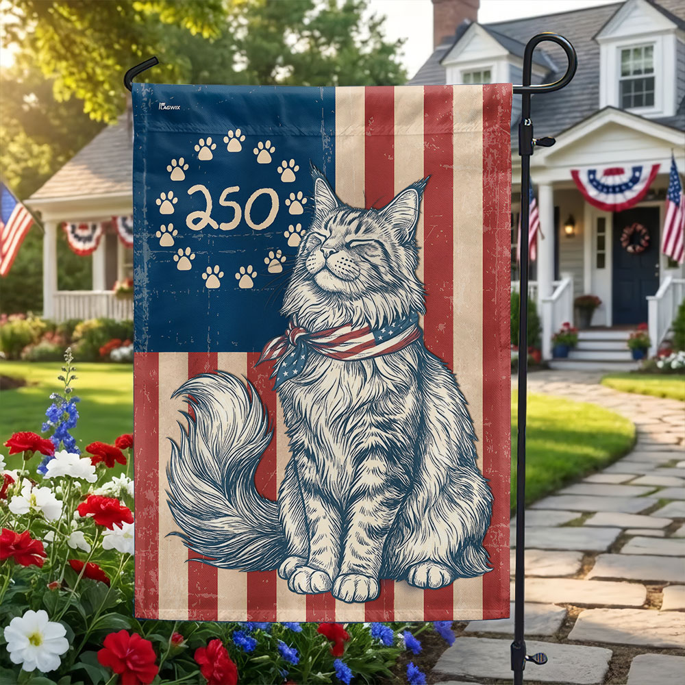 Flagwix Patriotic Maine Coon Cat Garden Flag – 250th Anniversary Patriotic Paw Prints Betsy Ross Flag Decor