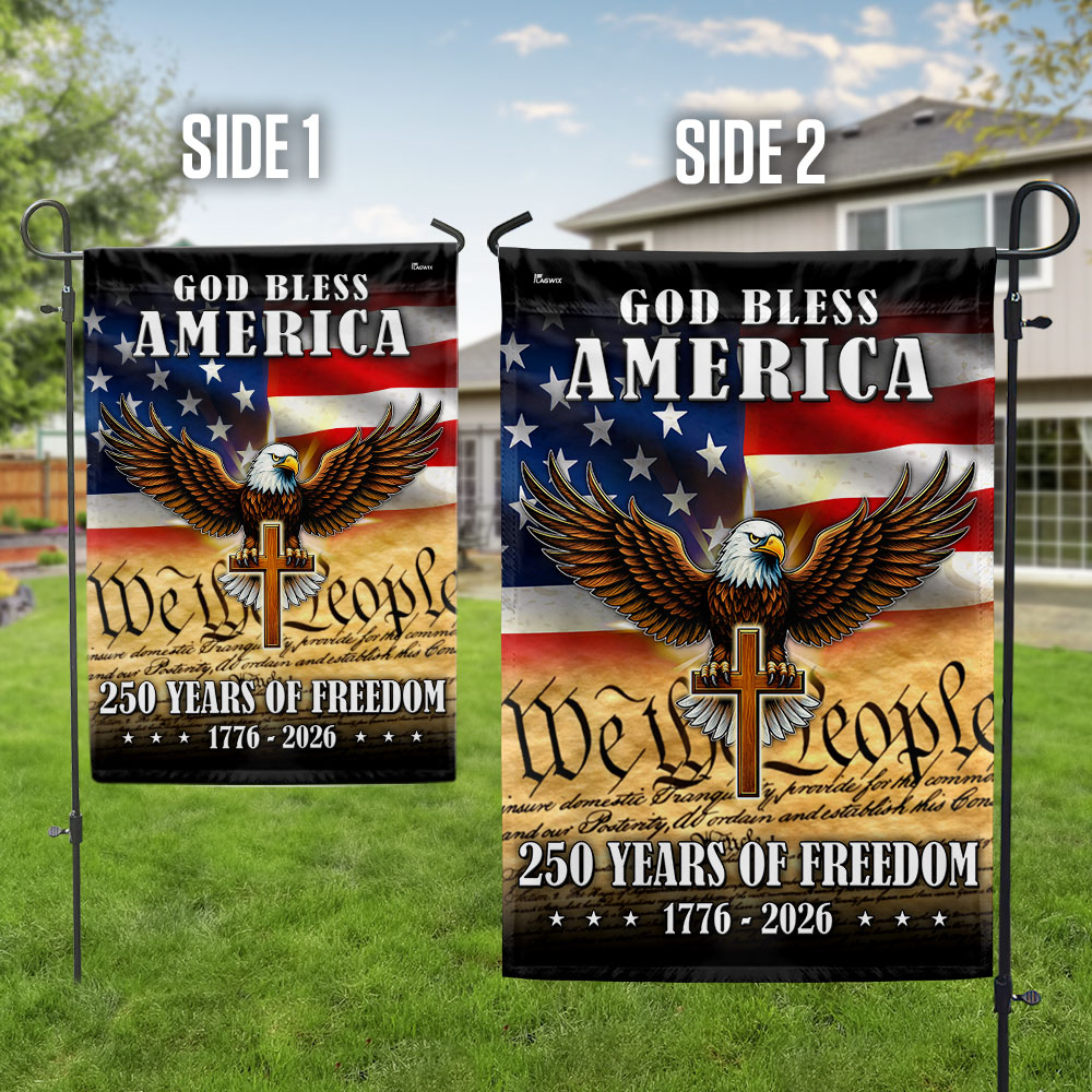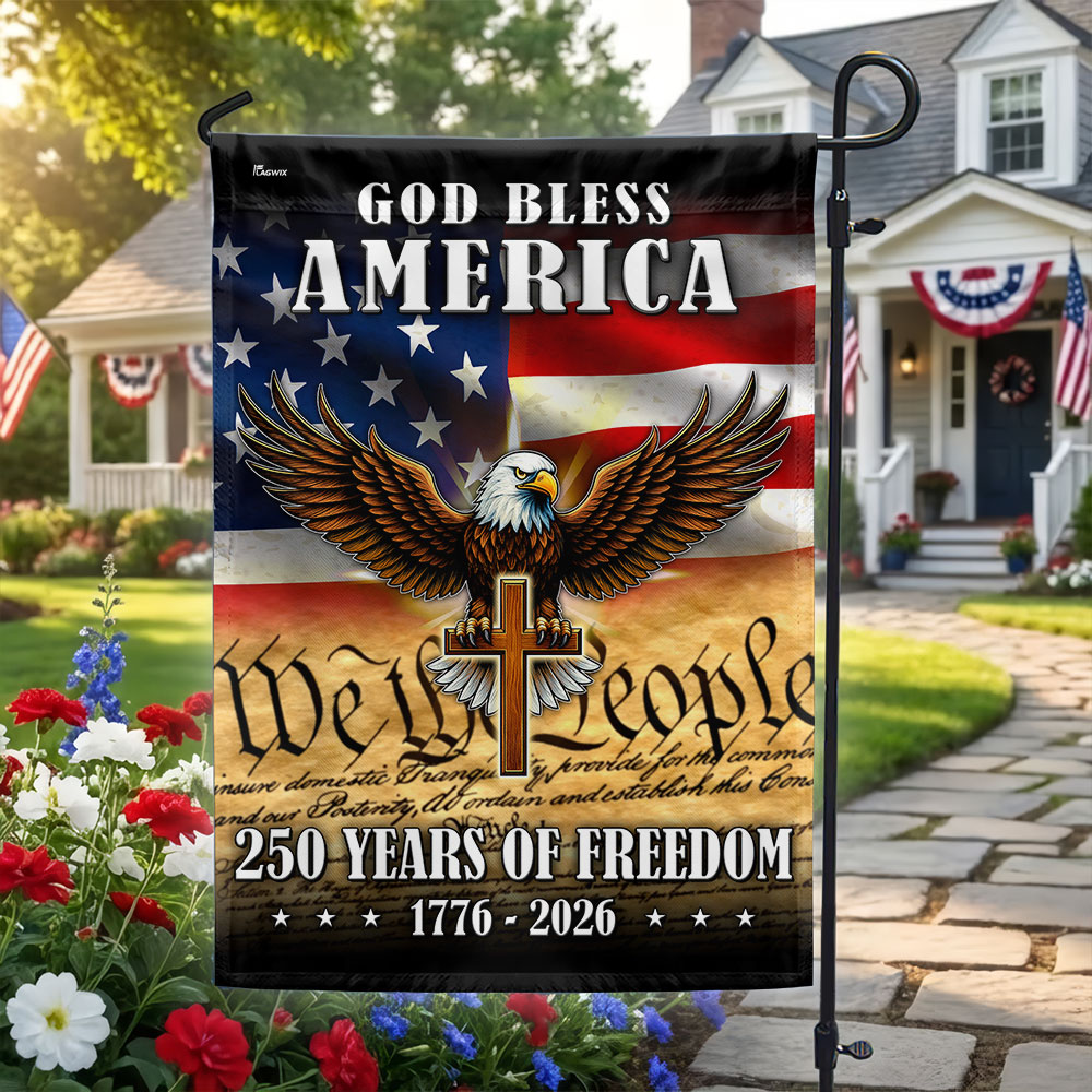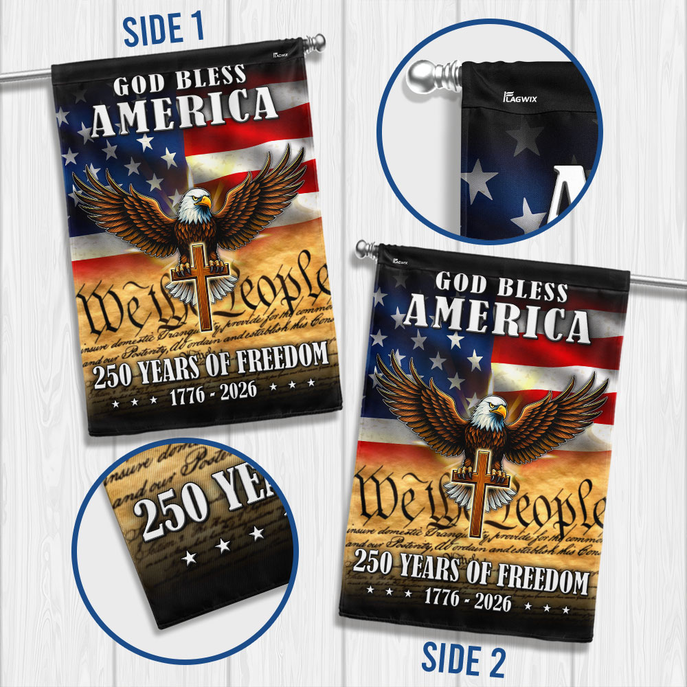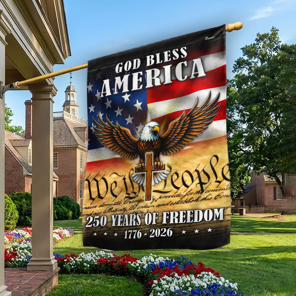 God Bless America 1776 2026 Flag, 250 Years of Freedom Christ Cross Flag