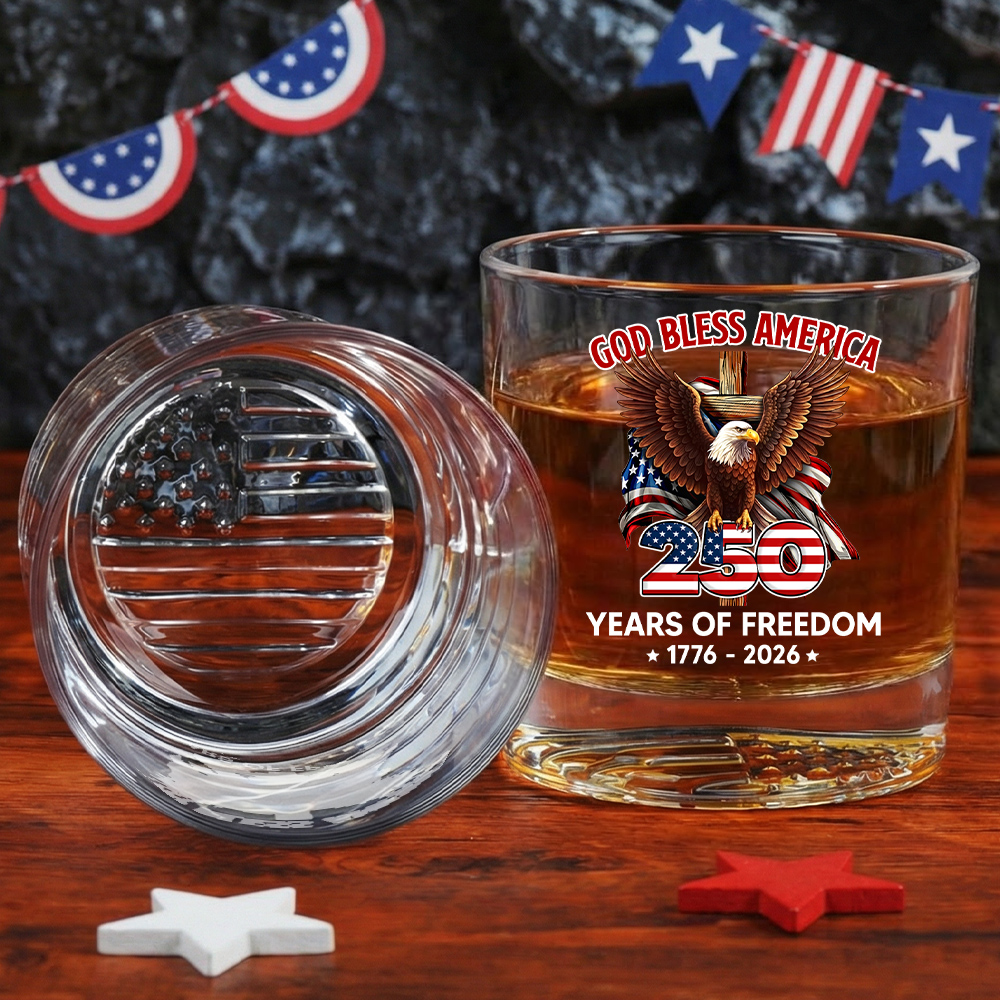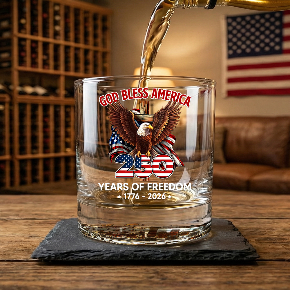 God Bless America 250 Years of Freedom Eagle Printed Whiskey Glass