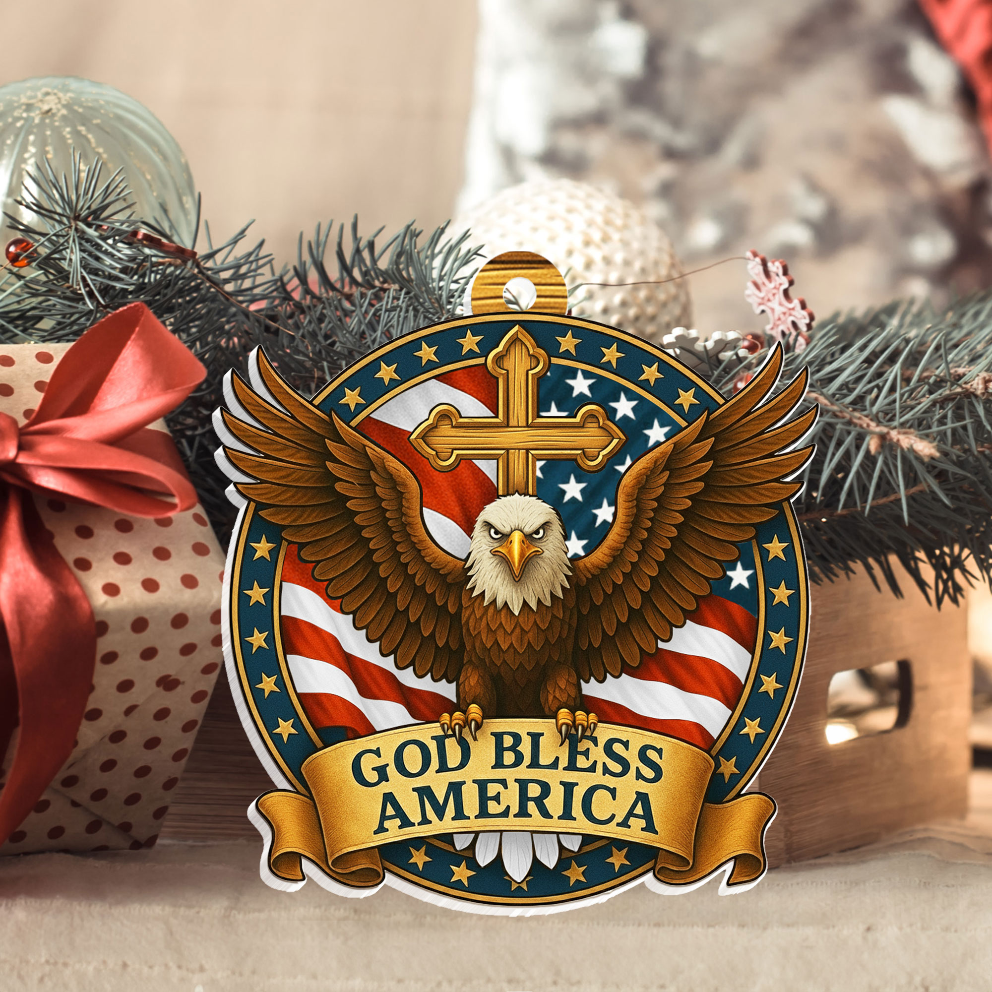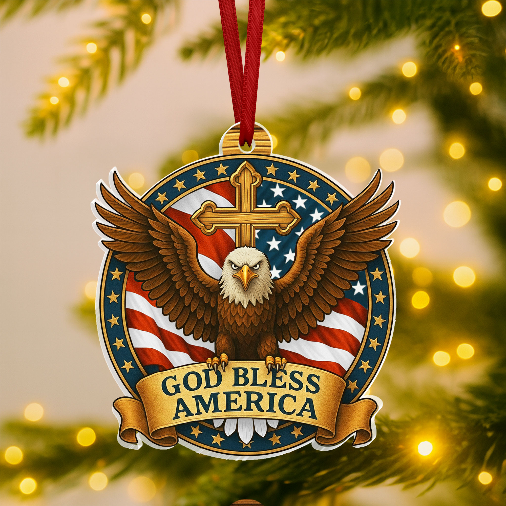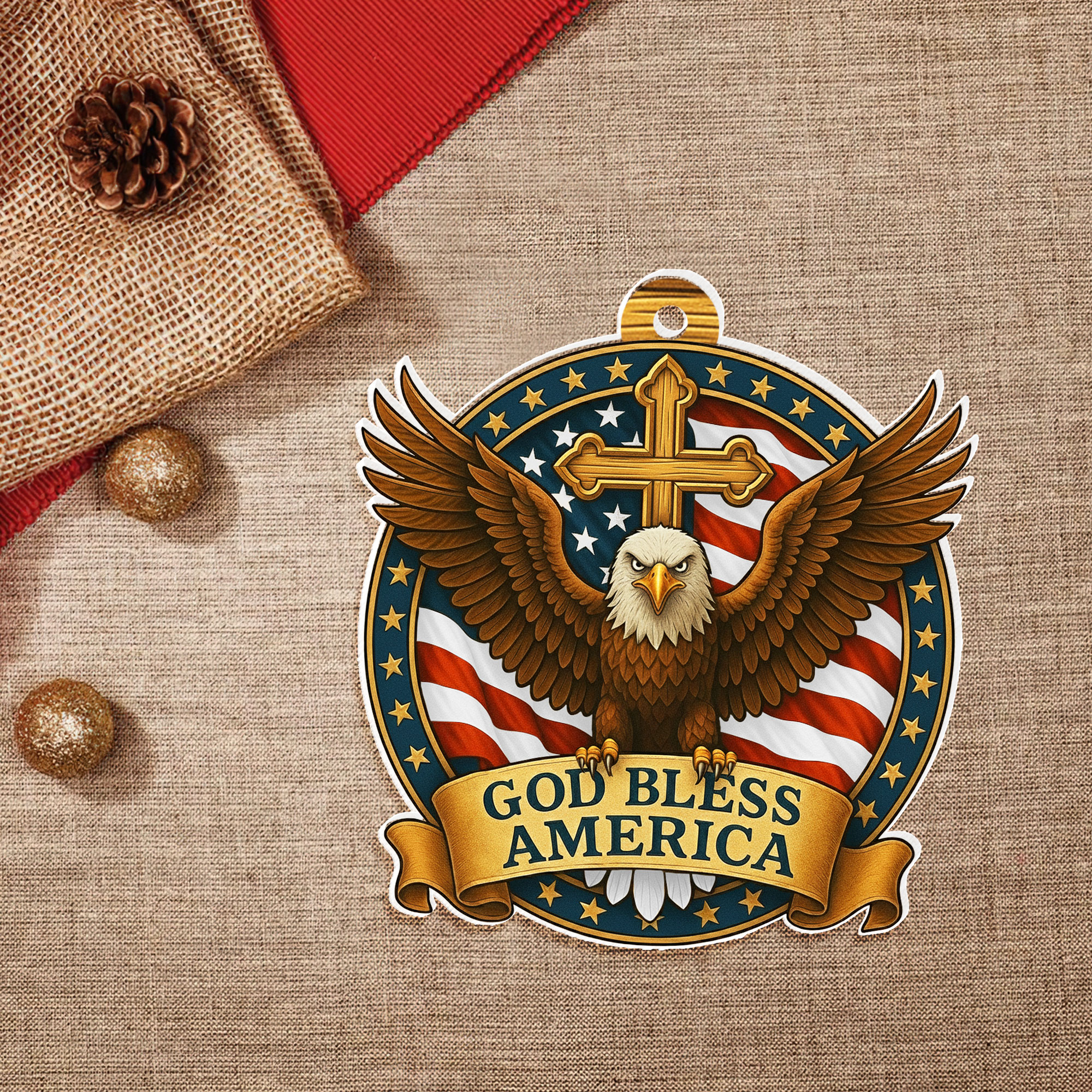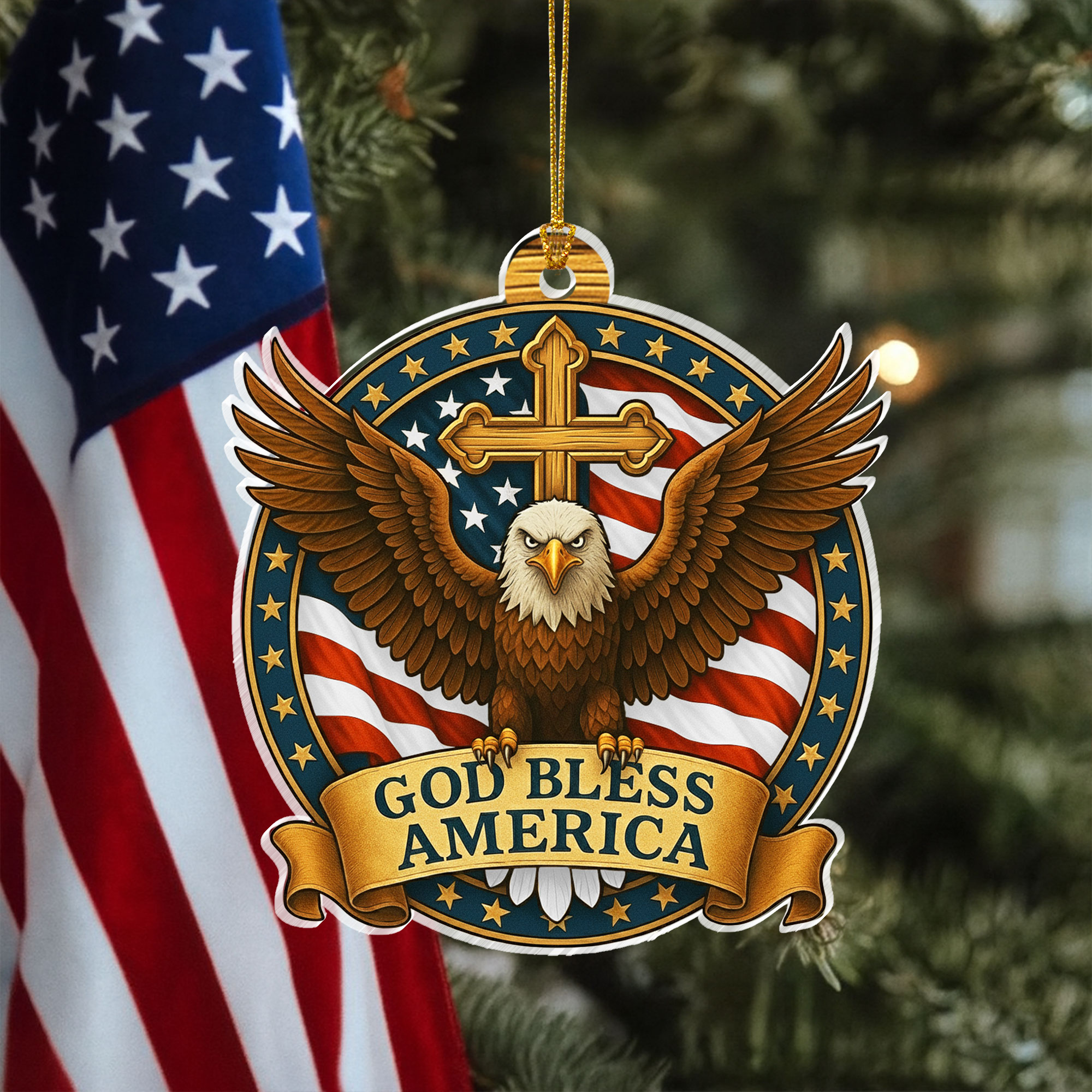 God Bless America Ornament, Eagle Cross Patriotic Faith Decor