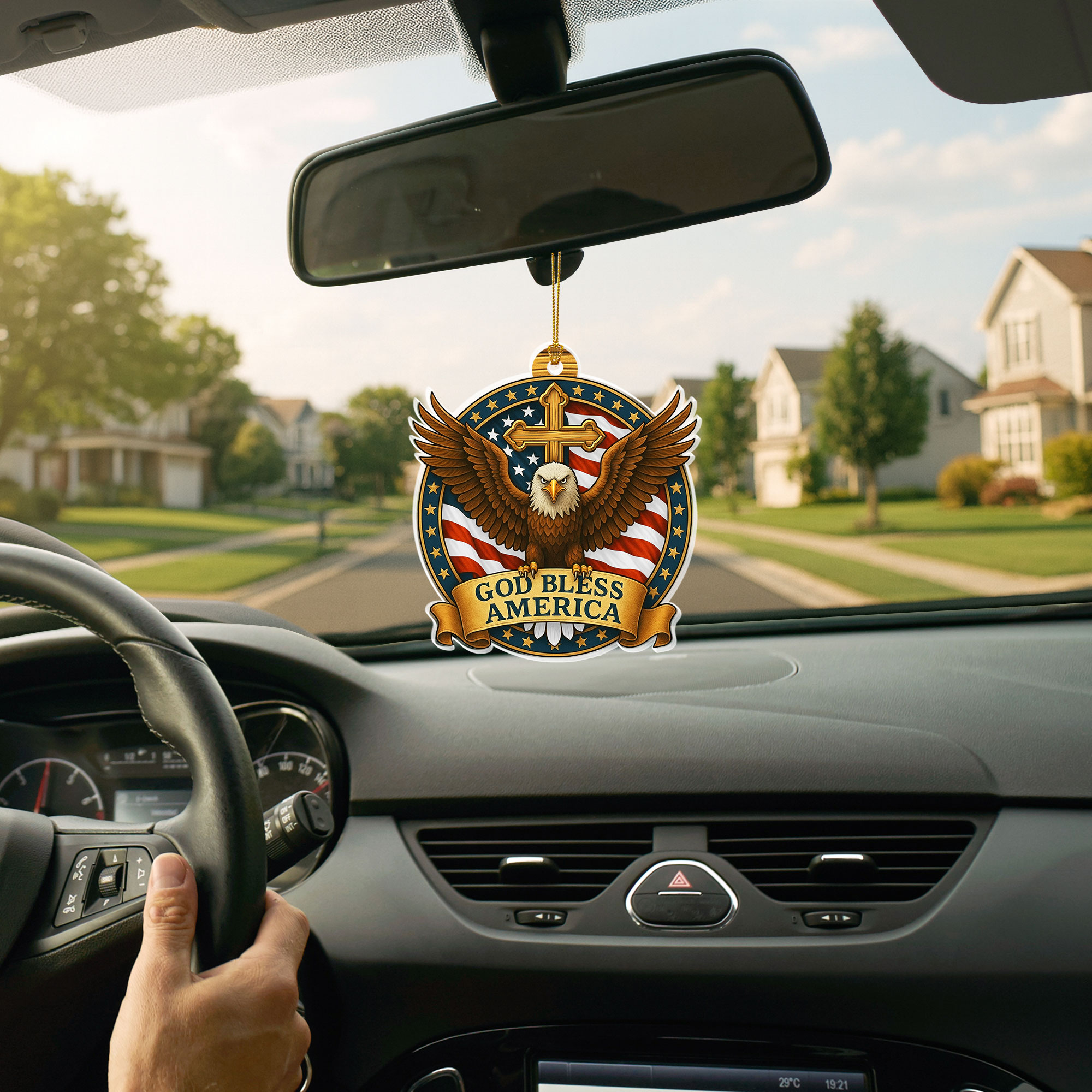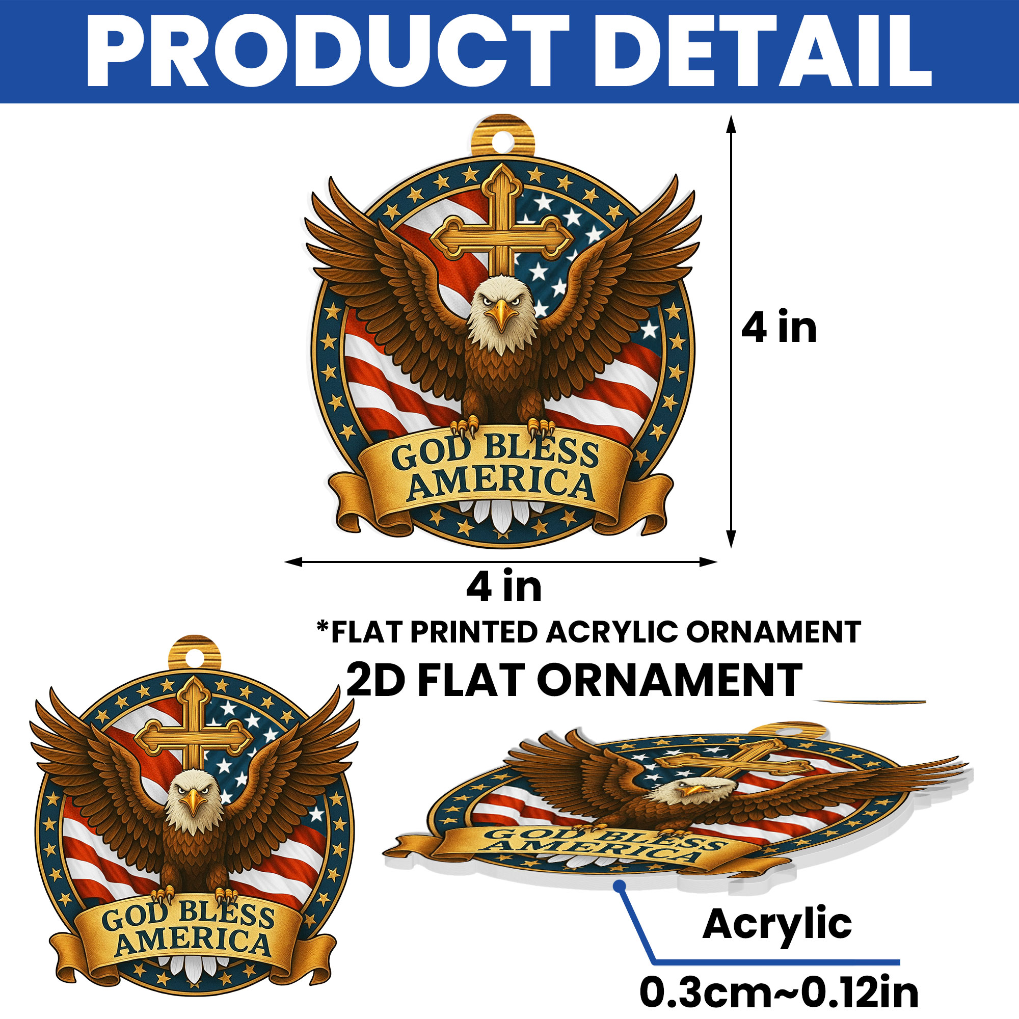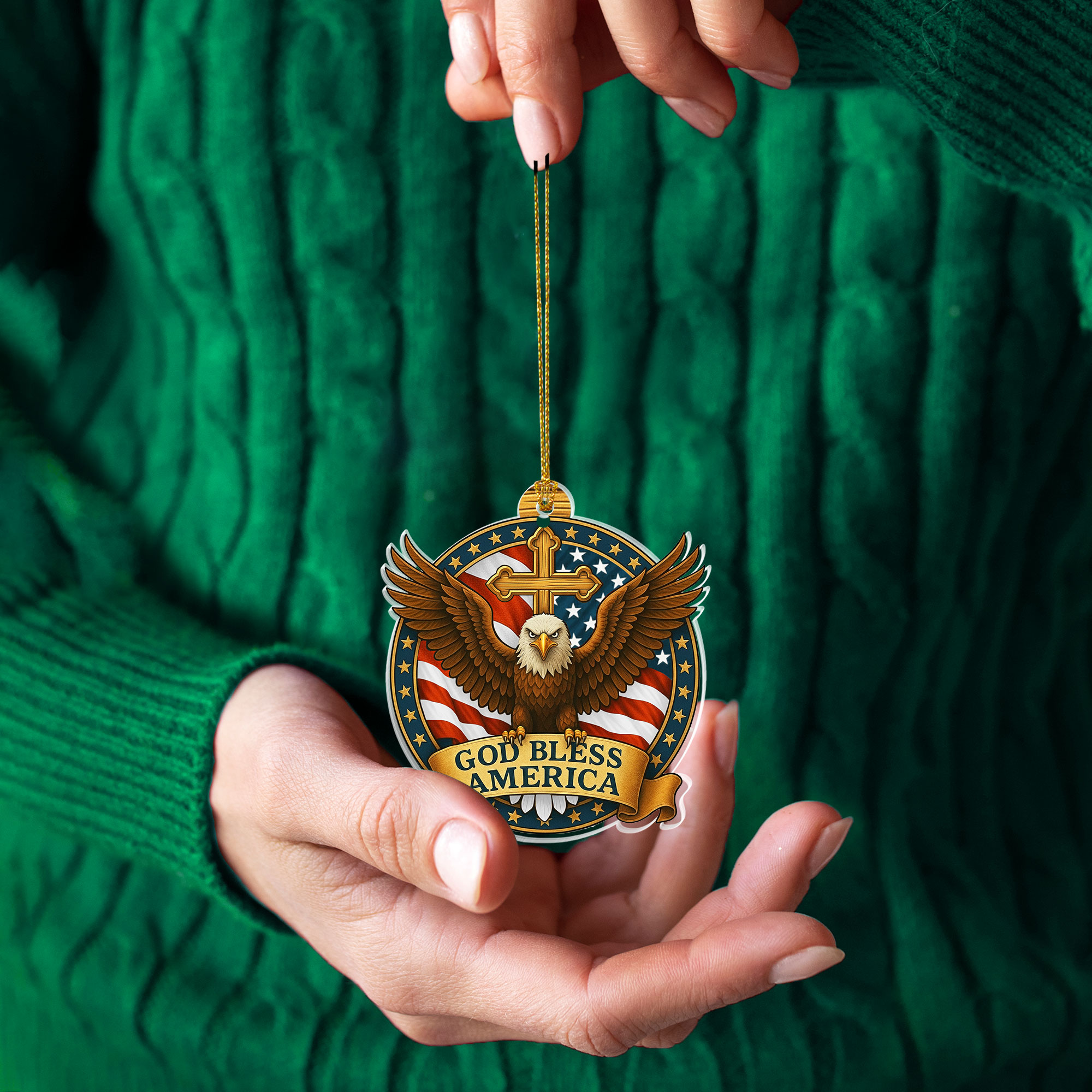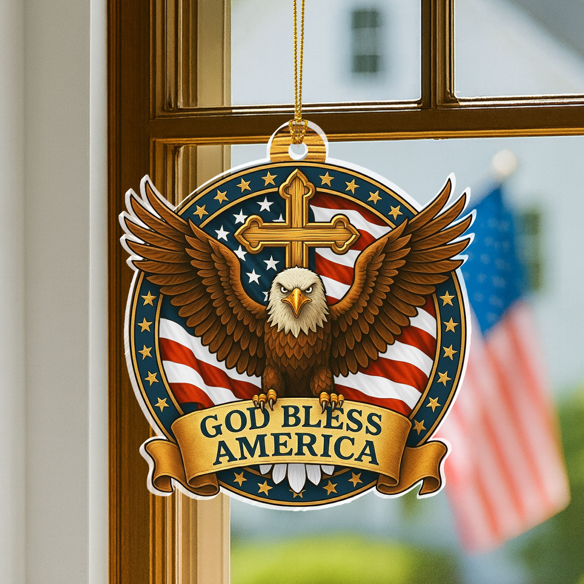 God Bless America Ornament, Eagle Cross Patriotic Faith Decor