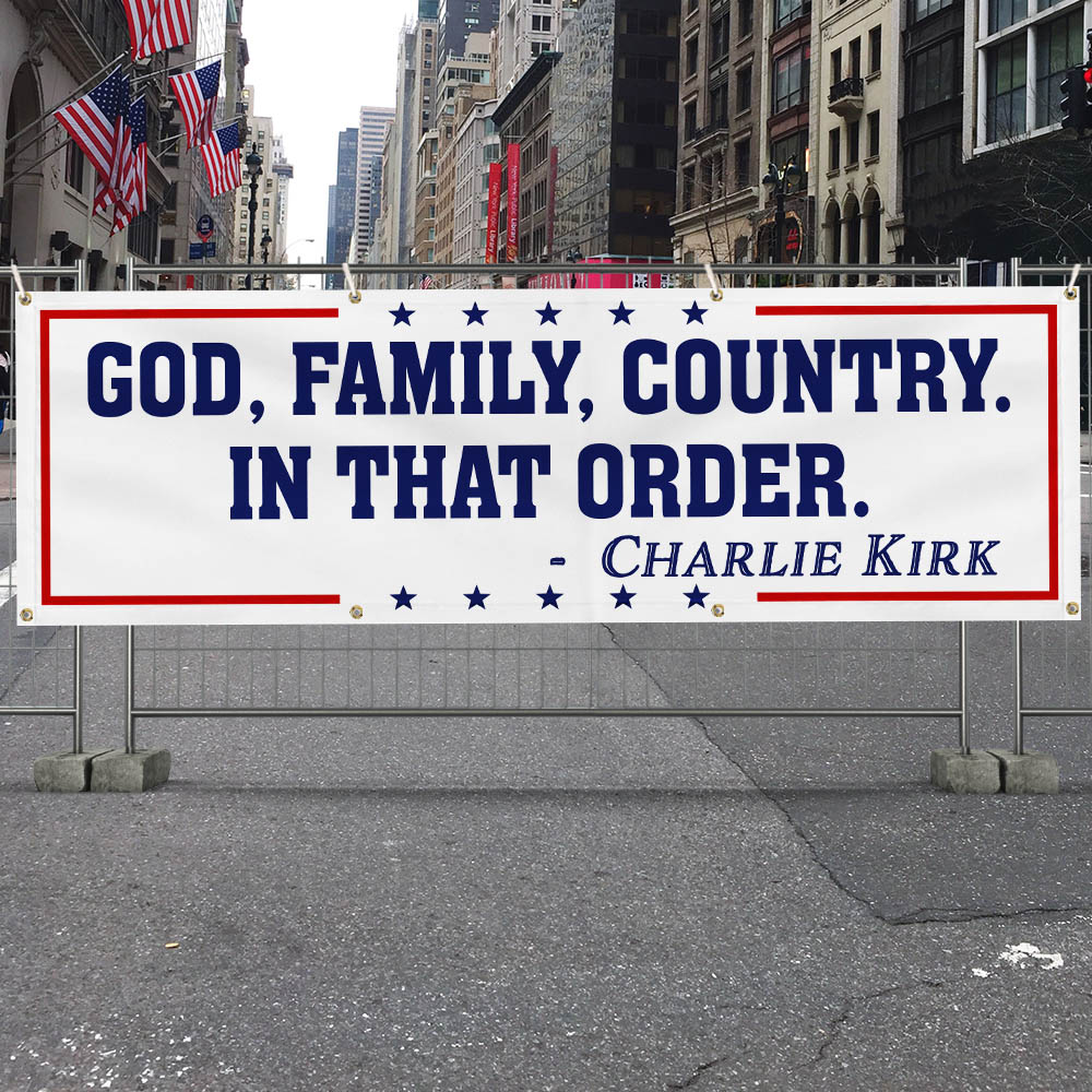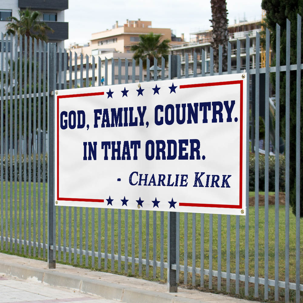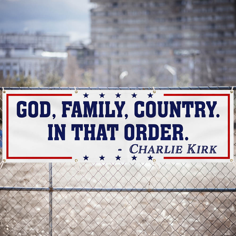 God Family Country Charlie Kirk Fence Banner Republican USA Freedom Patriot