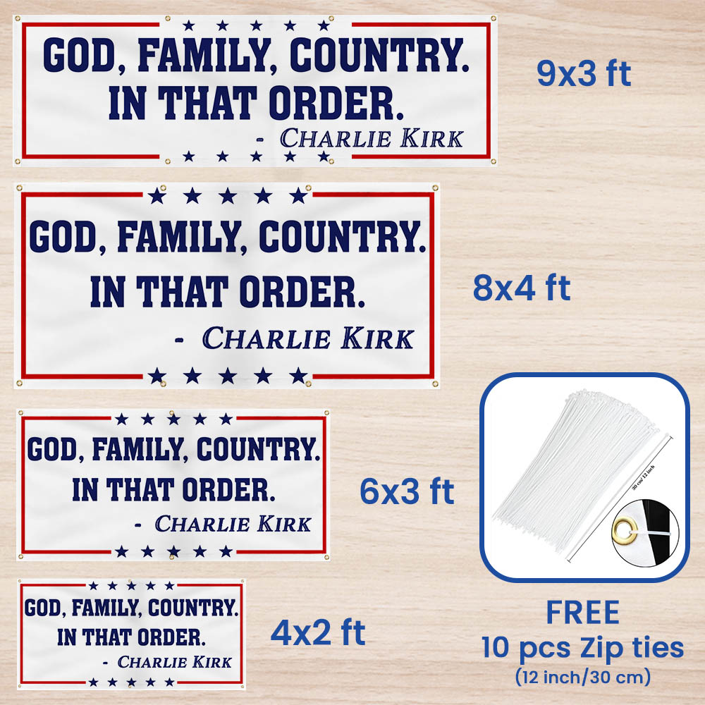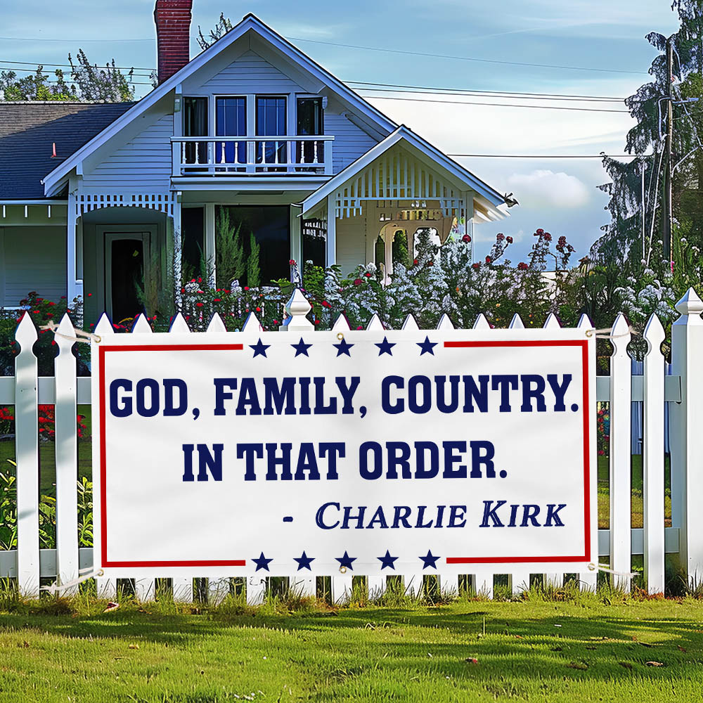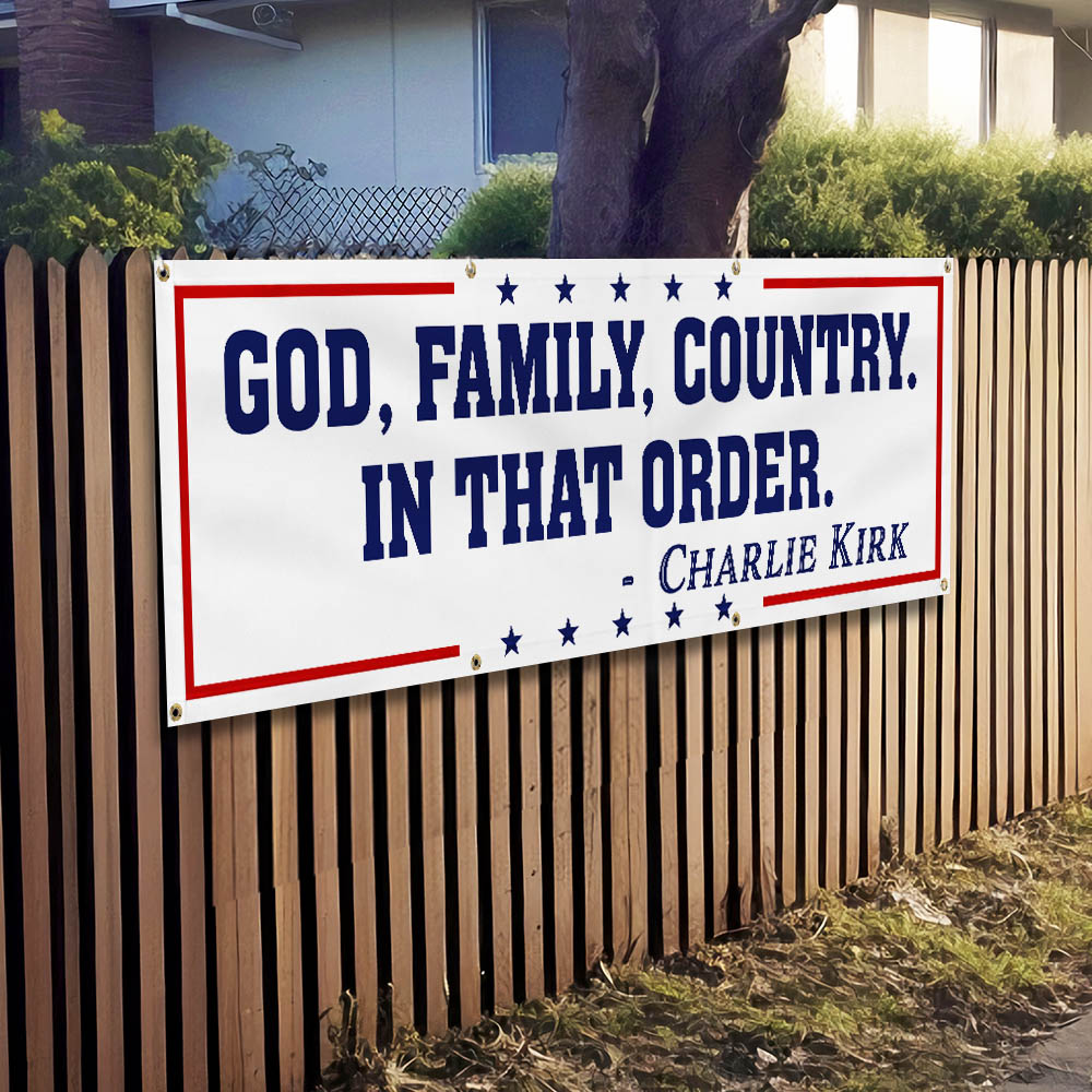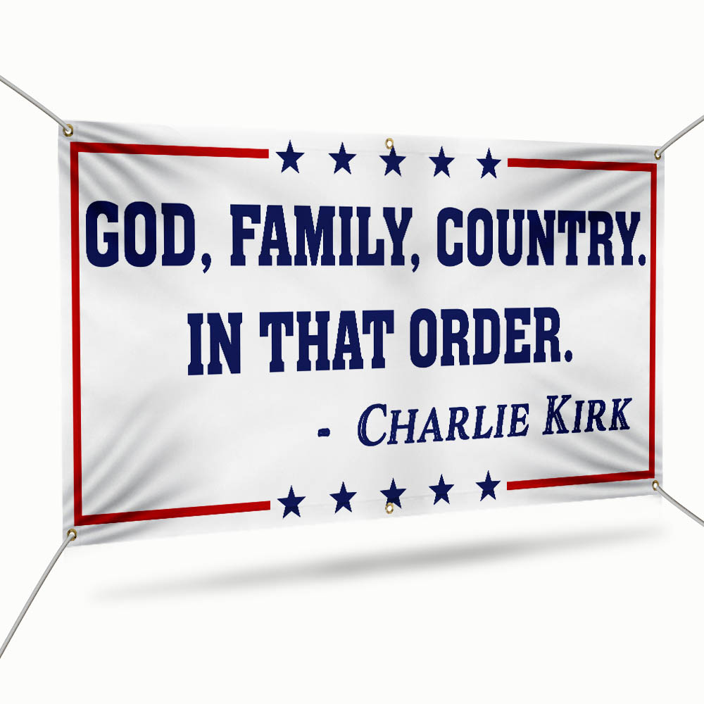 God Family Country Charlie Kirk Fence Banner Republican USA Freedom Patriot