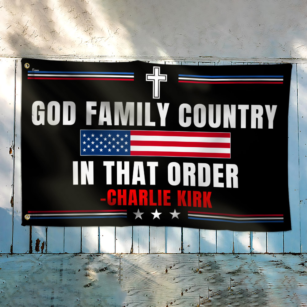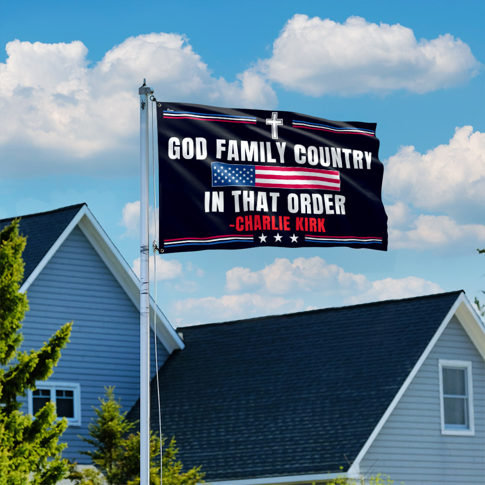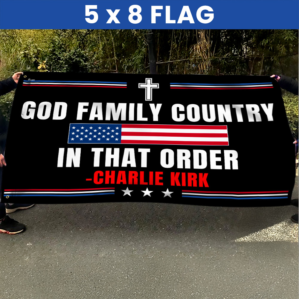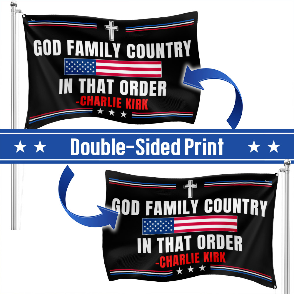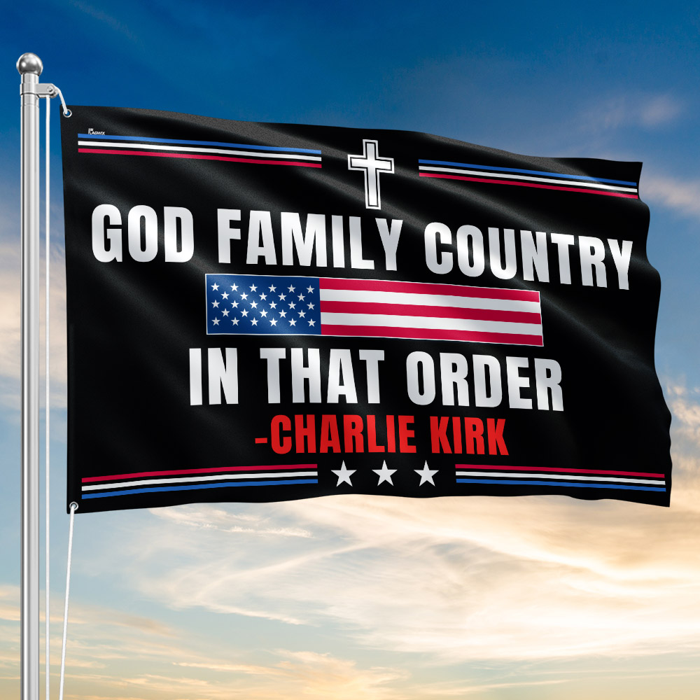 God Family Country In That Order MAGA Supporters and Praying for Charlie Kirk Grommet Flag