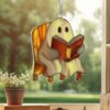 Halloween Ghost Reading Book Suncatcher – Cute Window Hanging for Book Lovers