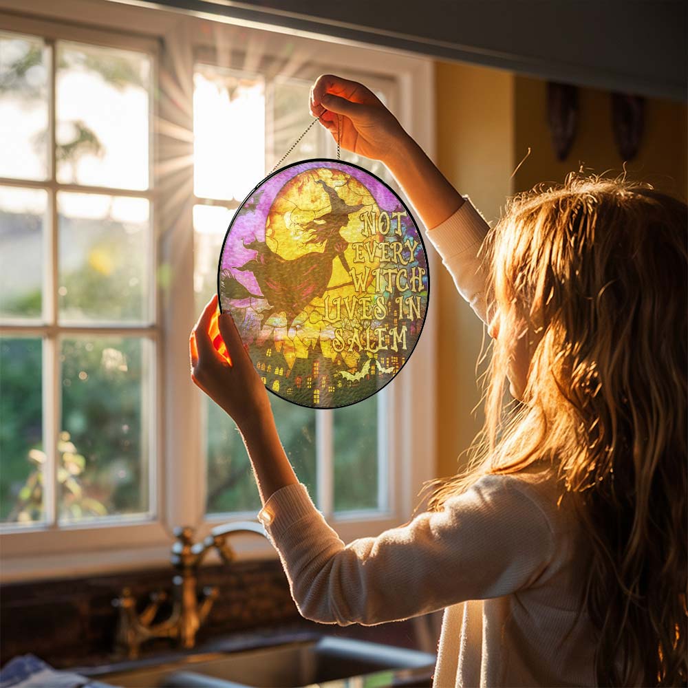 Halloween Witch Witchcraft Stained Glass Suncatcher Not Every Witch Lives In Salem