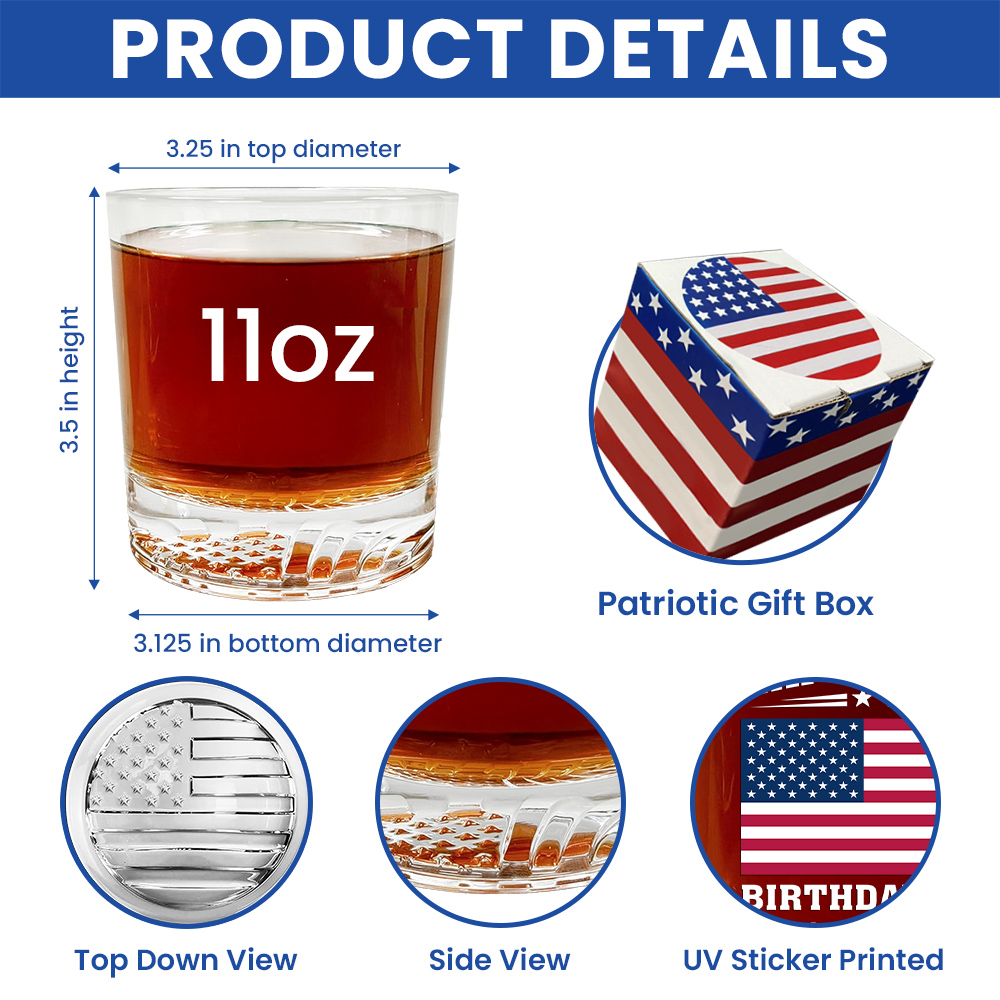It fits right into everyday evenings, weekend gatherings, or quiet celebrations of American pride. Compared to plain tumblers or fragile crystal whiskey glasses, this glass balances durability, comfort, and personality.