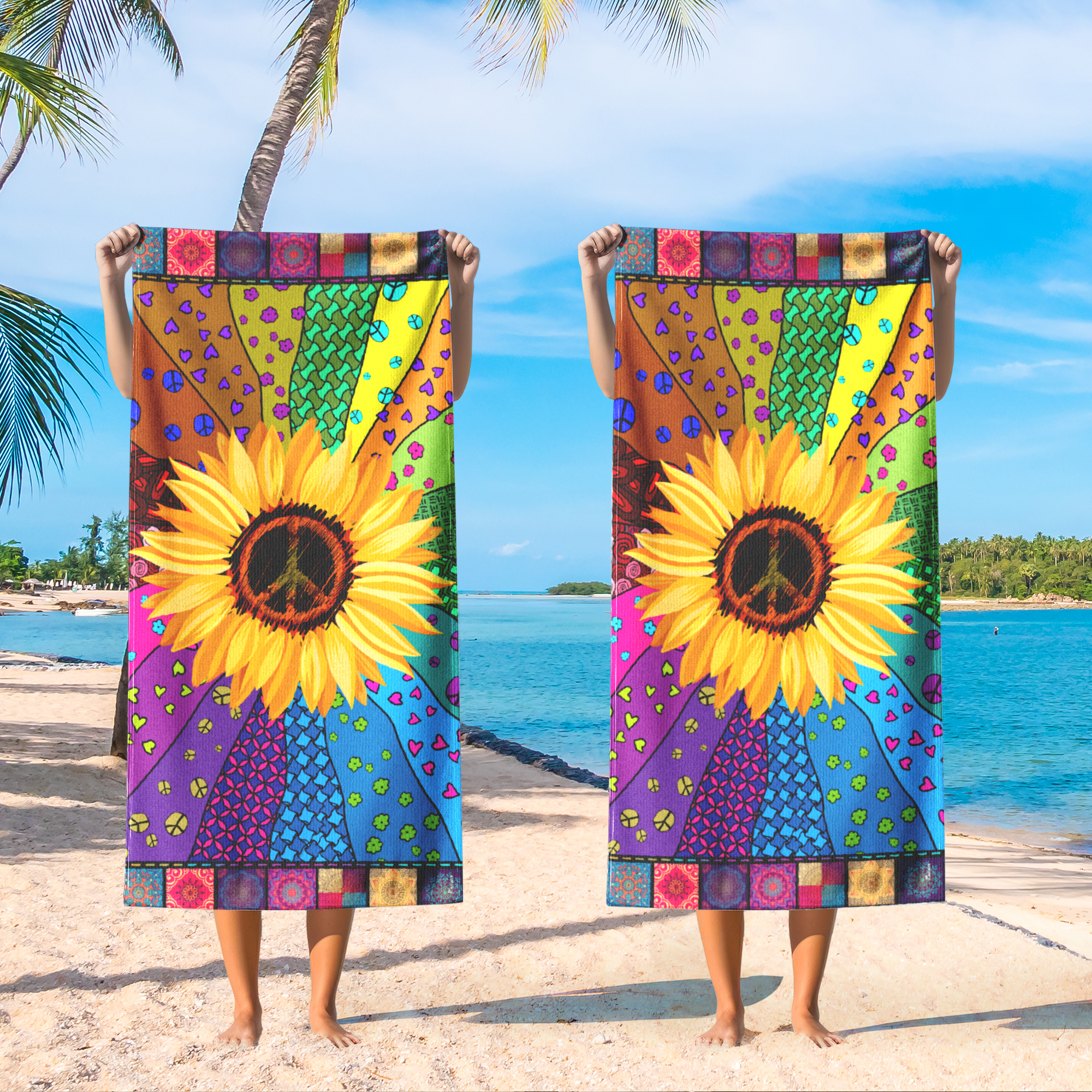 Hippie Peace Sign Sunflower Beach Towel TPT2728NTH
