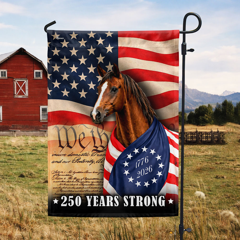Horse American Flag, 250 Years Strong Horse Wrapped in Glory US Flag