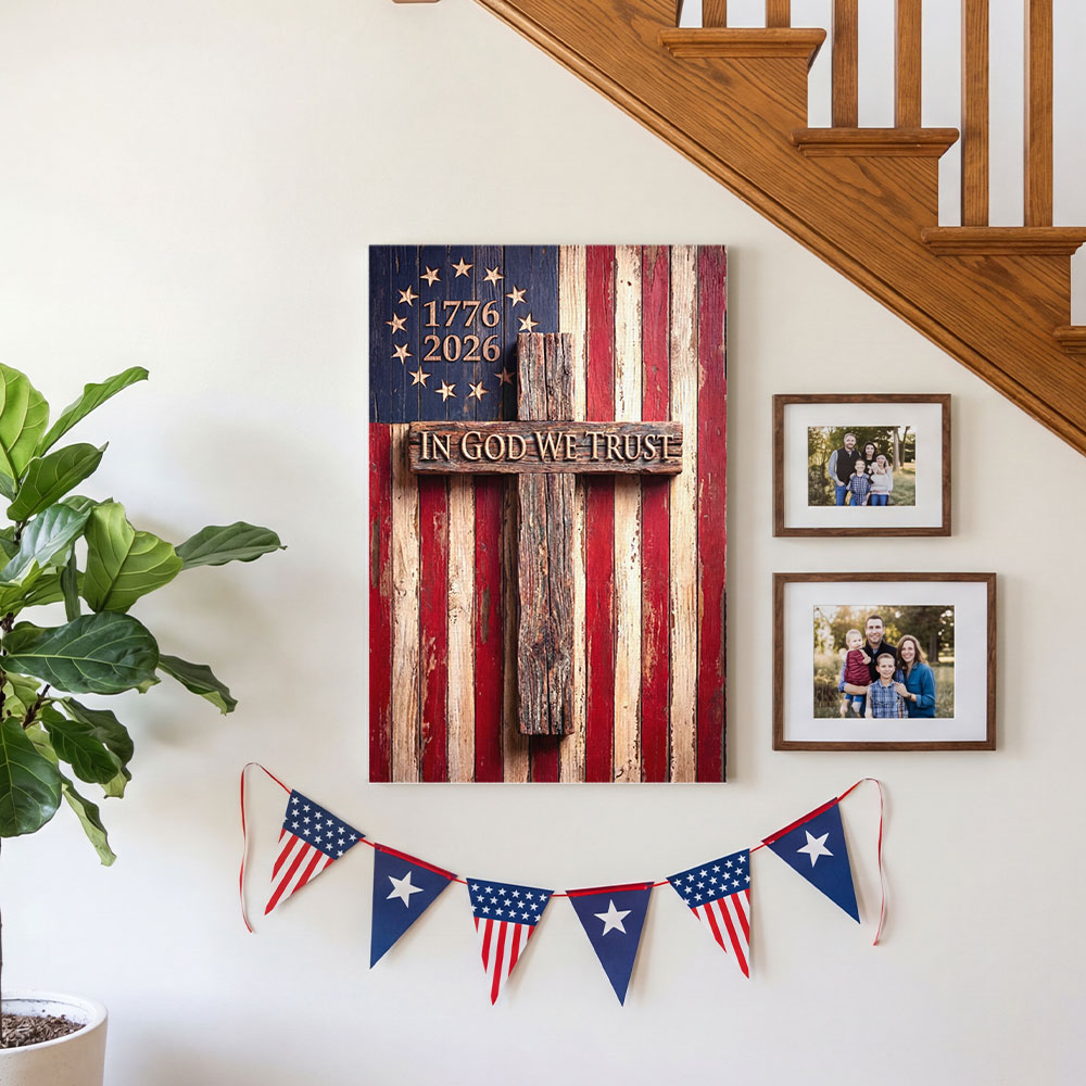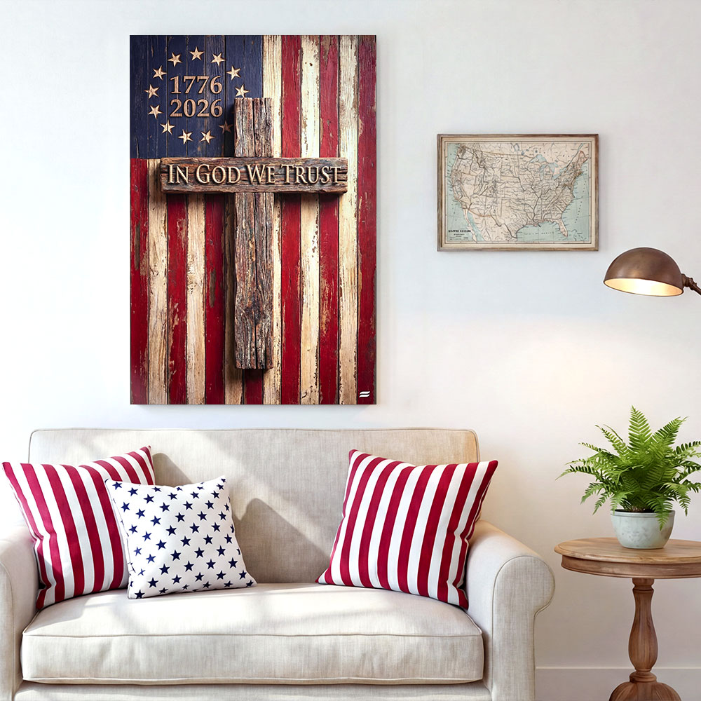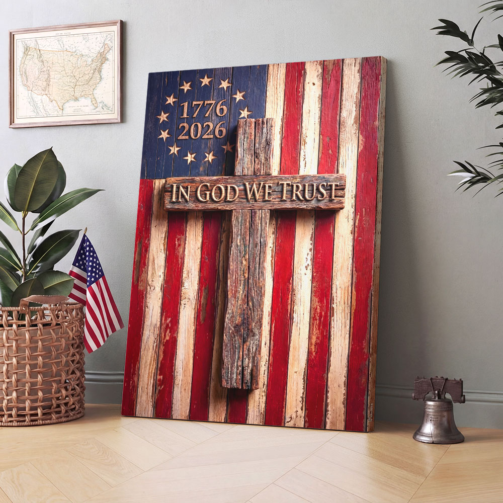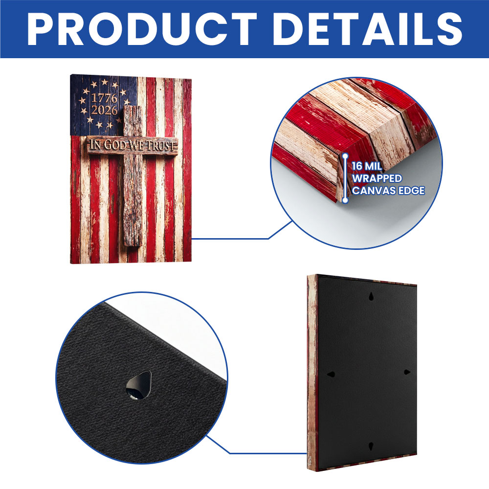 In God We Trust Patriotic Christian with Painting Betsy Ross Flag Canvas Wall Art