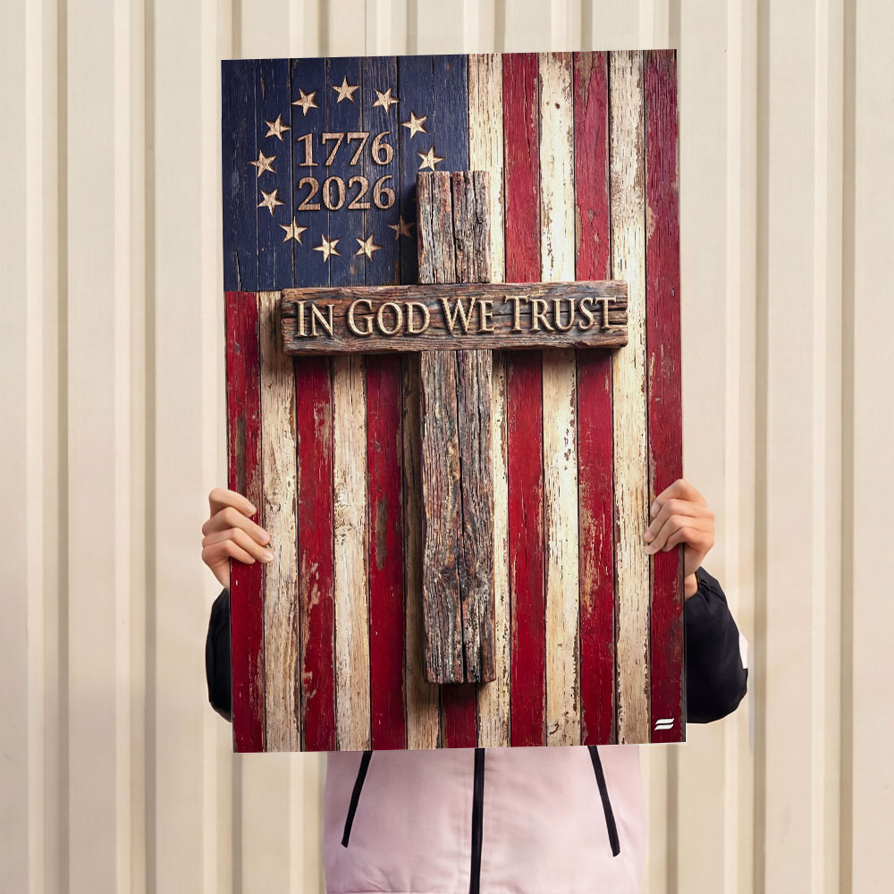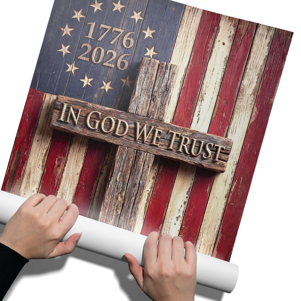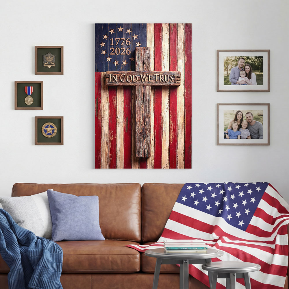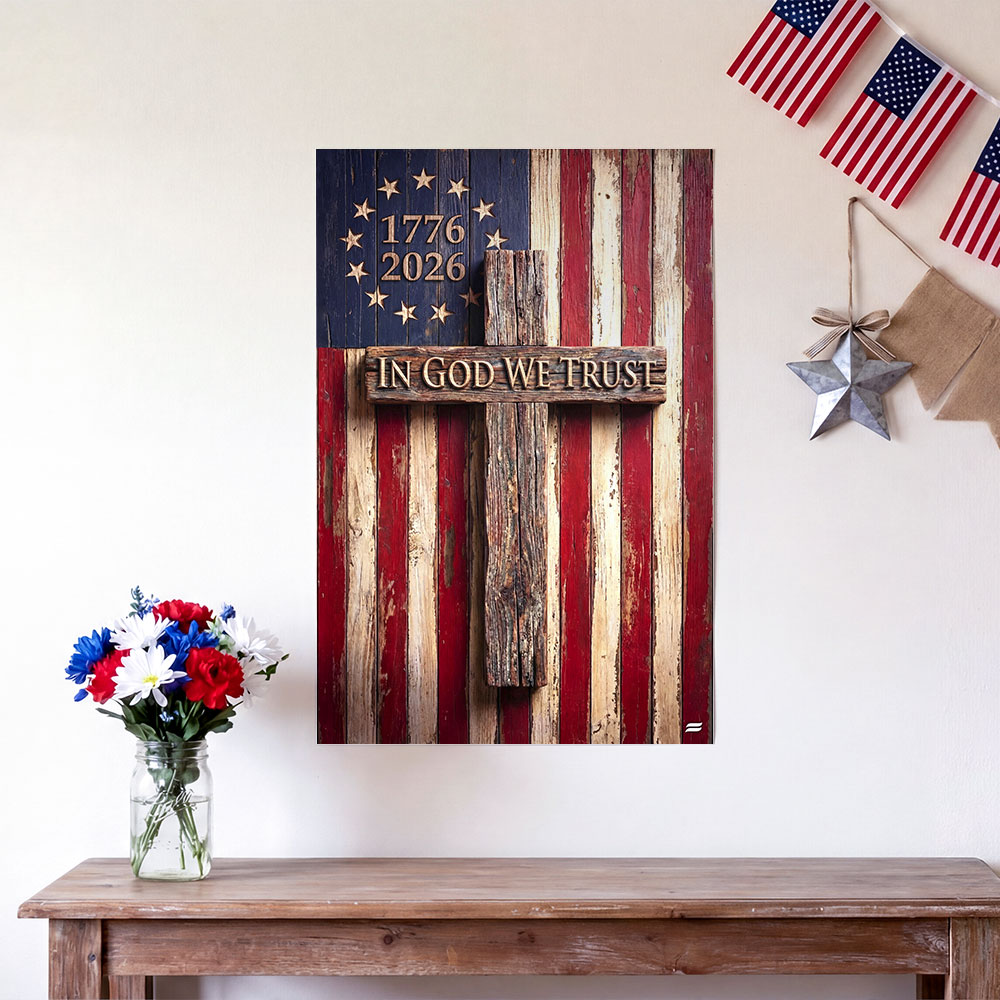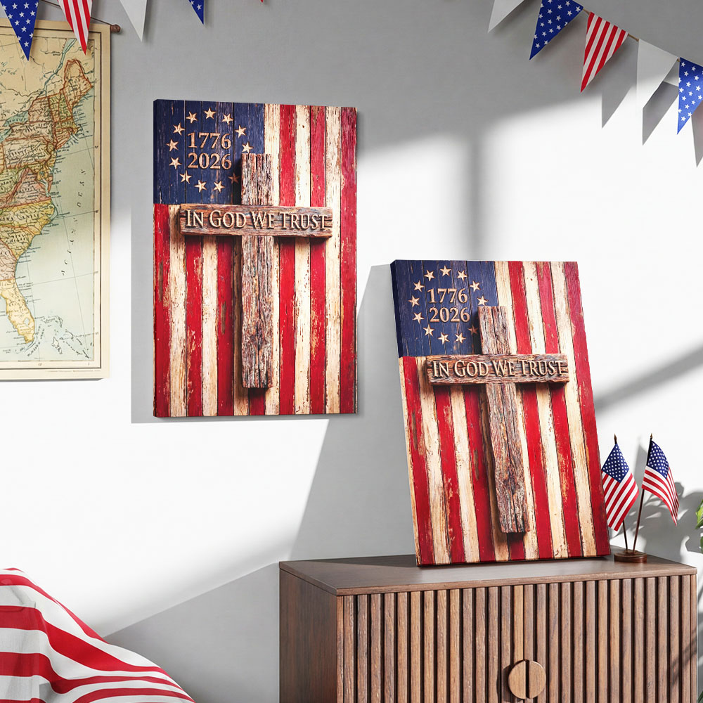 In God We Trust Patriotic Christian with Painting Betsy Ross Flag Canvas Wall Art