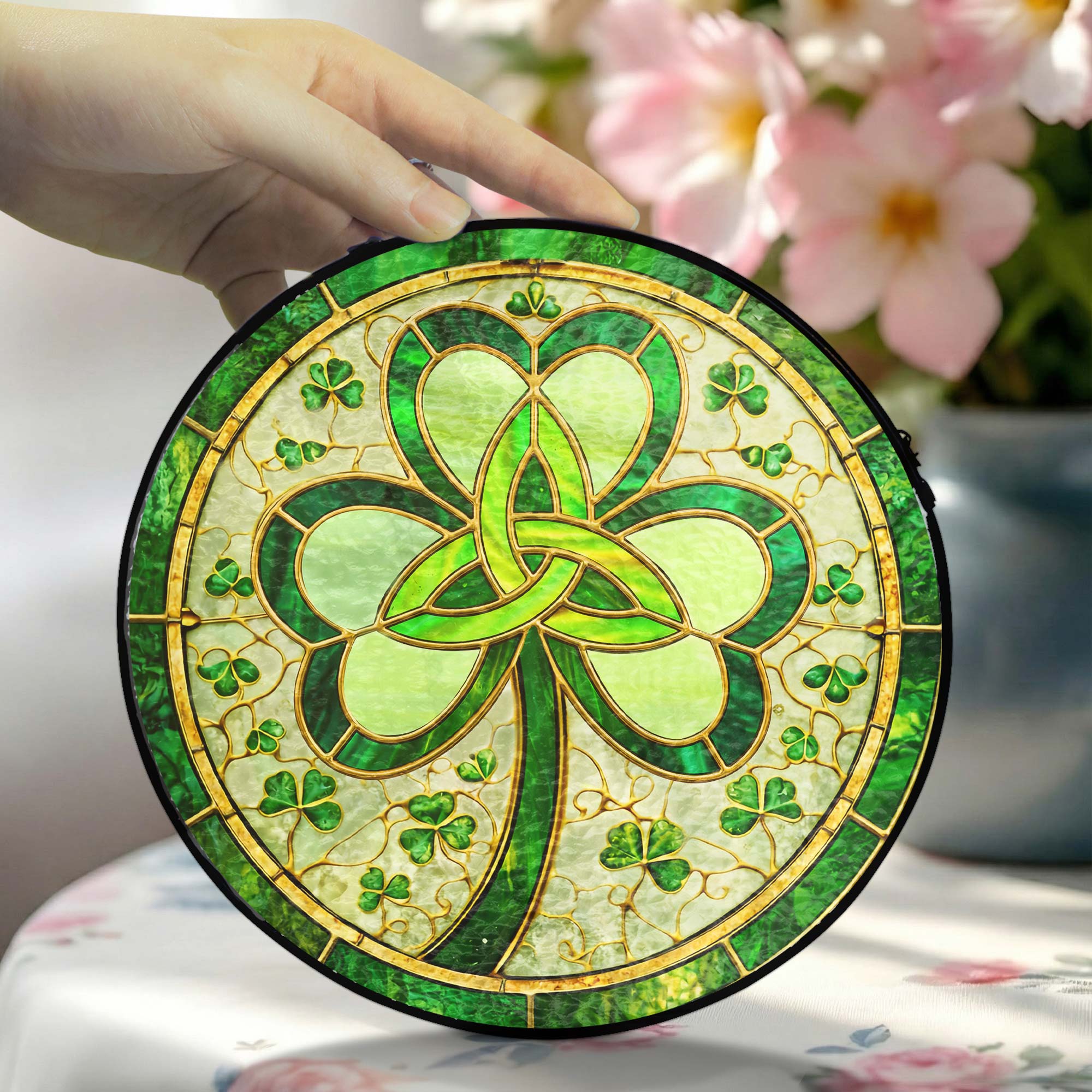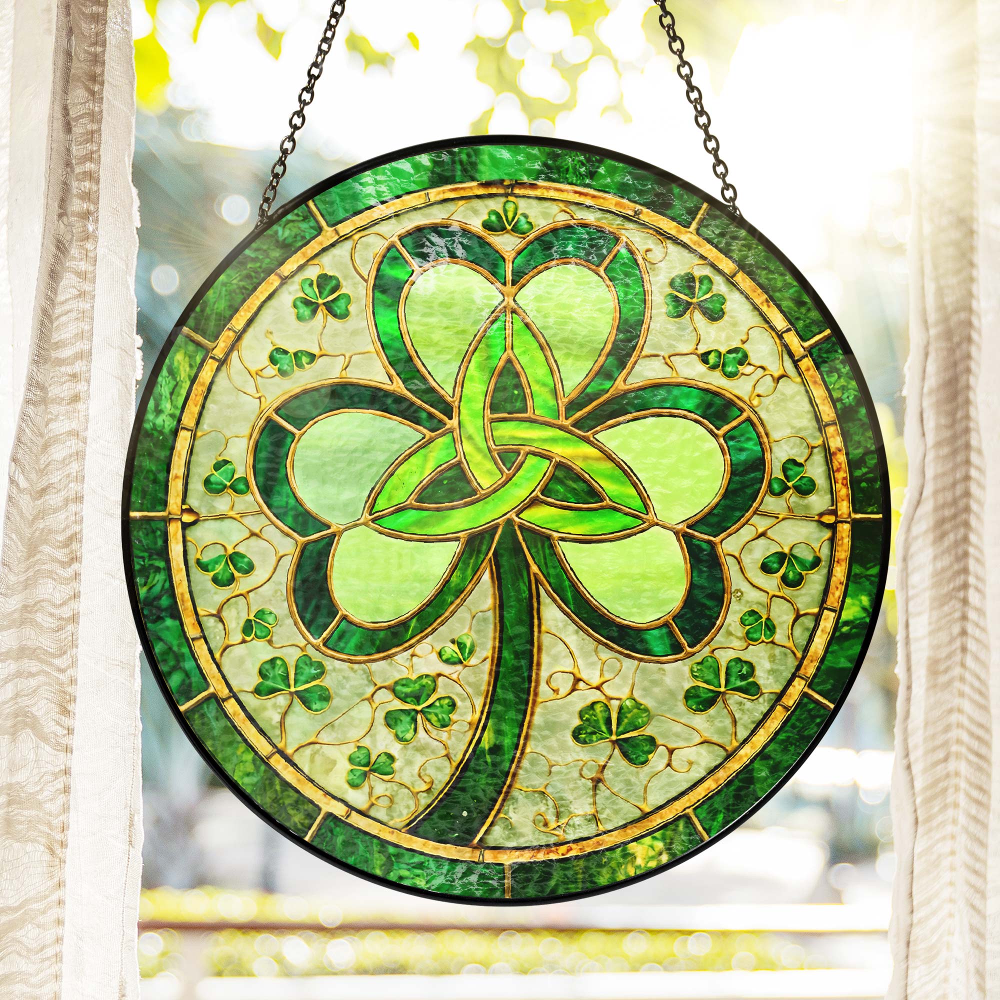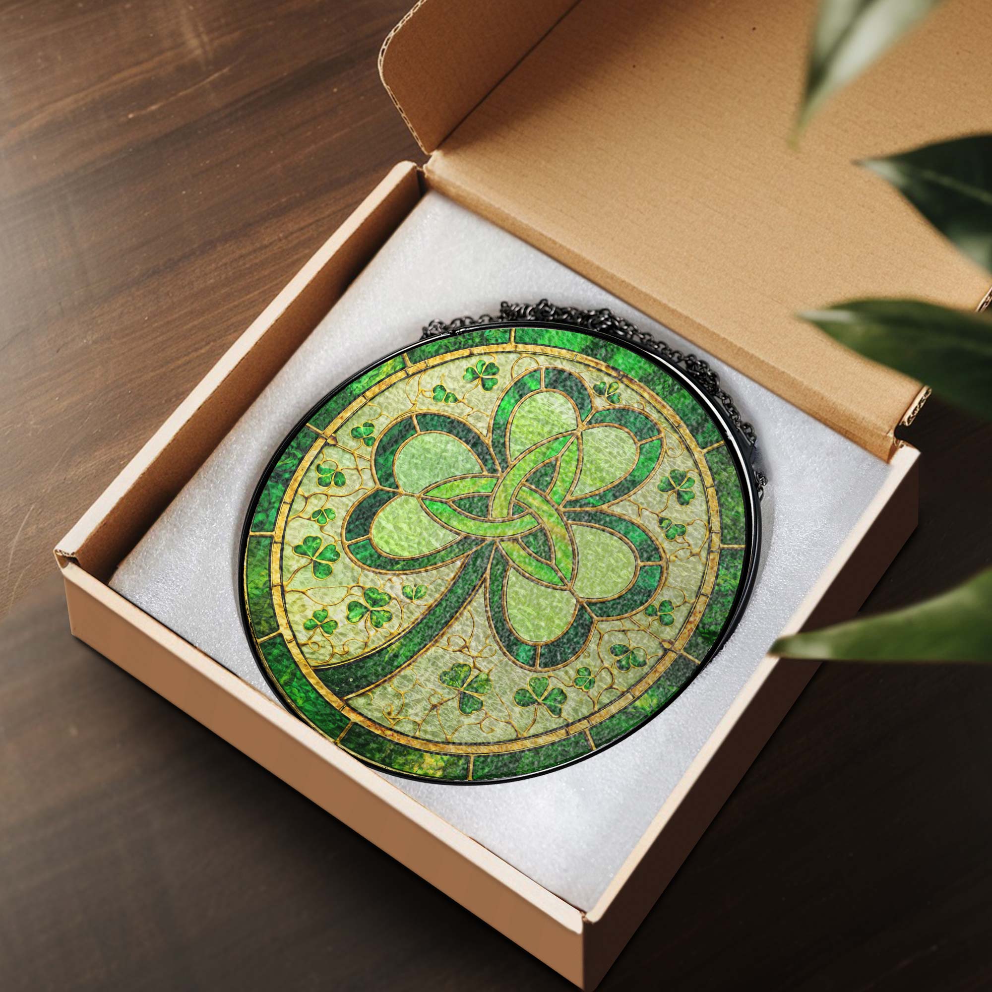 Irish Celtic Knot Shamrock Stained Glass Suncatcher for St. Patrick’s