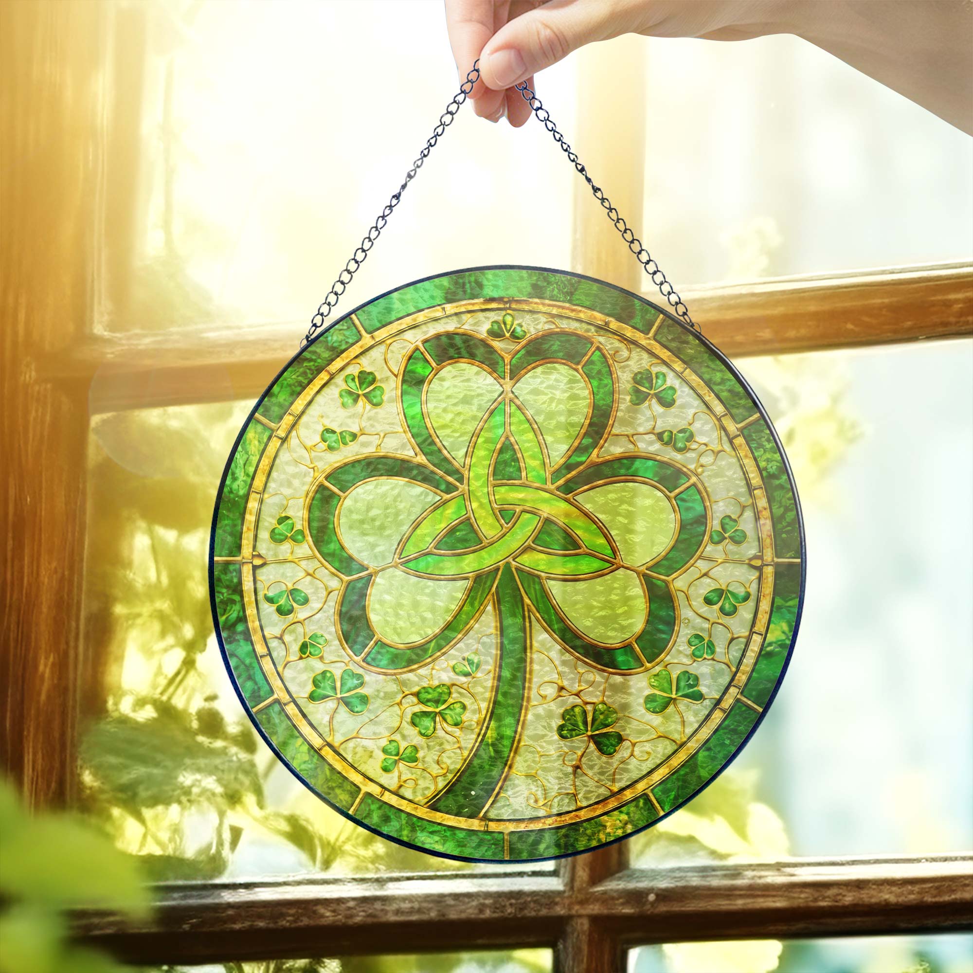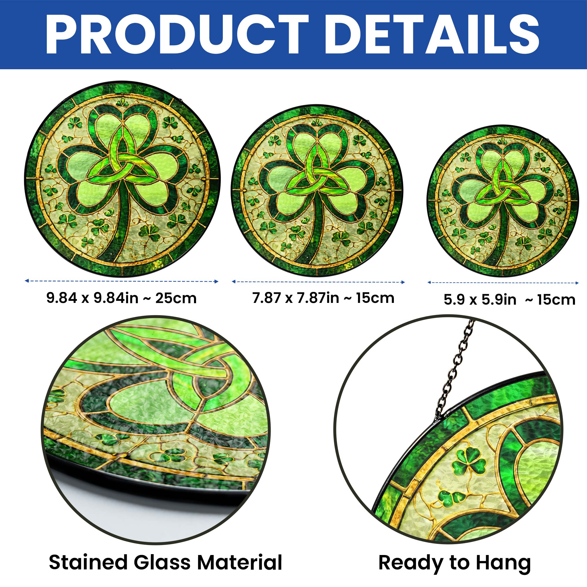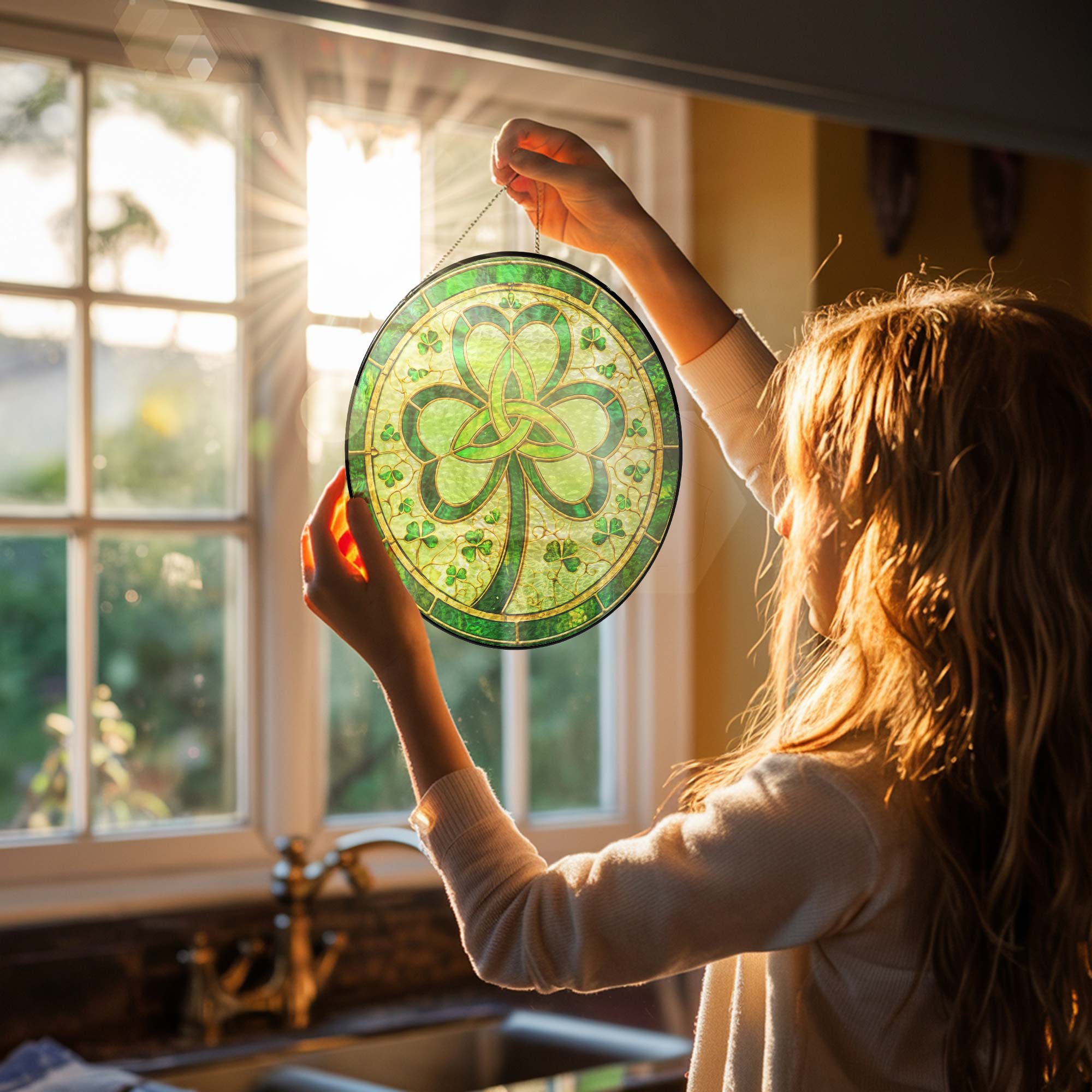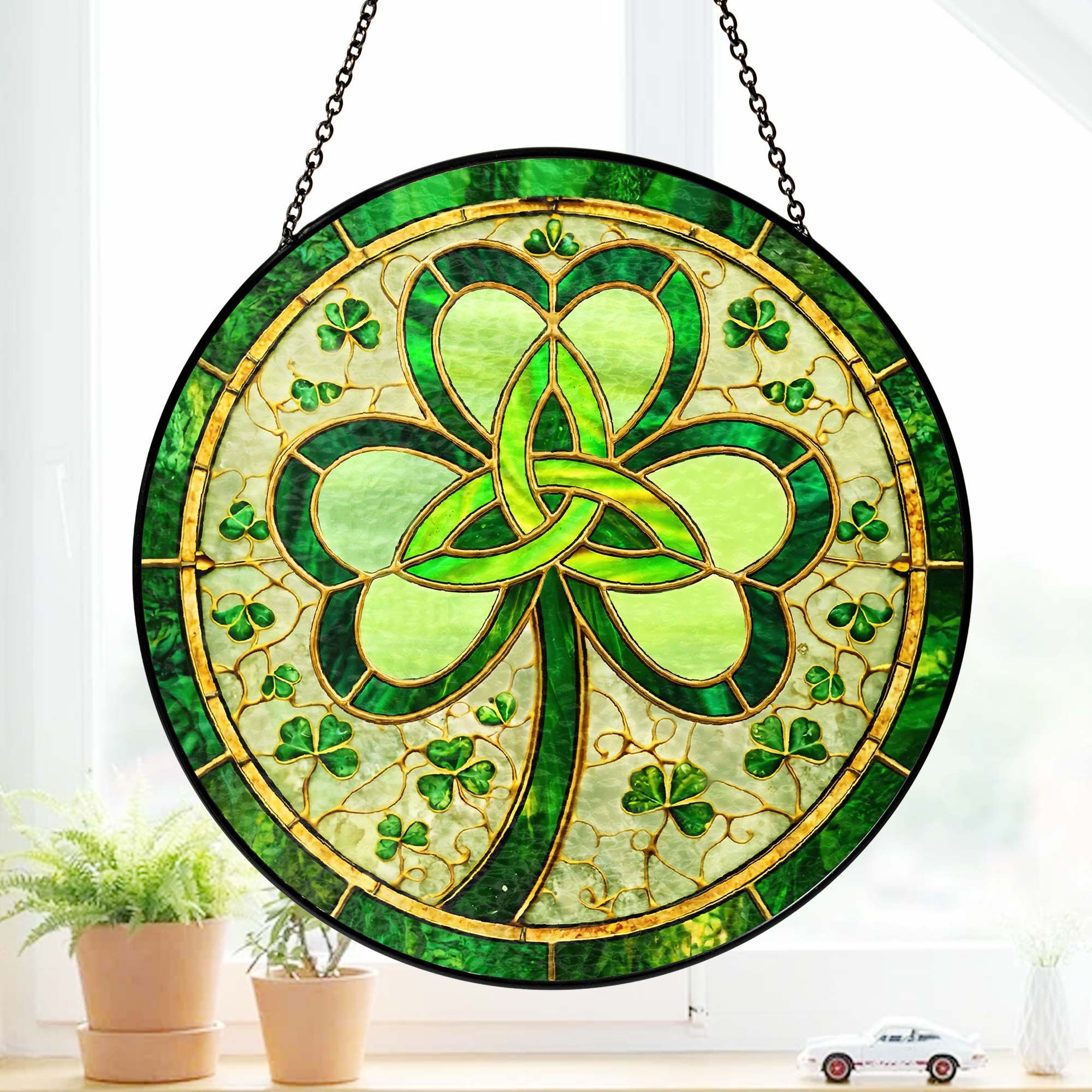 Irish Celtic Knot Shamrock Stained Glass Suncatcher for St. Patrick’s