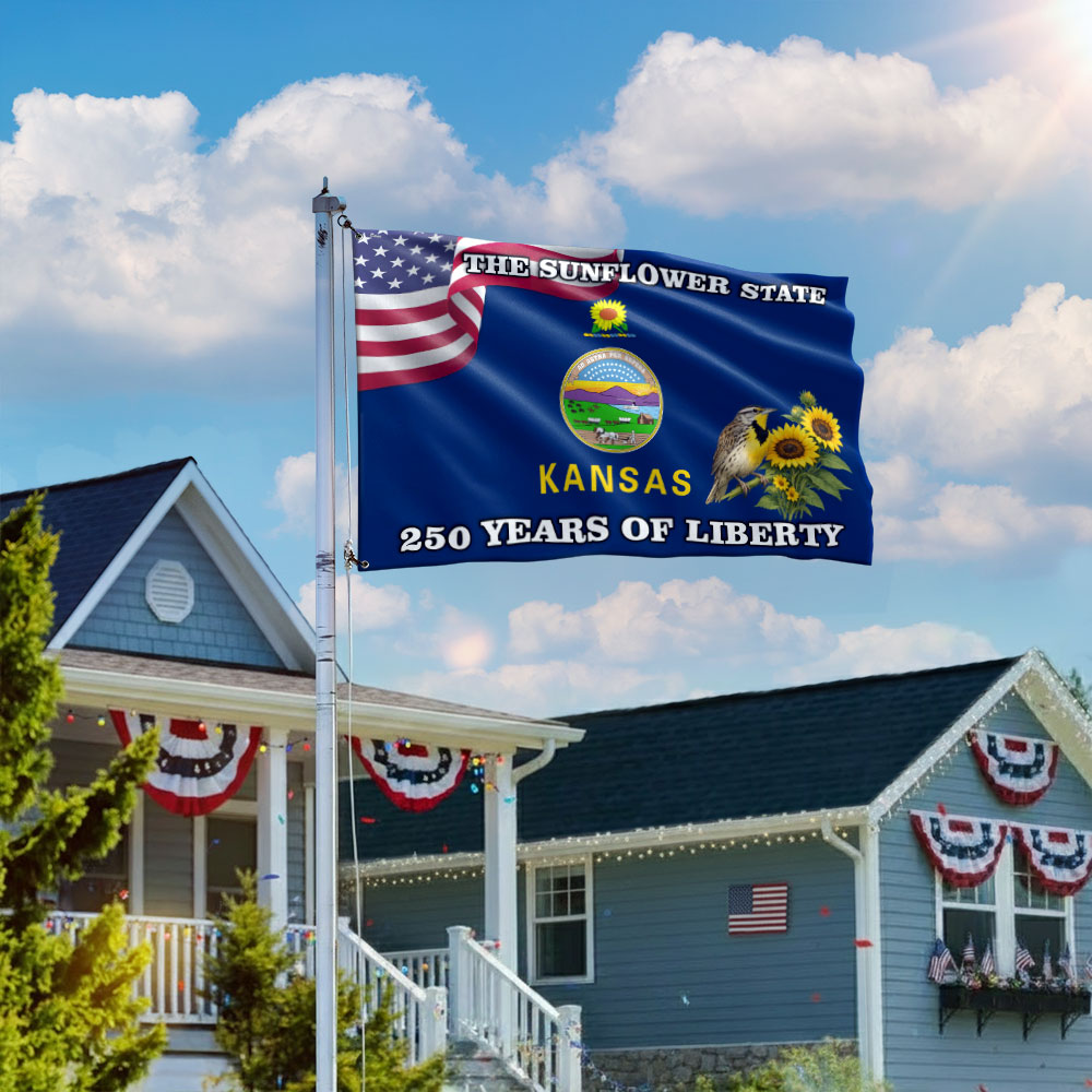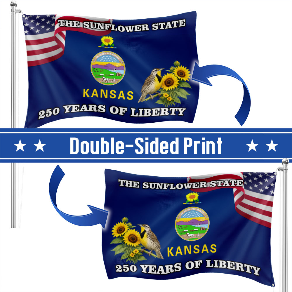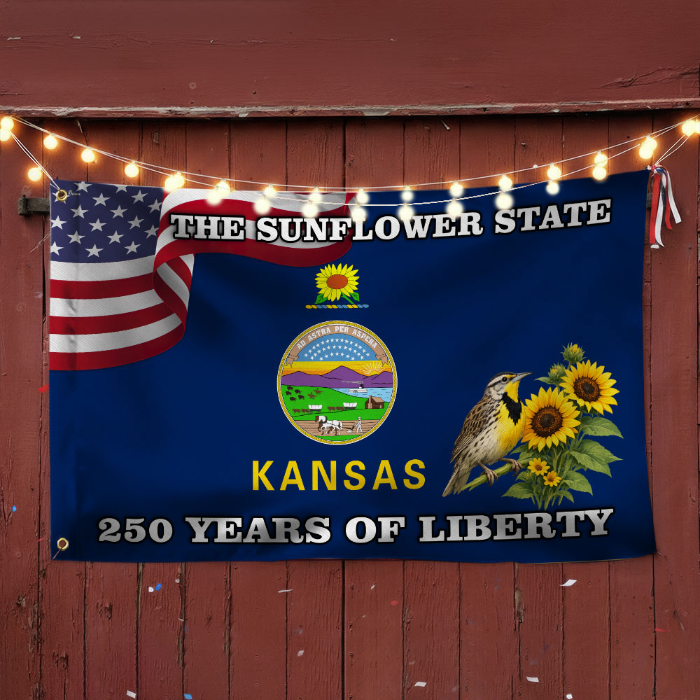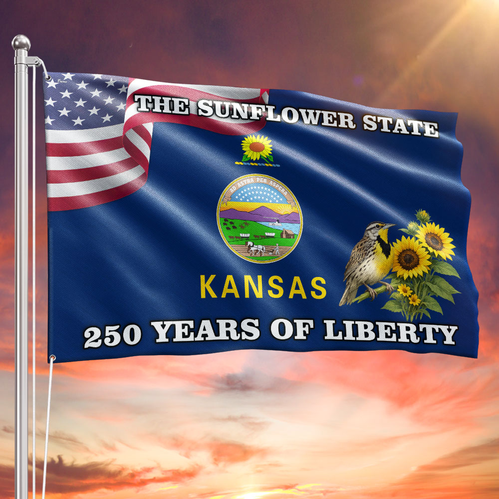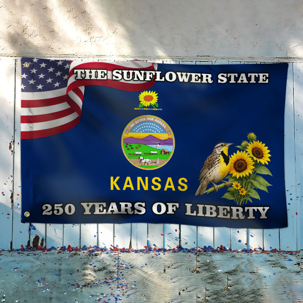 Kansas State Flag, 250 Years of Liberty The Sunflower State Grommet Flag