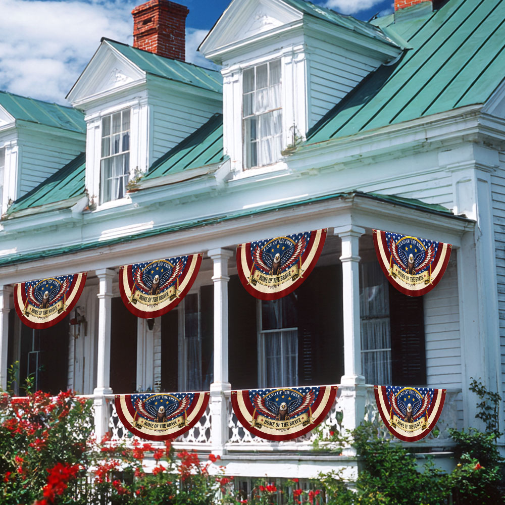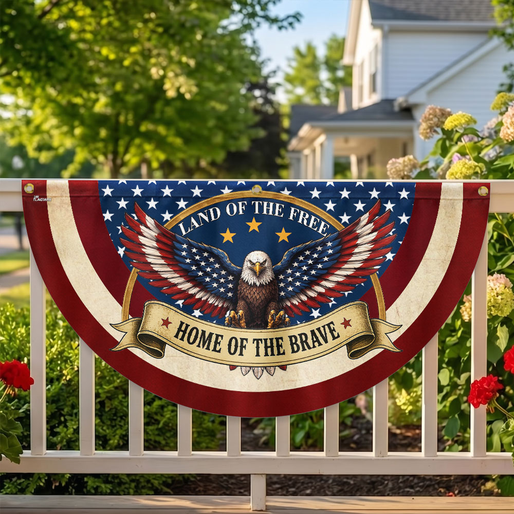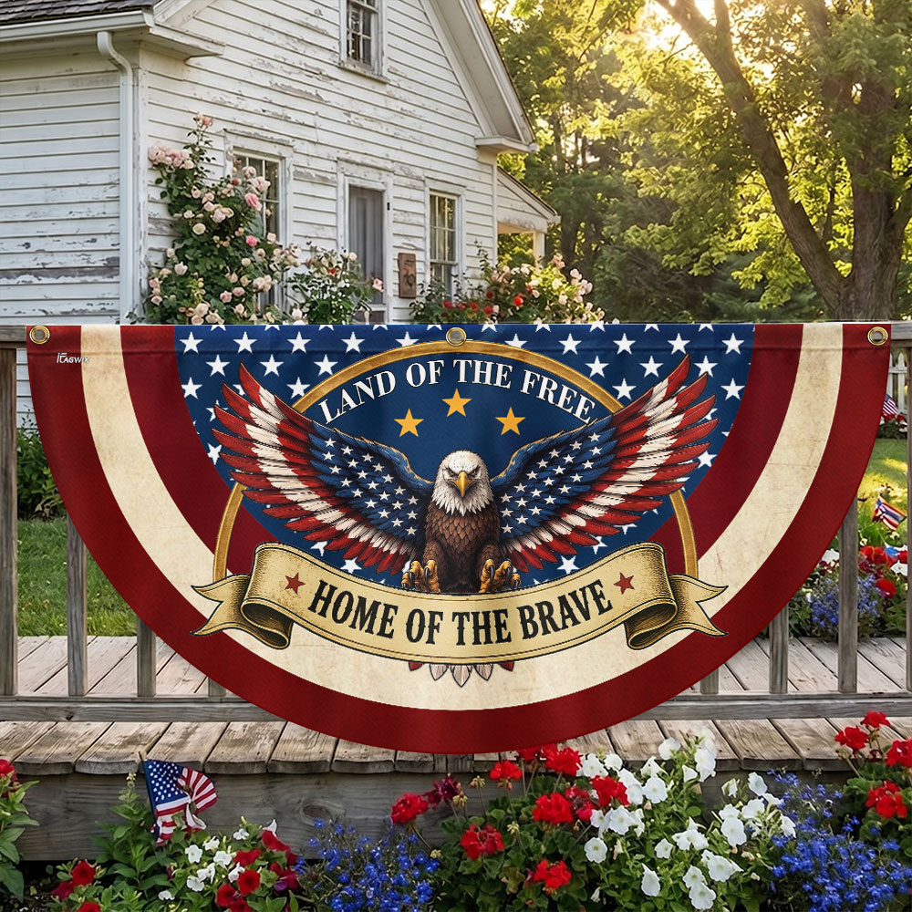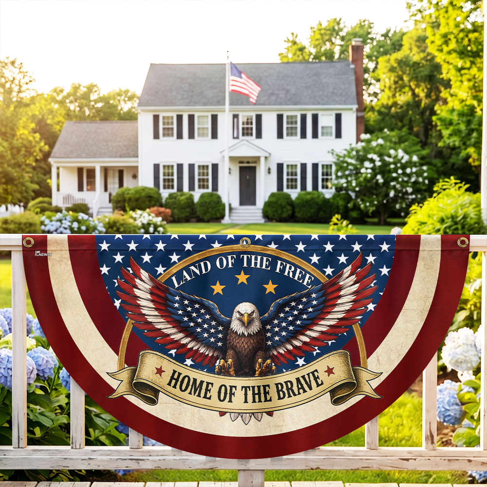 Land of the Free Home of the Brave Patriotic Fan Flag, American Bunting Flag Decor for 4th July