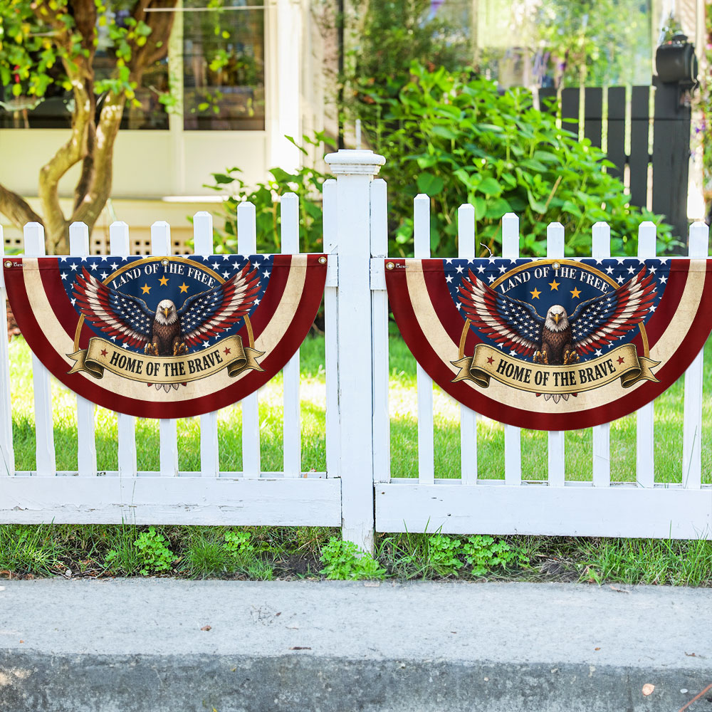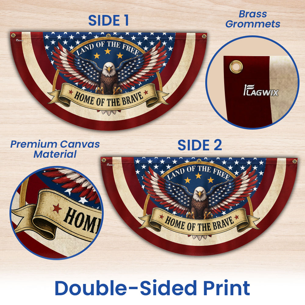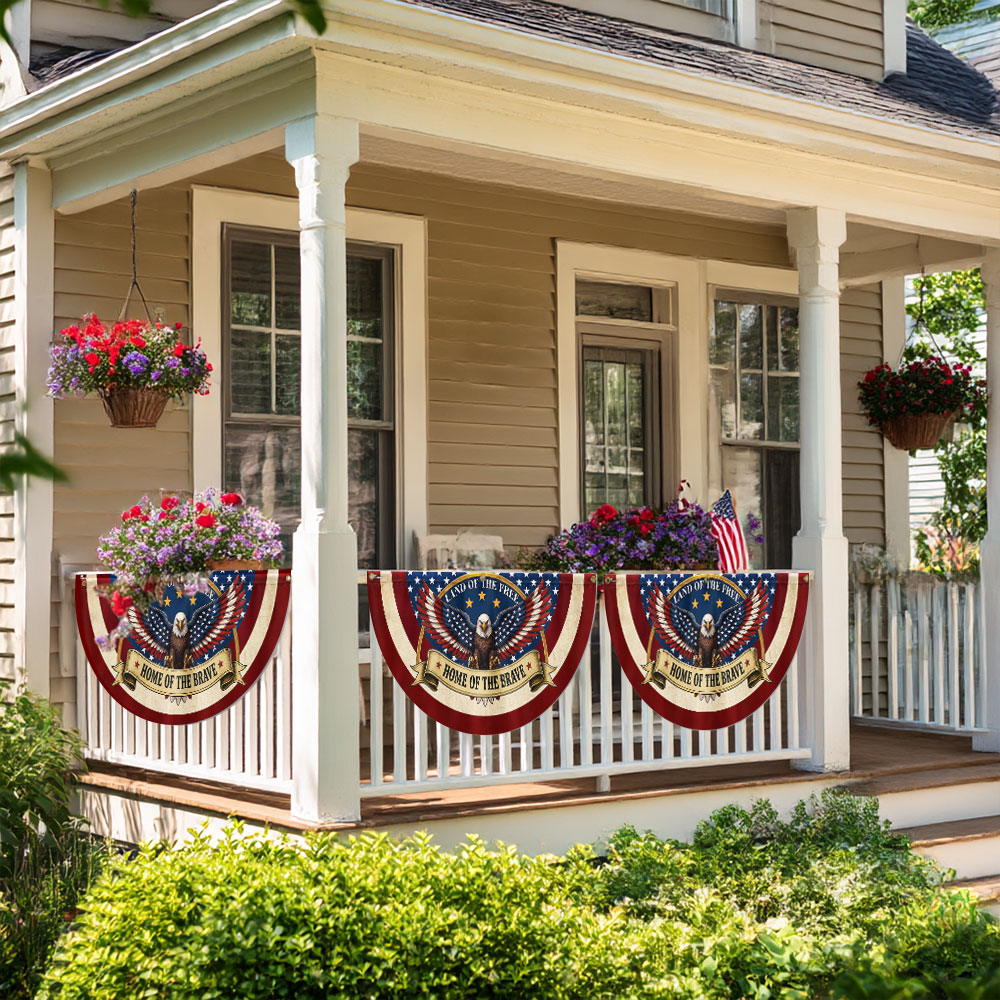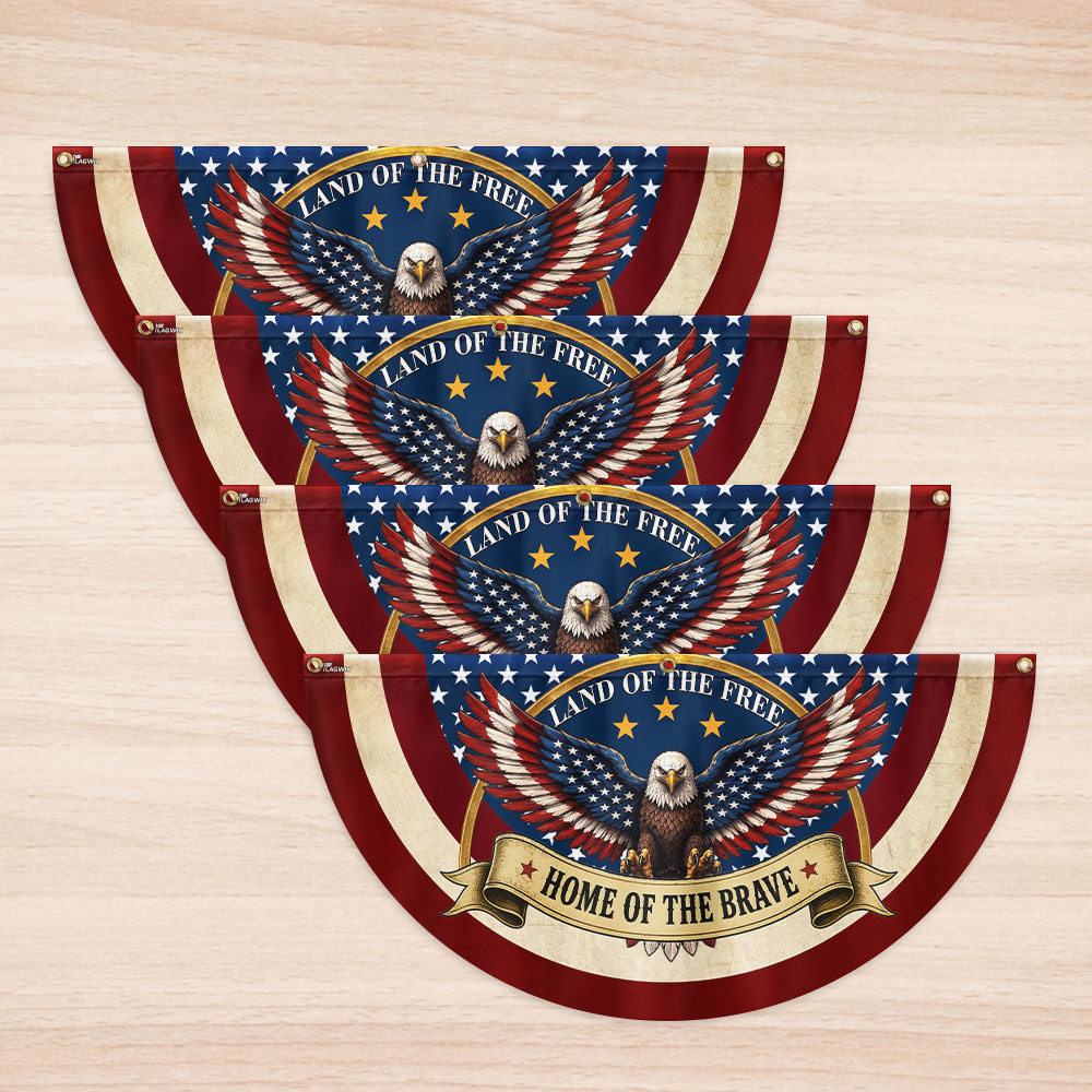 Land of the Free Home of the Brave Patriotic Fan Flag, American Bunting Flag Decor for 4th July