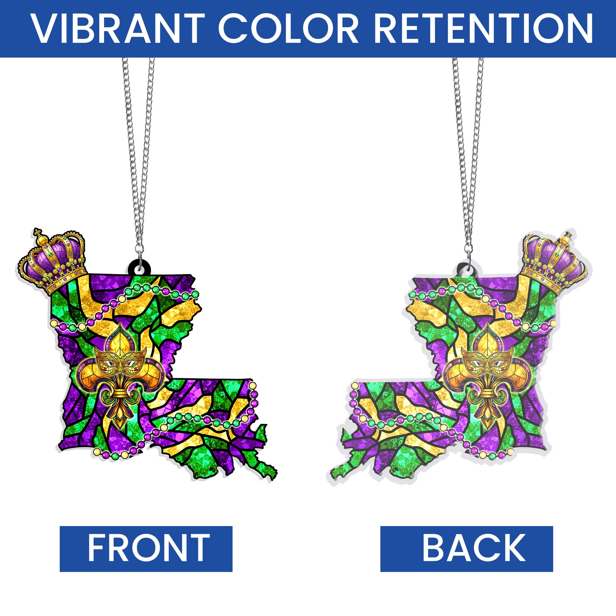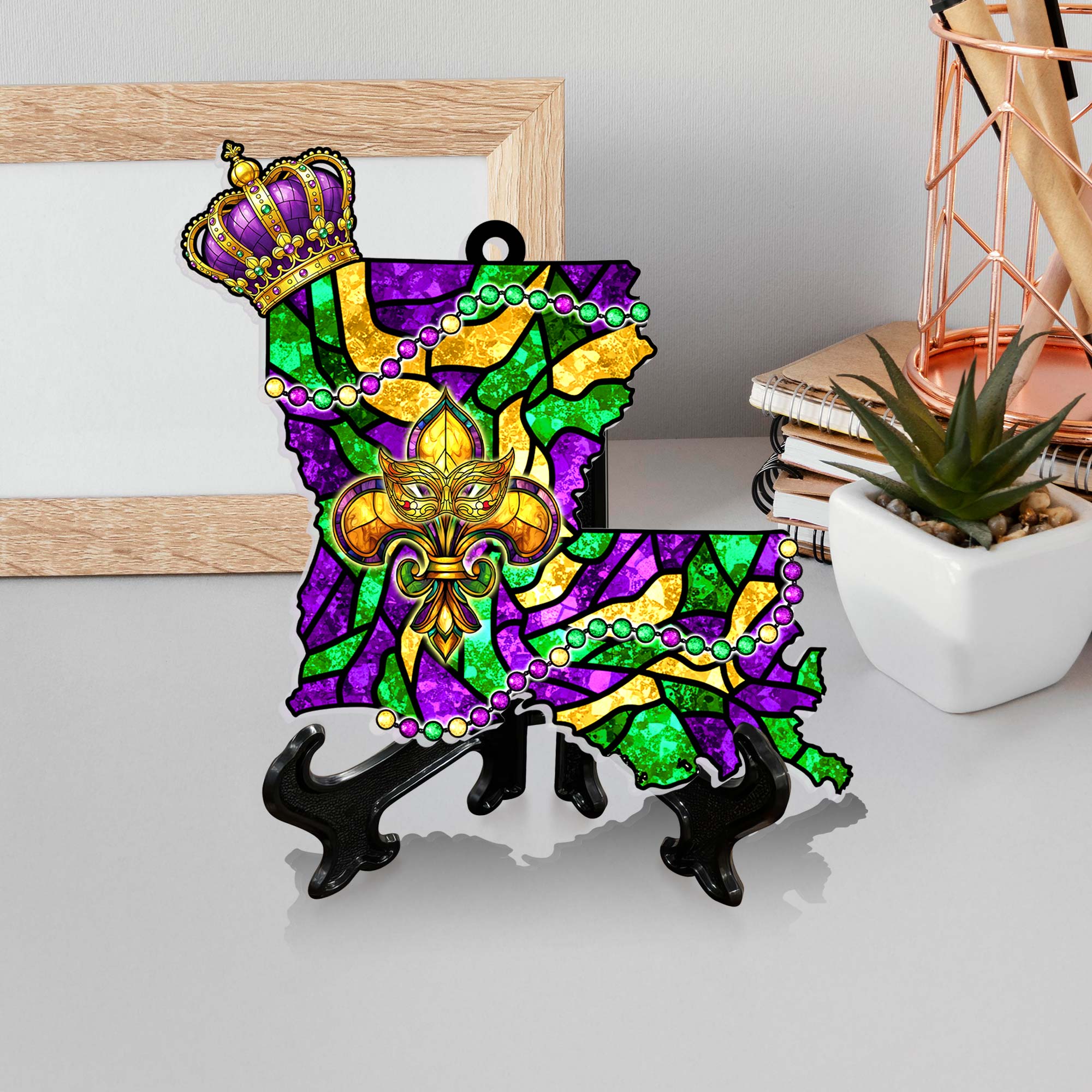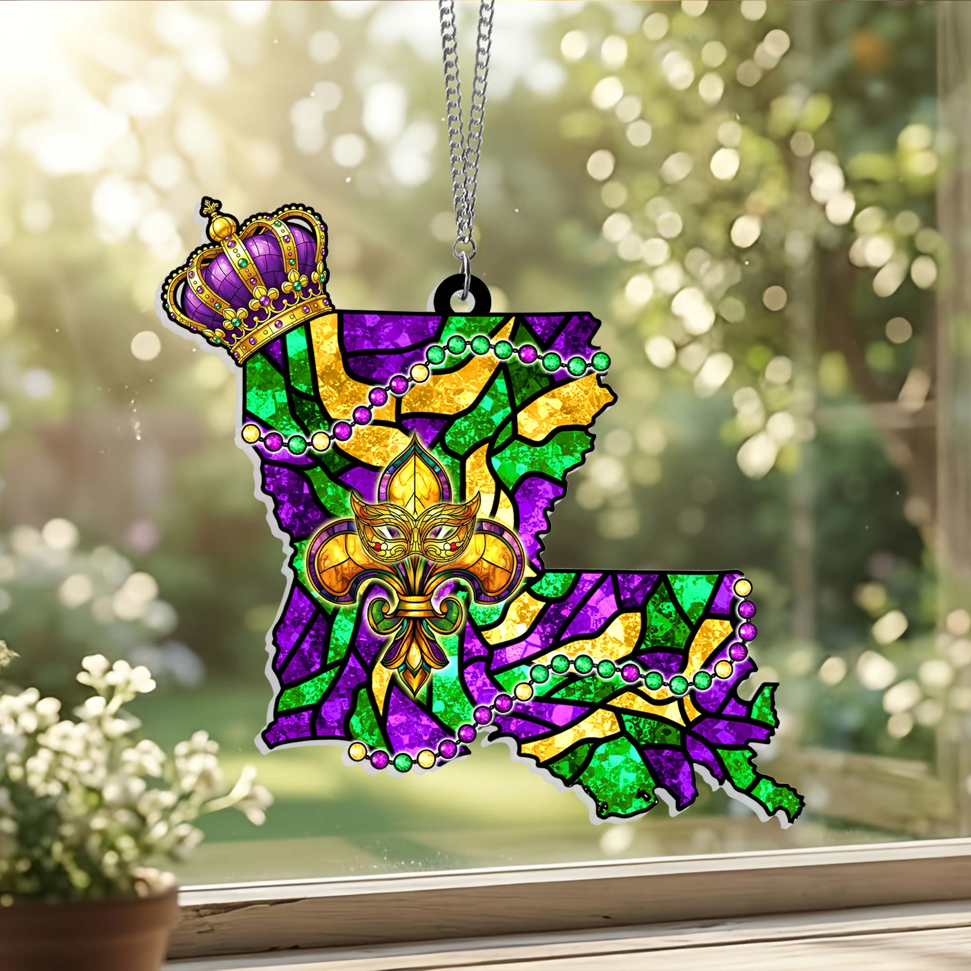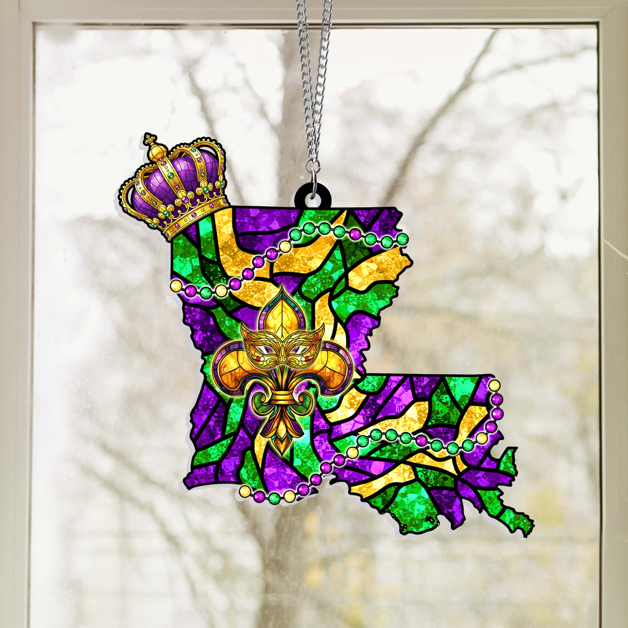 Louisiana Happy Mardi Gras Beads, Fleur De Lis Acrylic Suncatcher Hanging