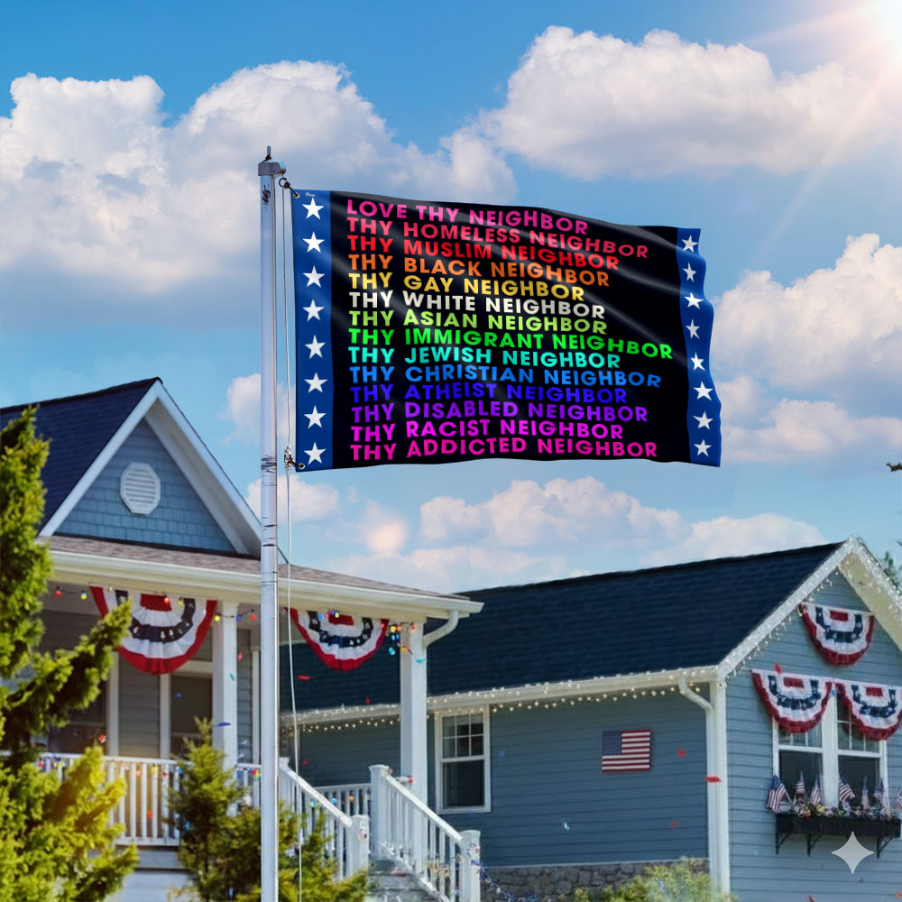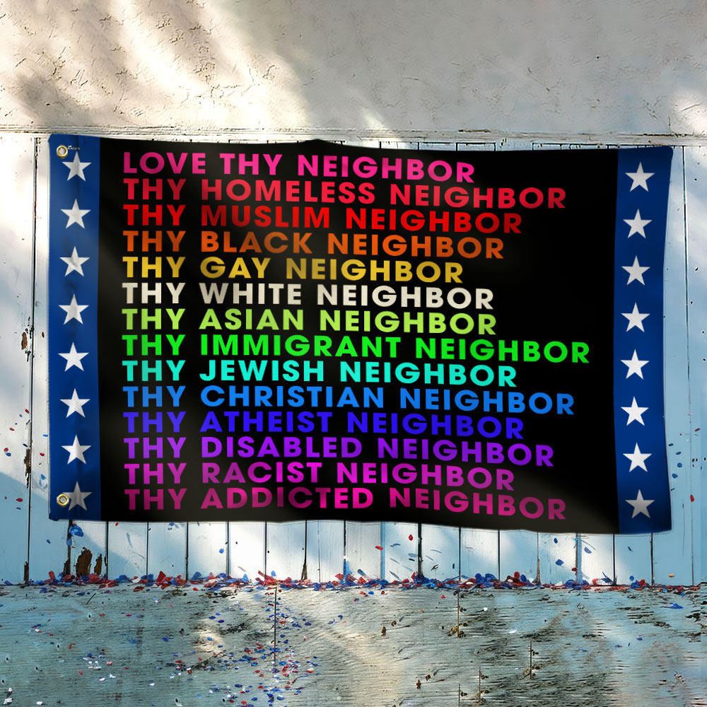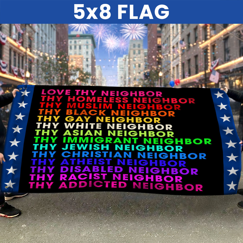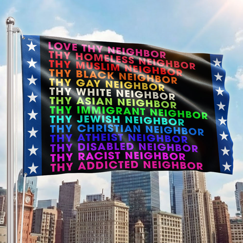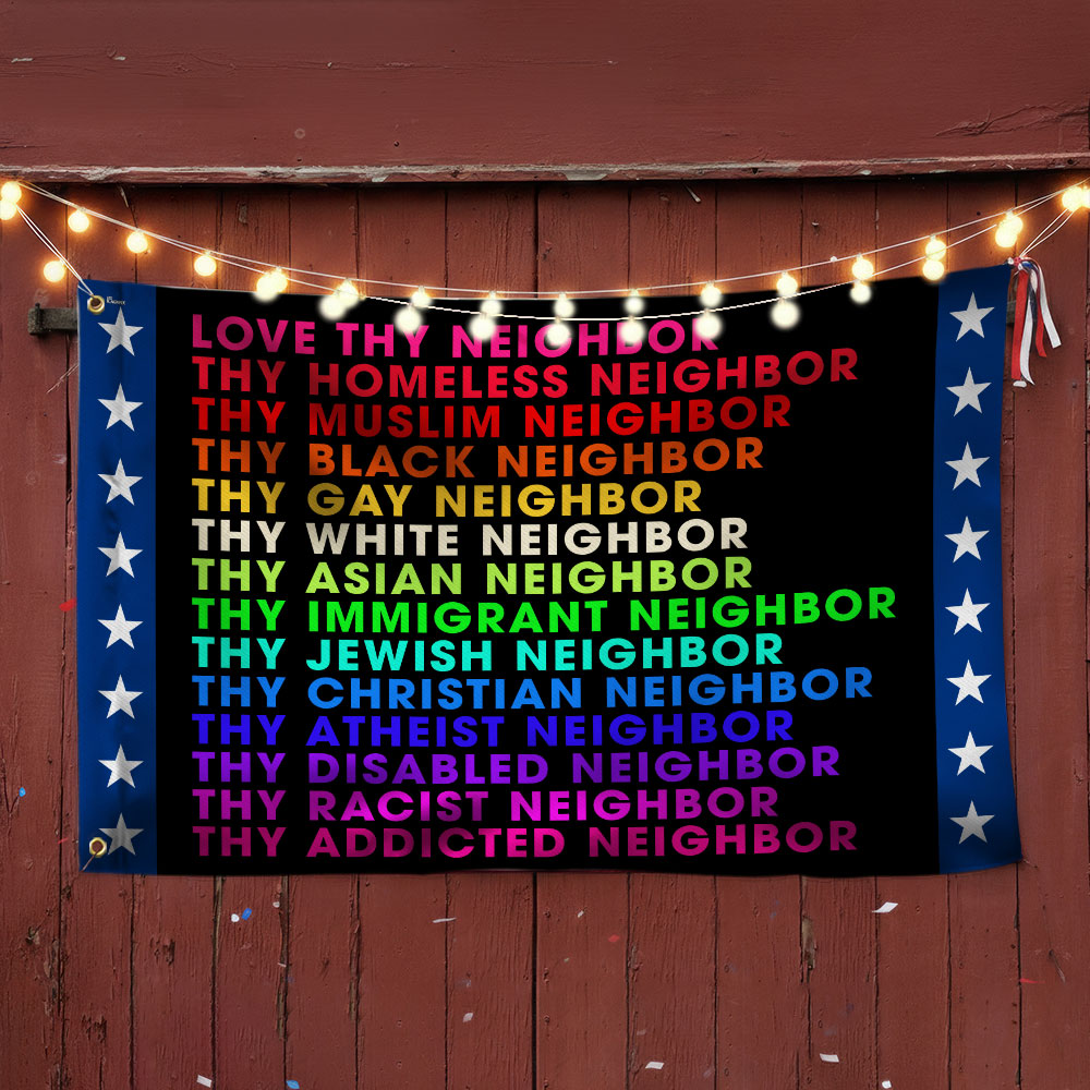 Love Thy Neighbor White Black Homeless LGBT Grommet Flag