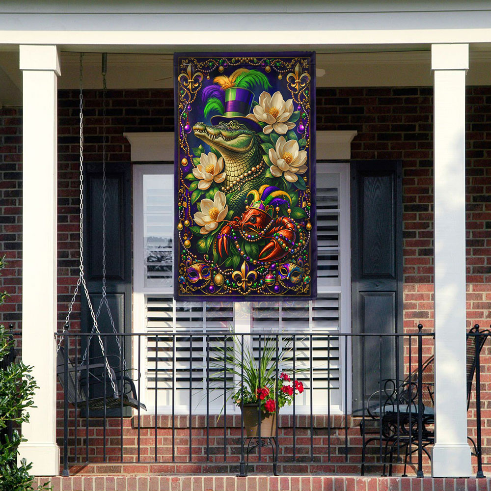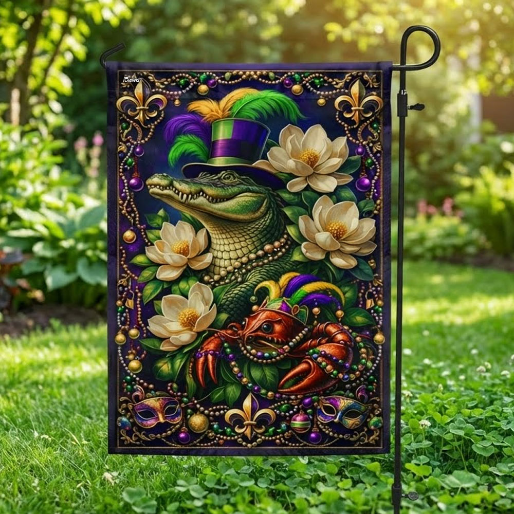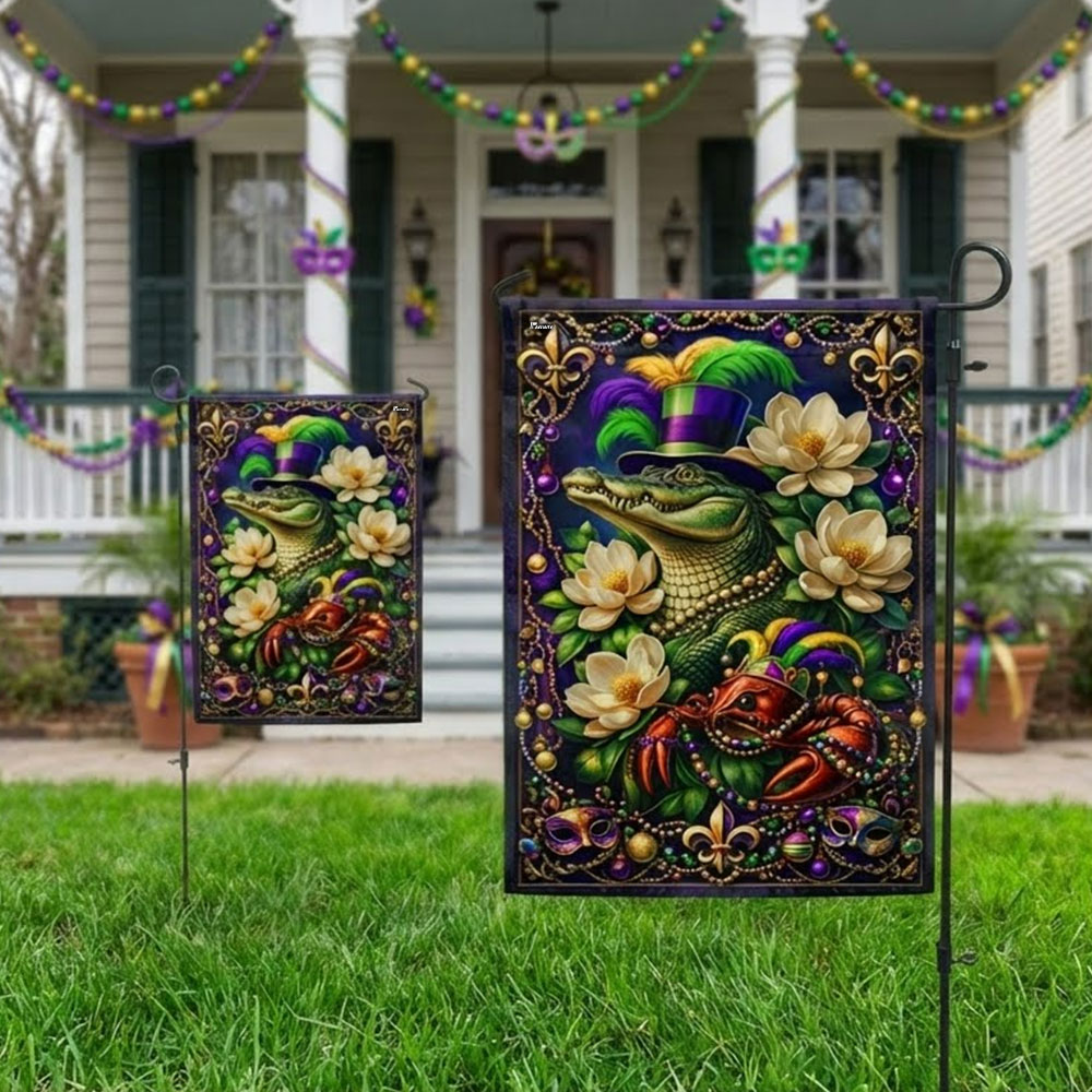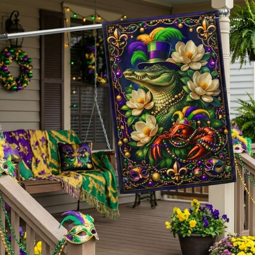 Mardi Gras Flag, Louisiana Magnolia Alligator and Crawfish Outdoor Decor