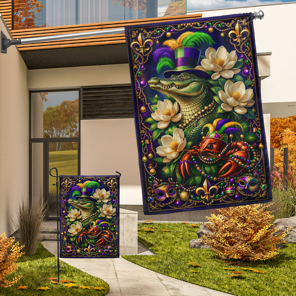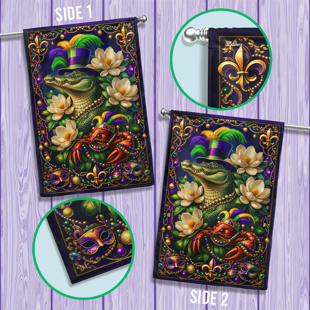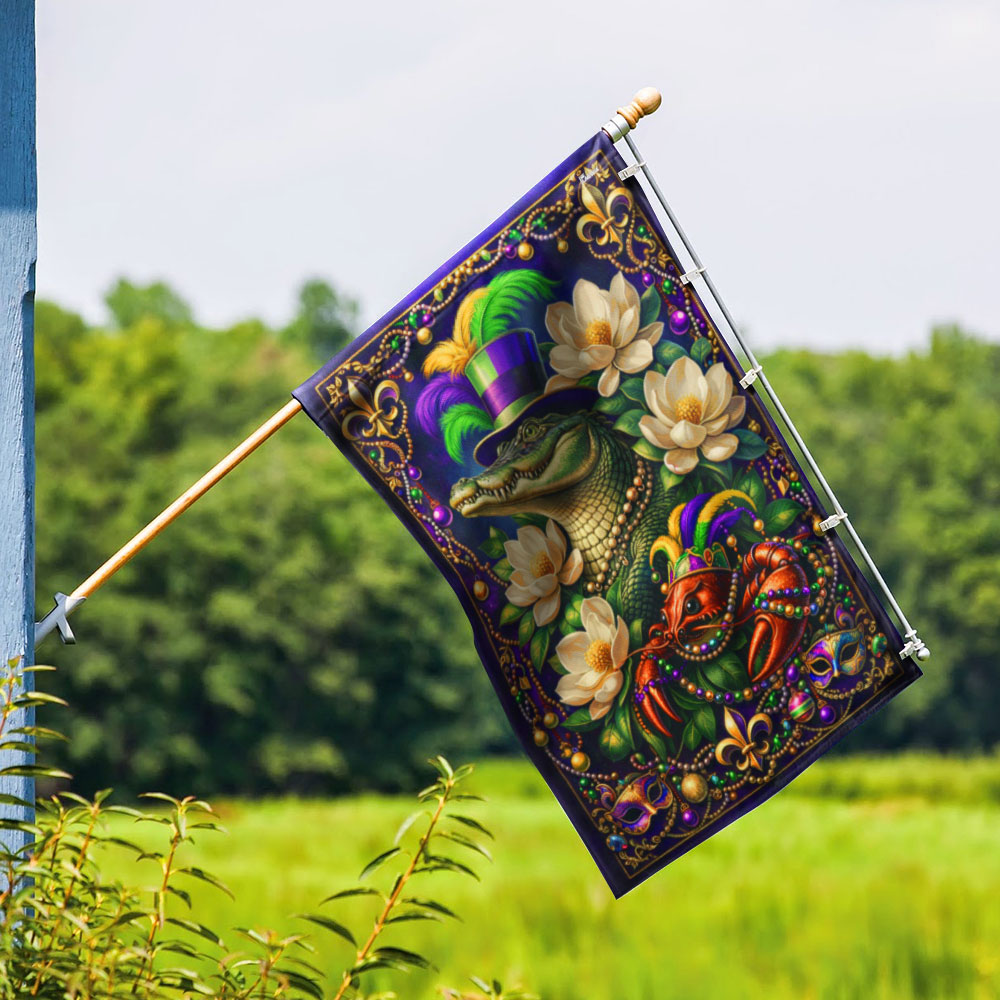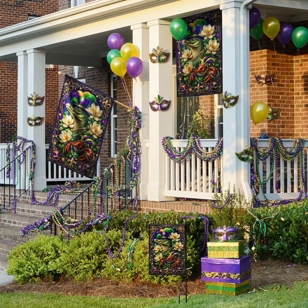 Mardi Gras Flag, Louisiana Magnolia Alligator and Crawfish Outdoor Decor