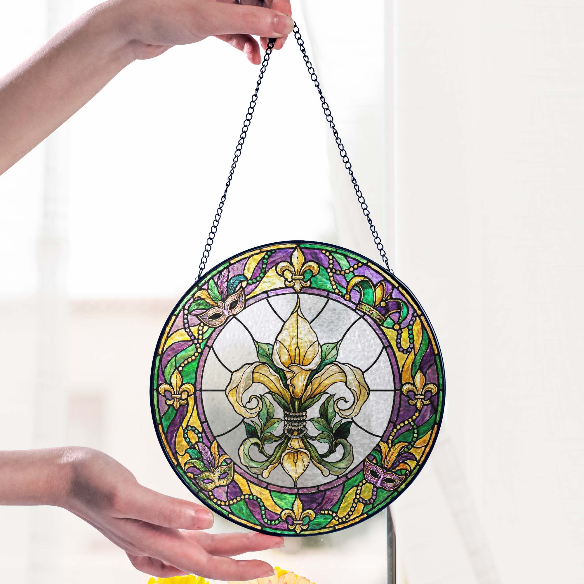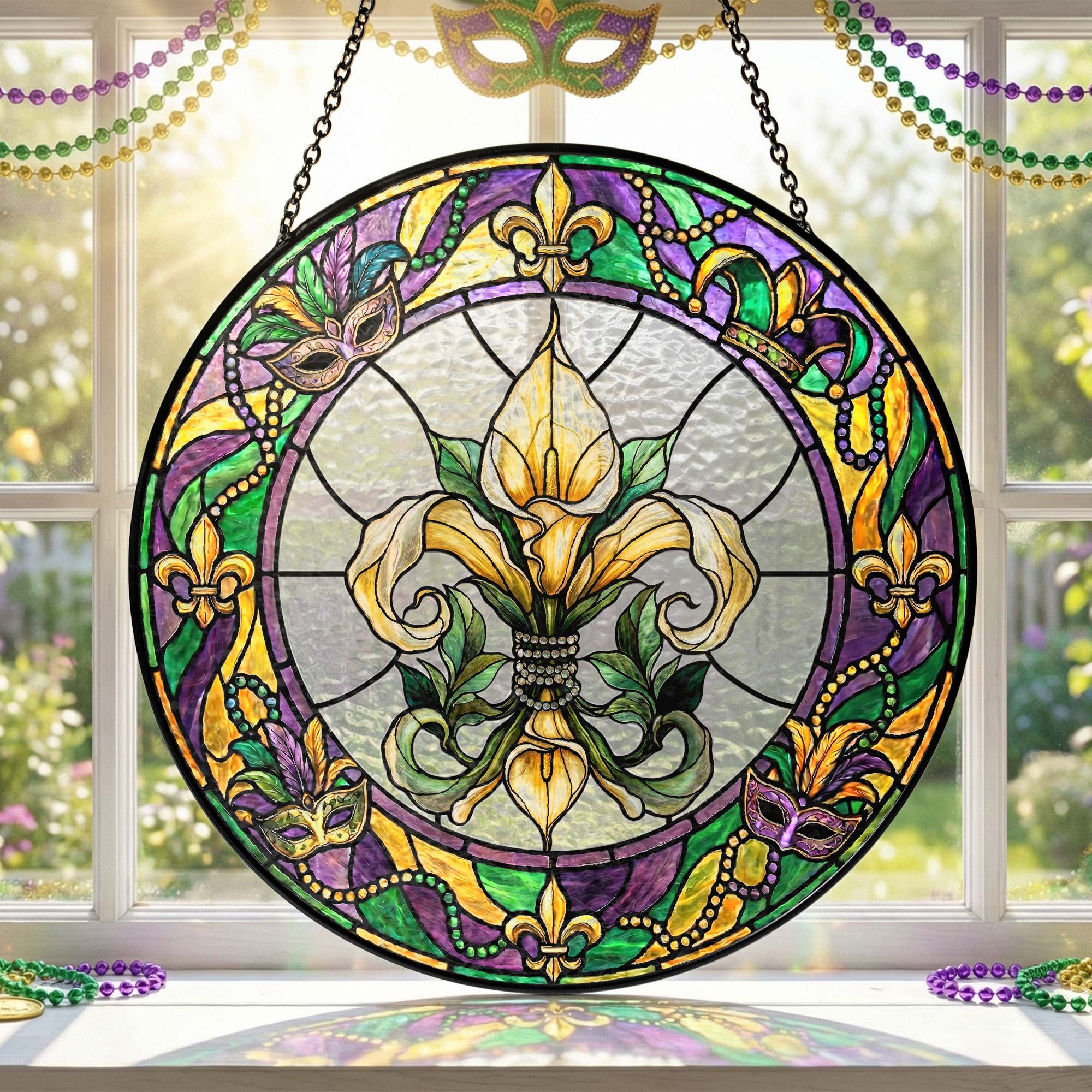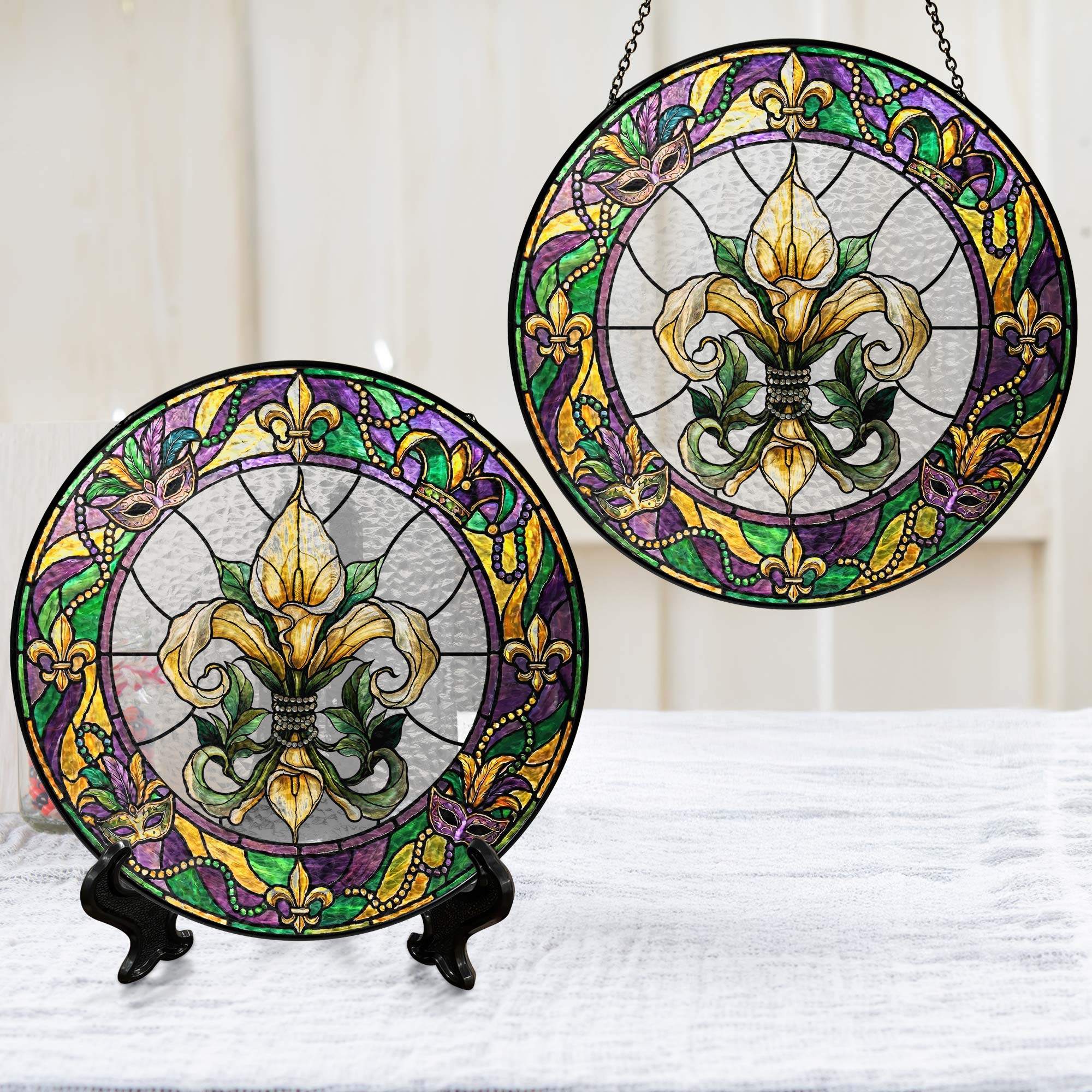 Mardi Gras Suncatcher, Stained glass Fleur de Lis Carnival Gift Decor