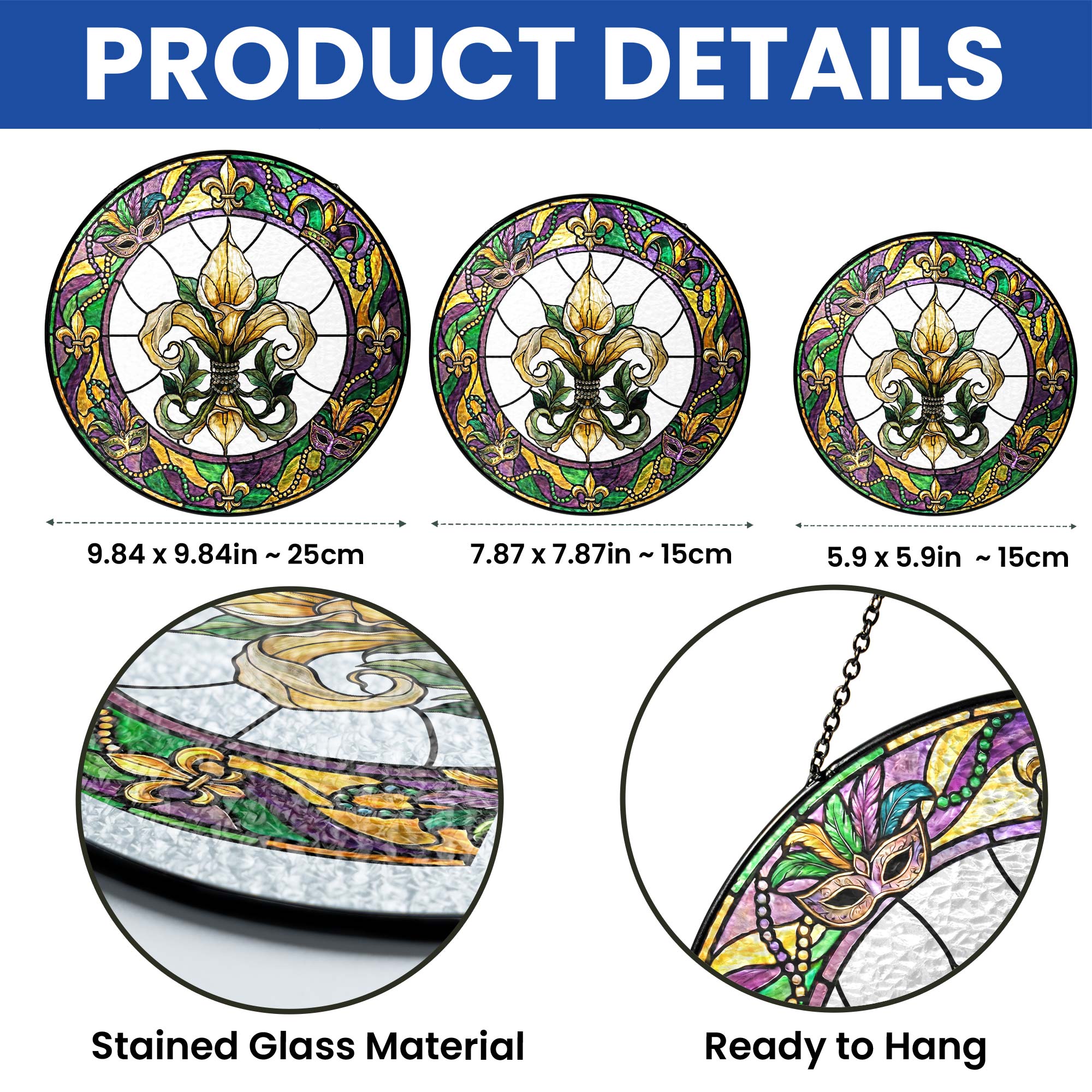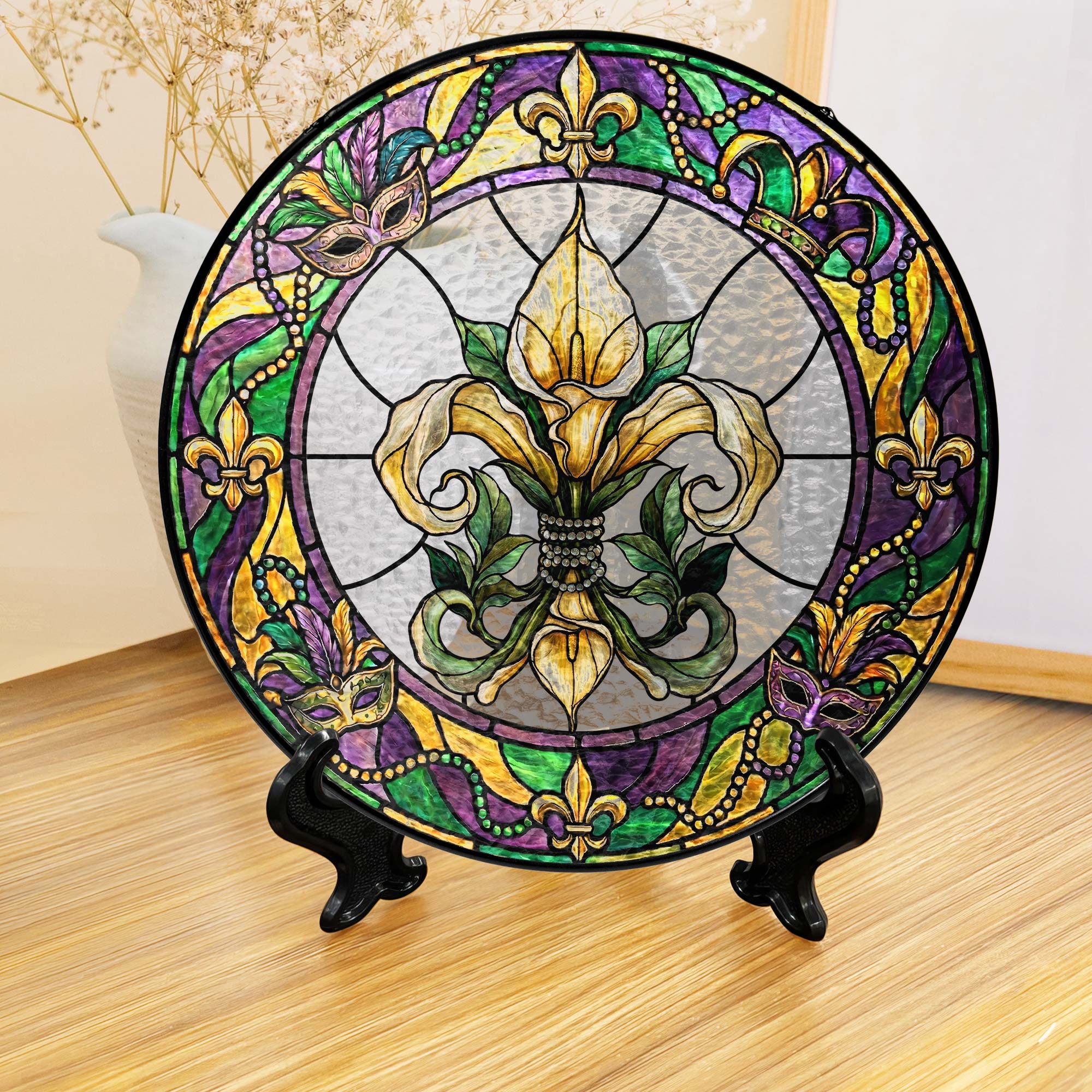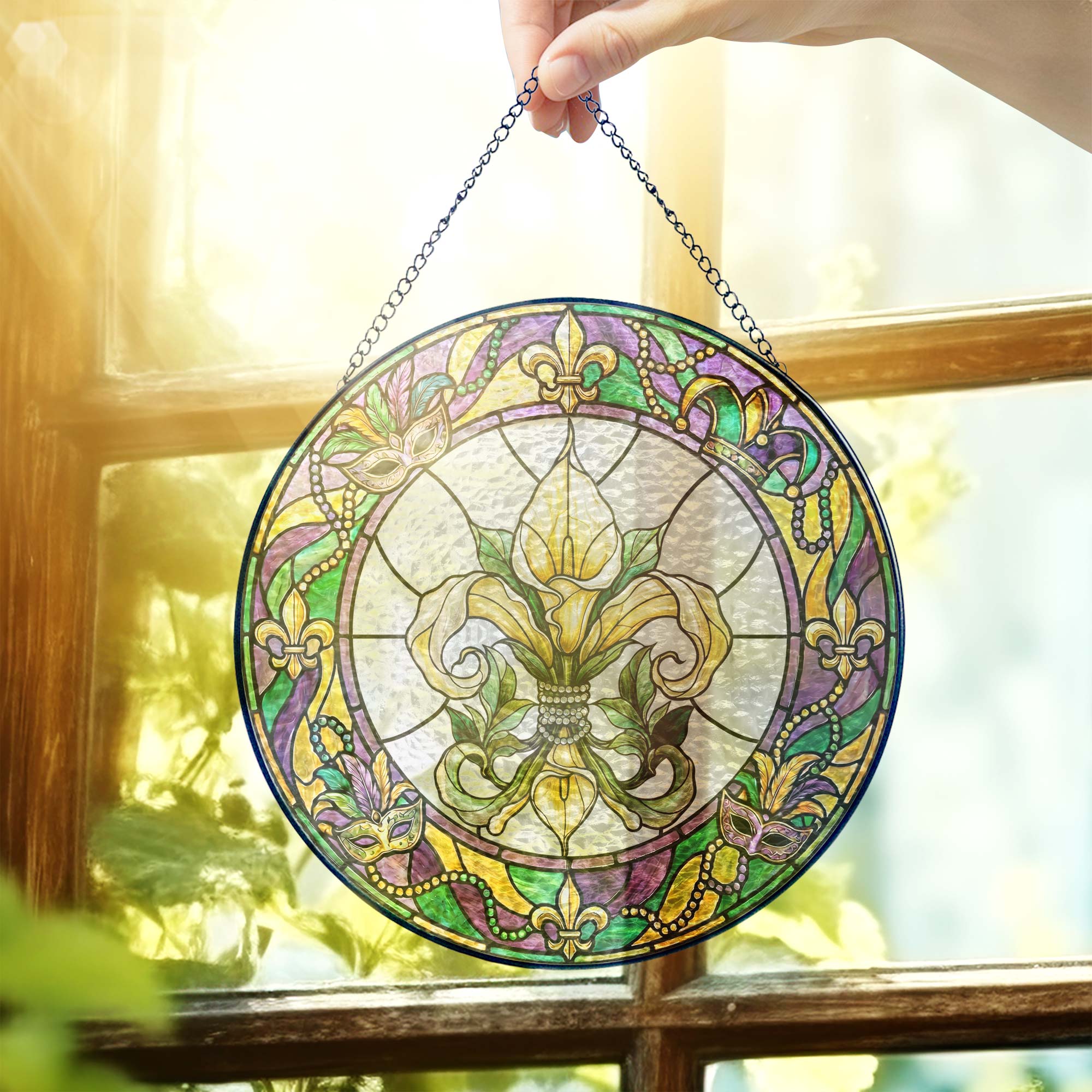 Mardi Gras Suncatcher, Stained glass Fleur de Lis Carnival Gift Decor