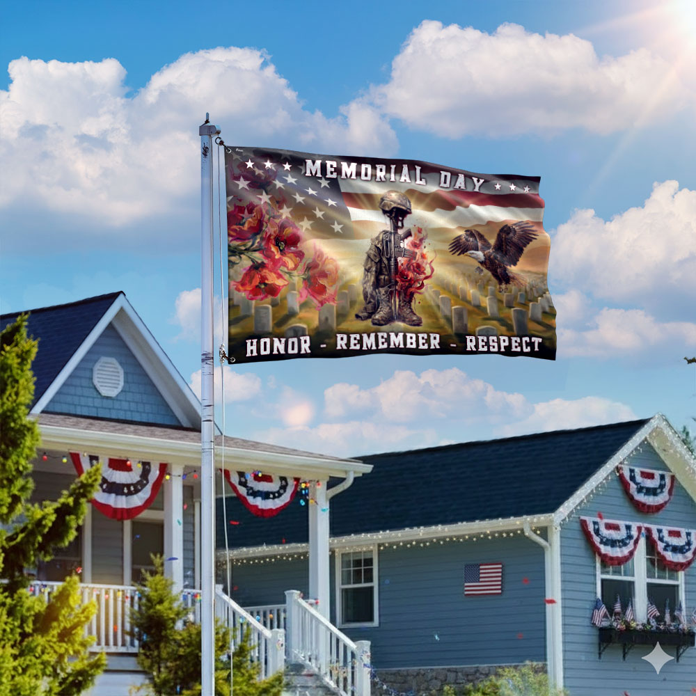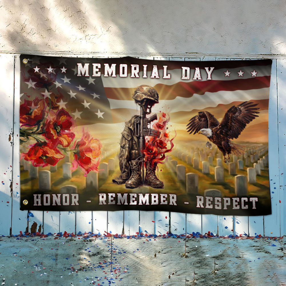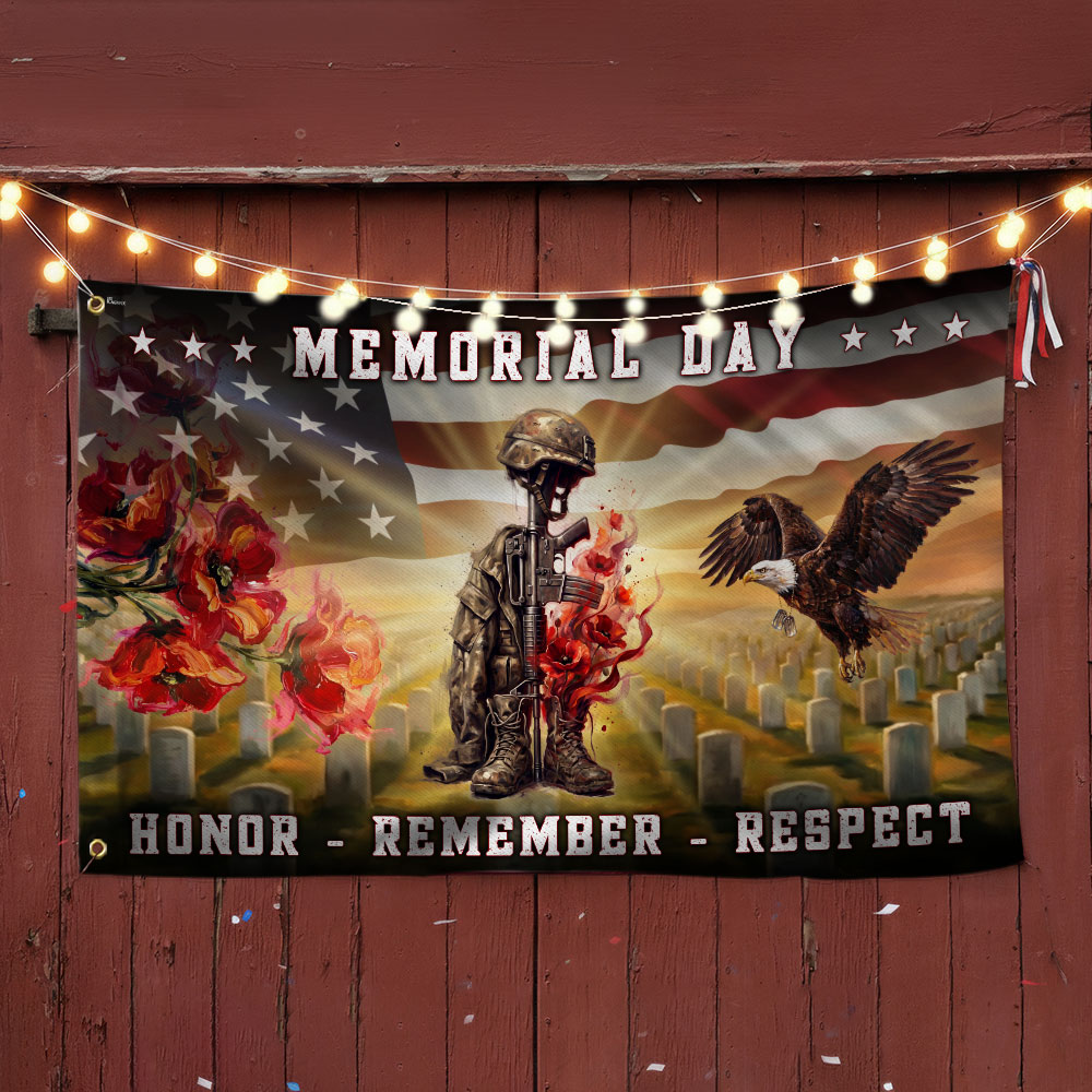 Memorial Day Battlefield Cross Honor Remember Respect Grommet Flag