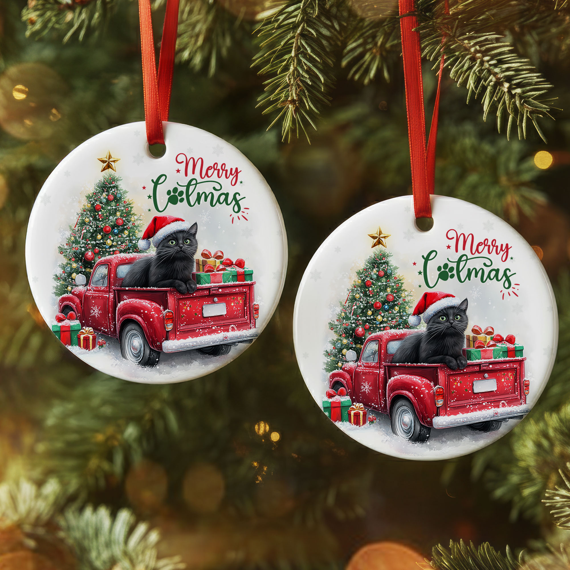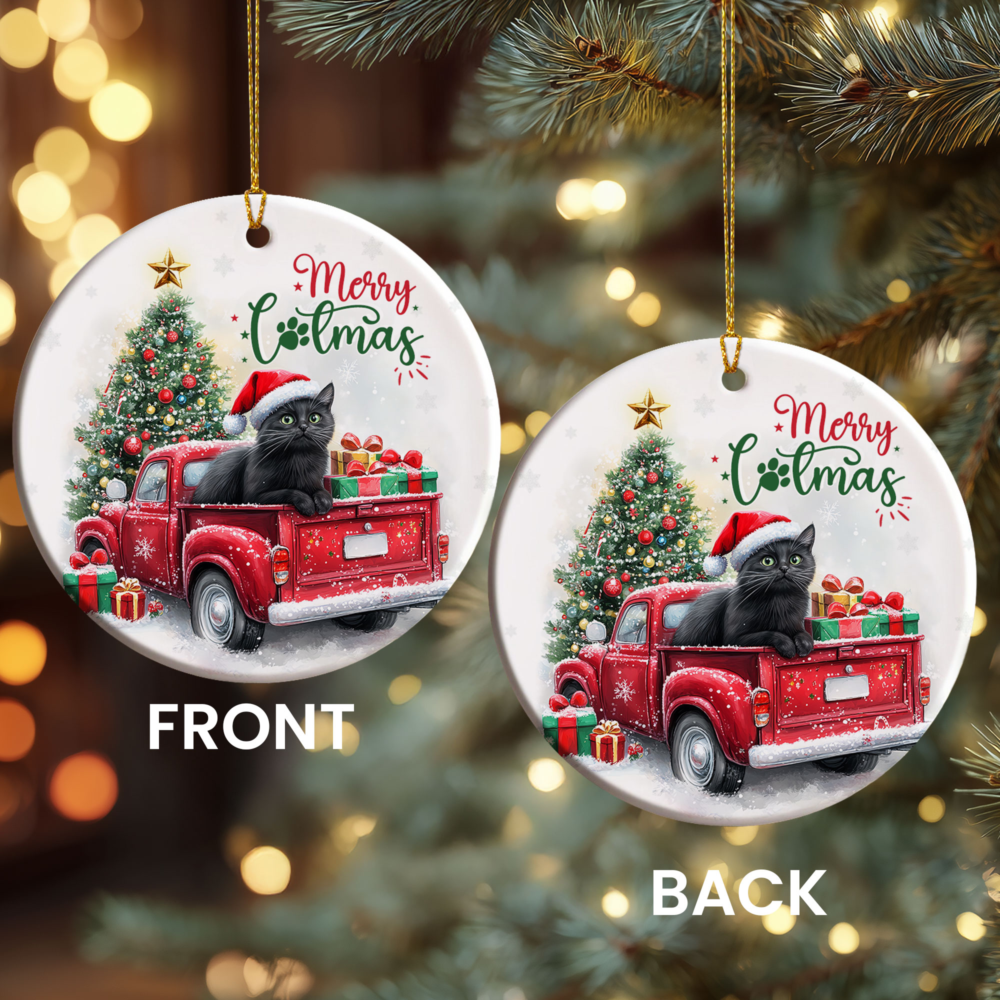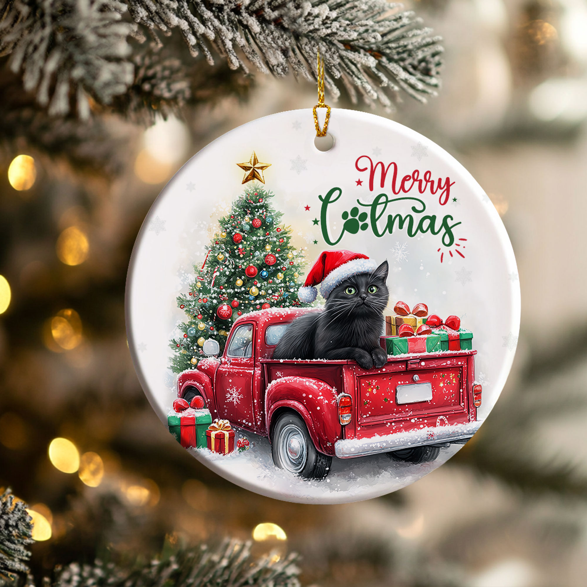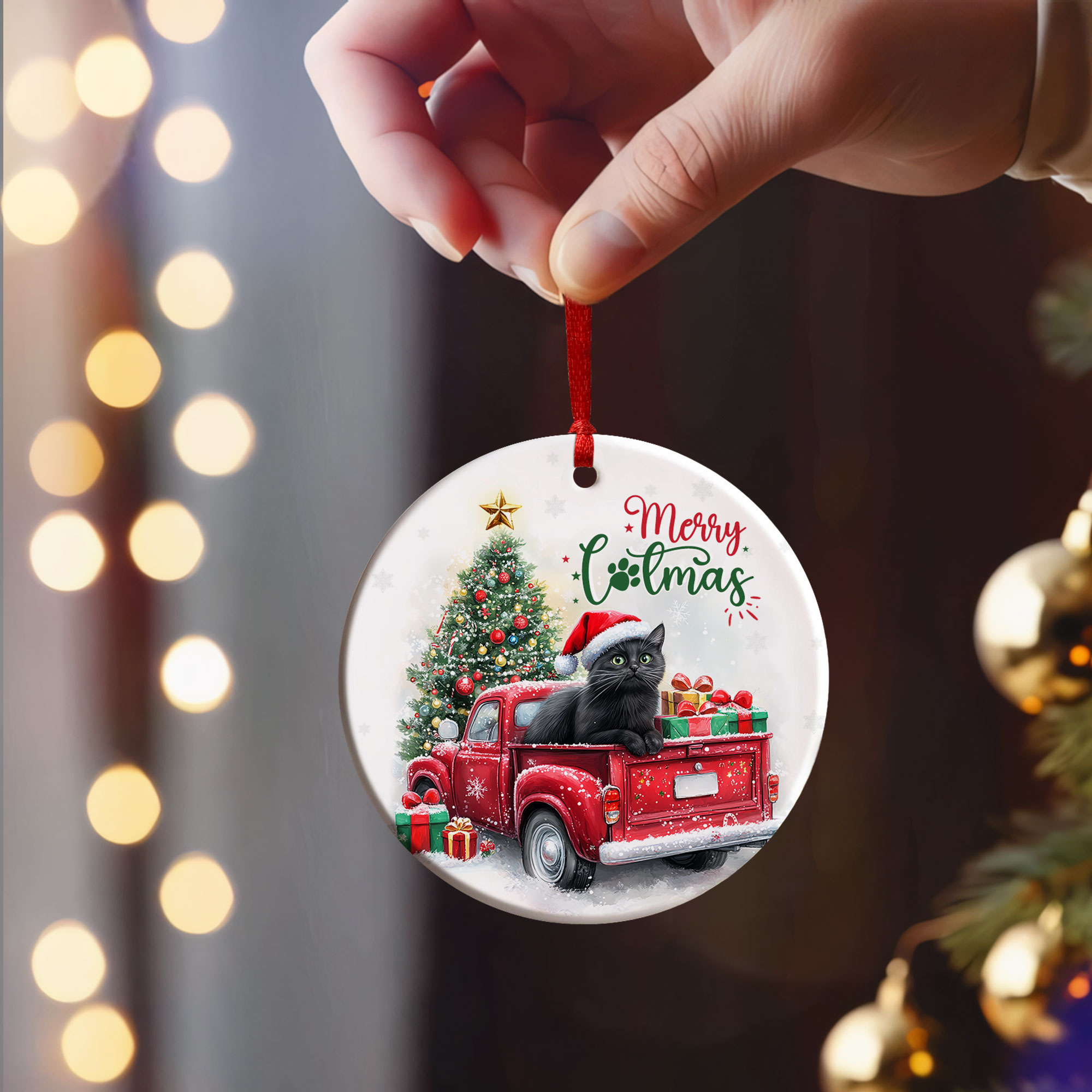Merry Catmas Ceramic Ornament | Bombay Cat Christmas Decor for Cat Lovers