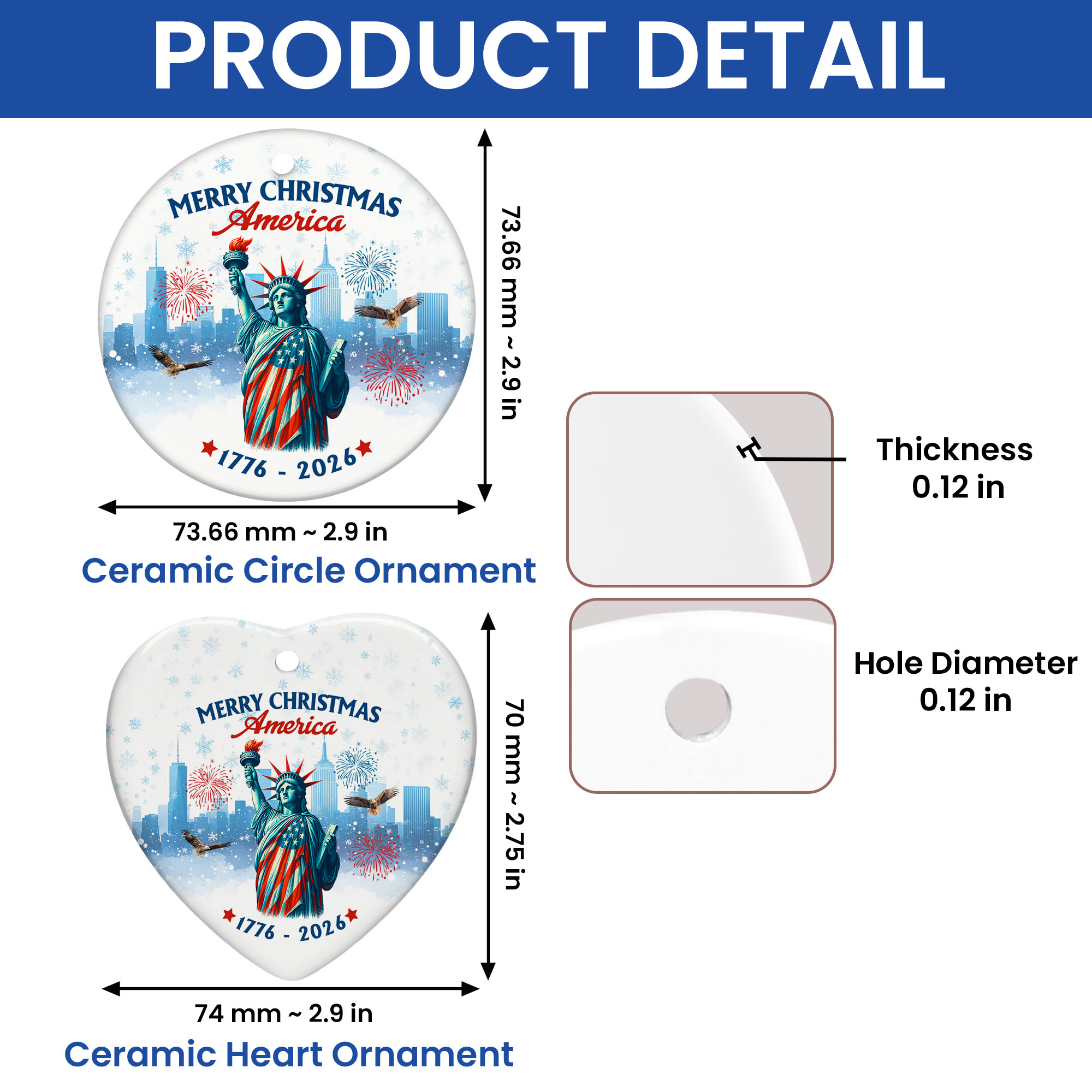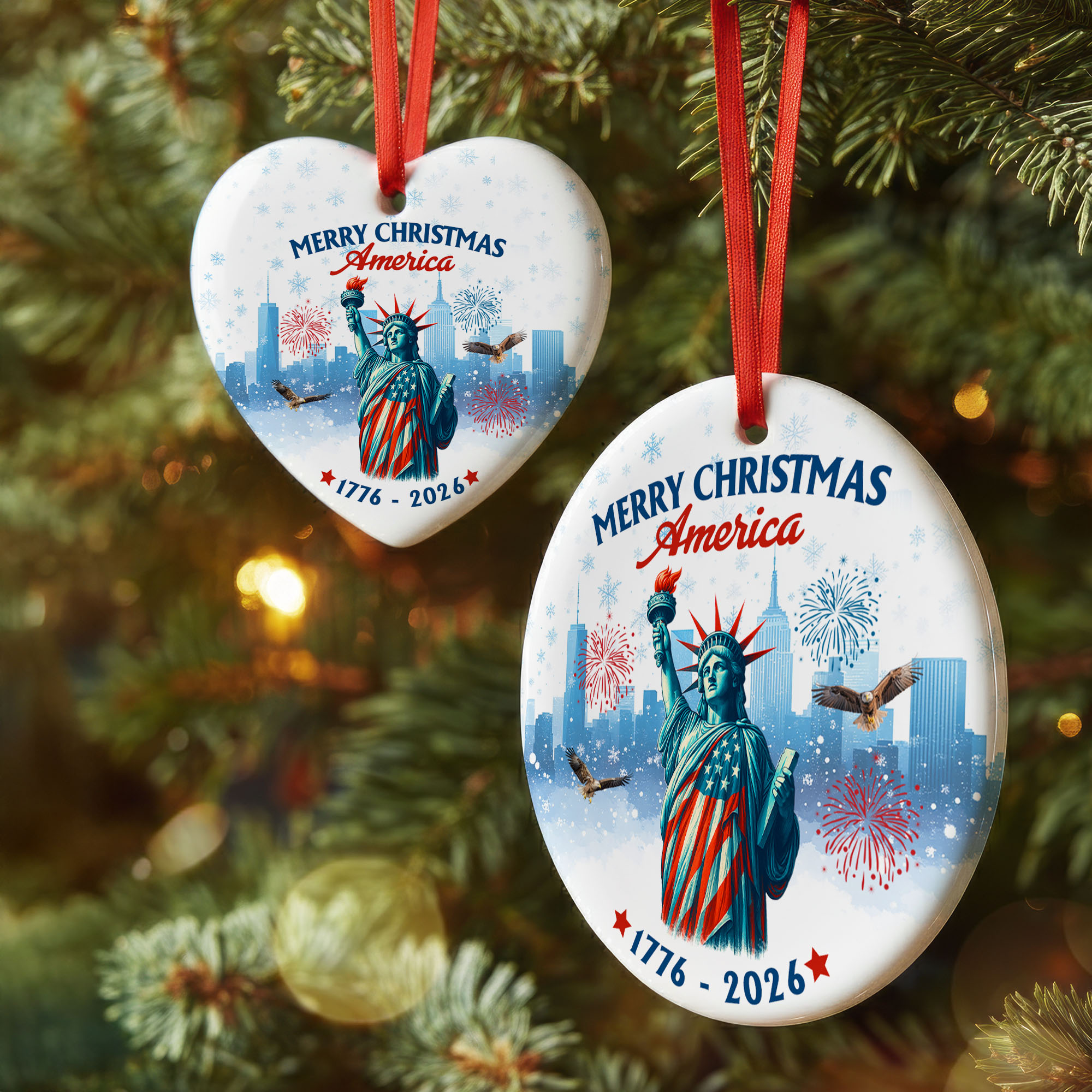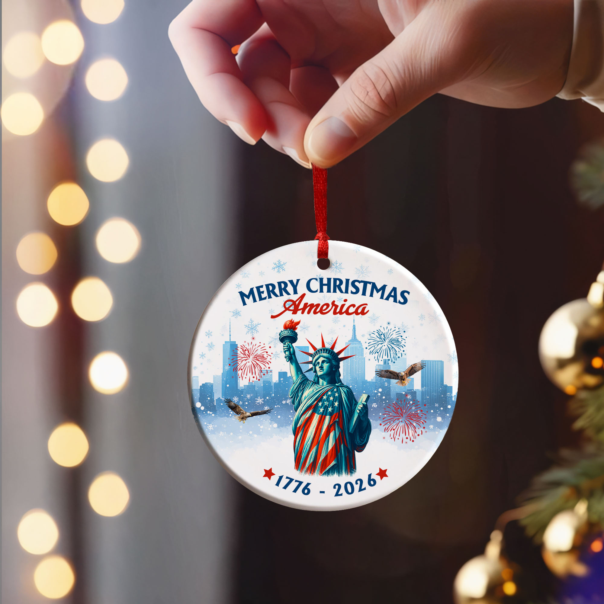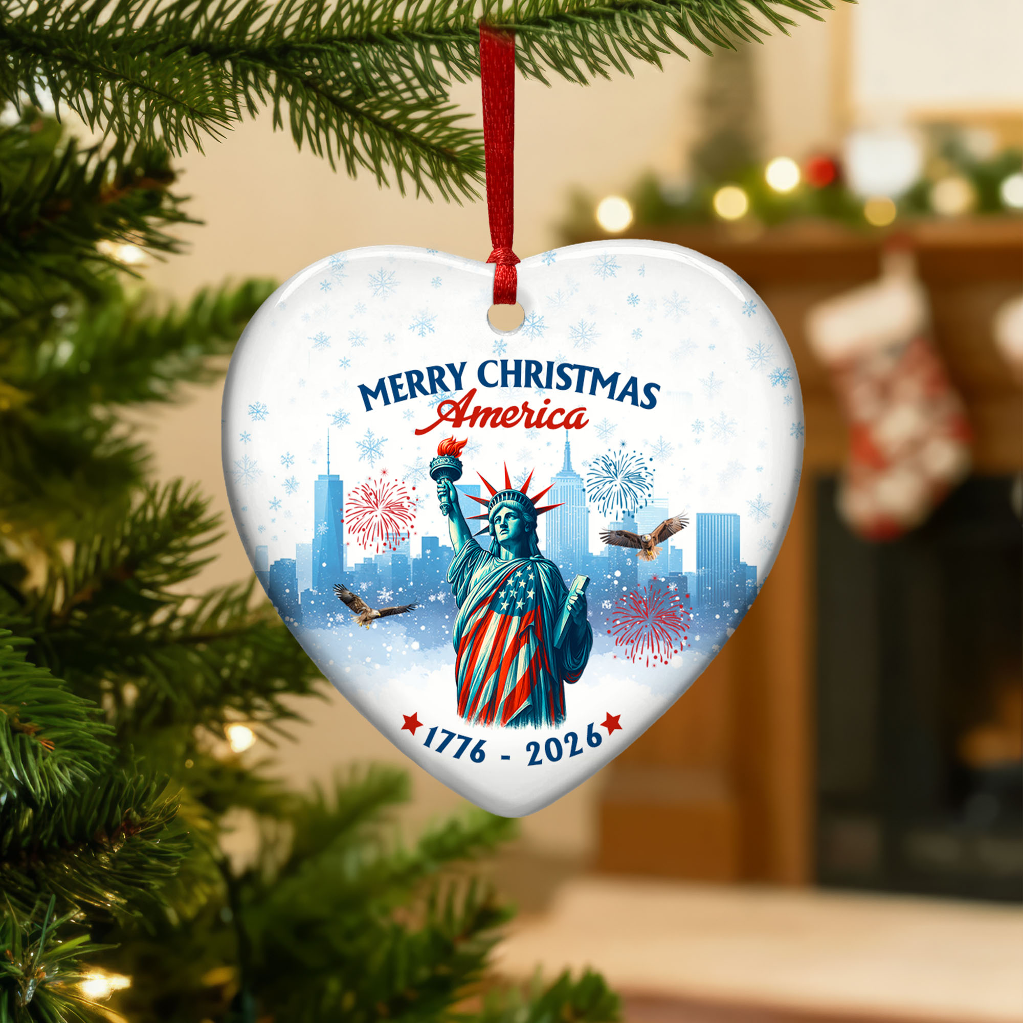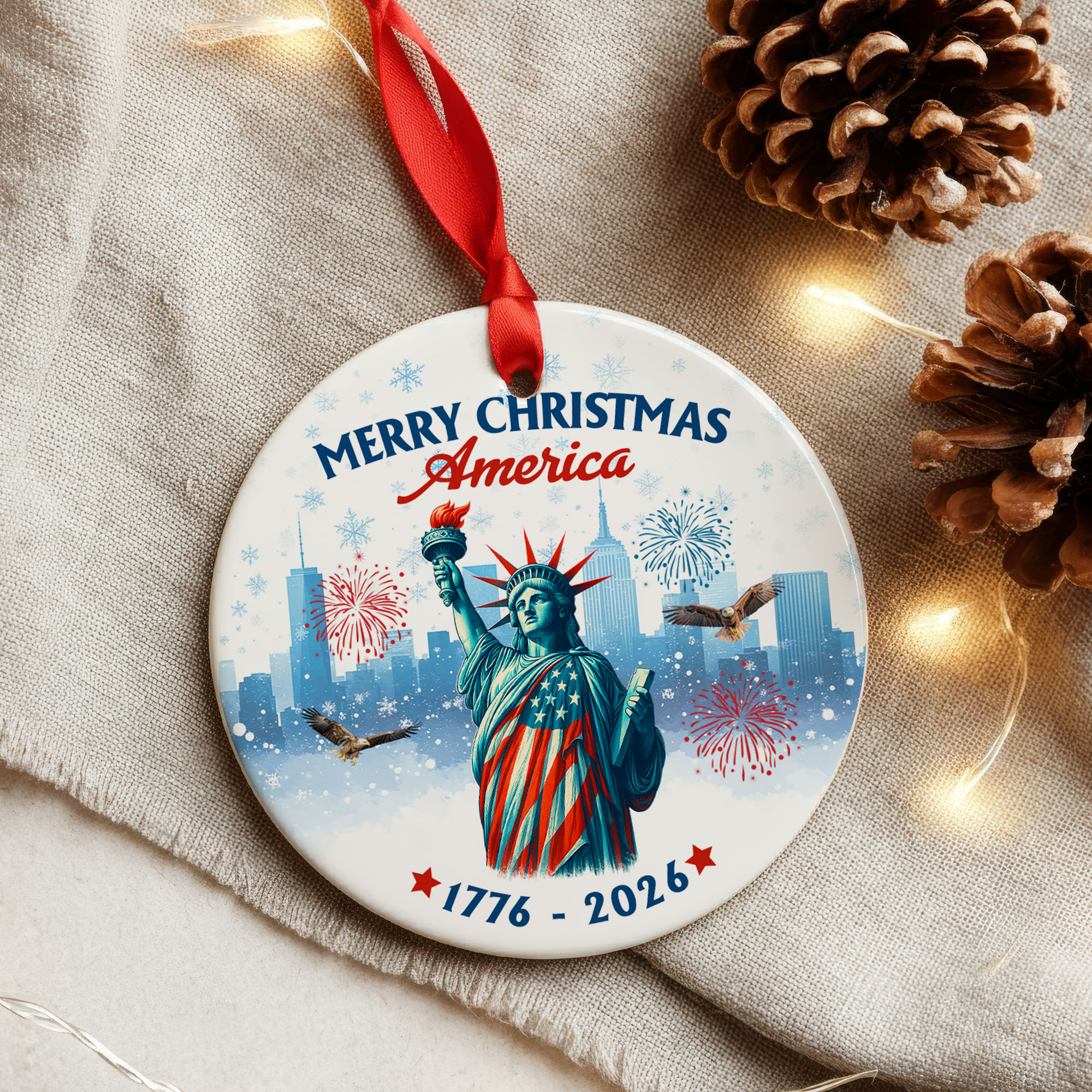Merry Christmas America Ornament | Patriotic Liberty Ceramic Ornament