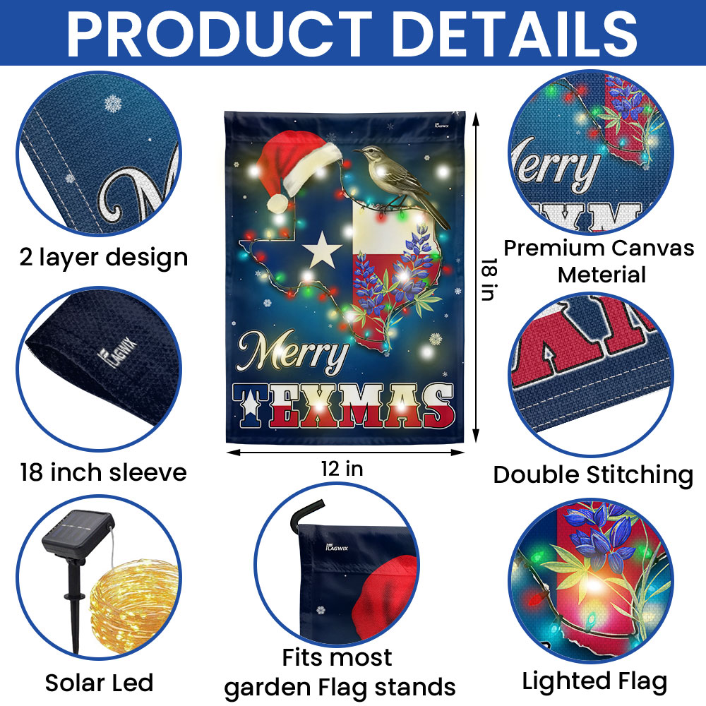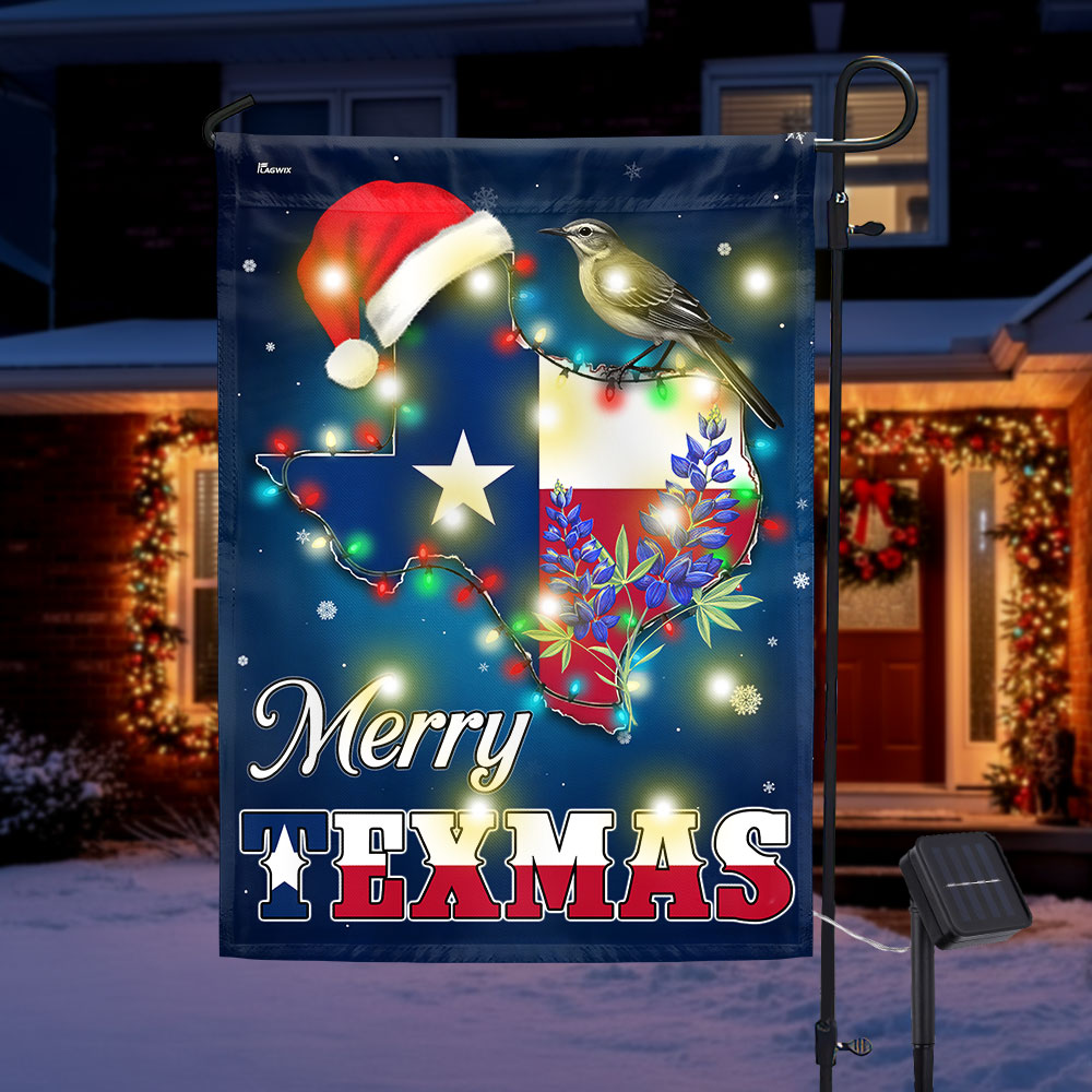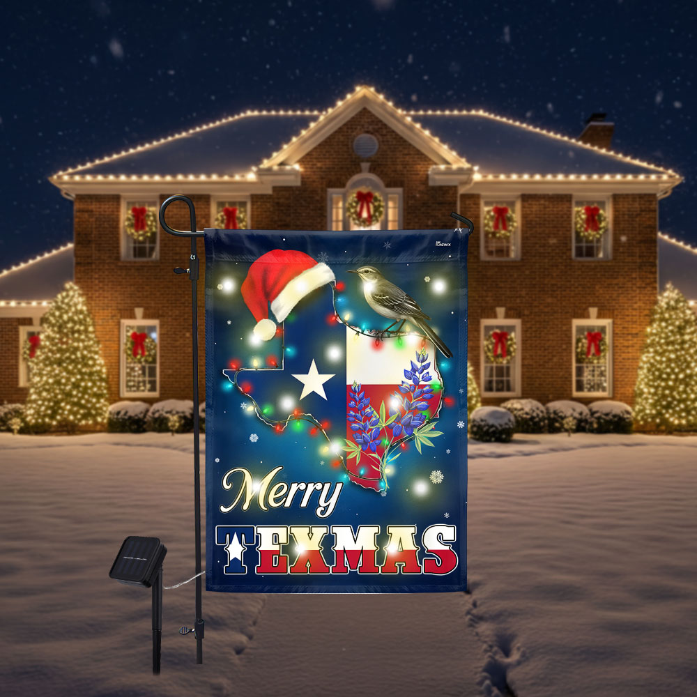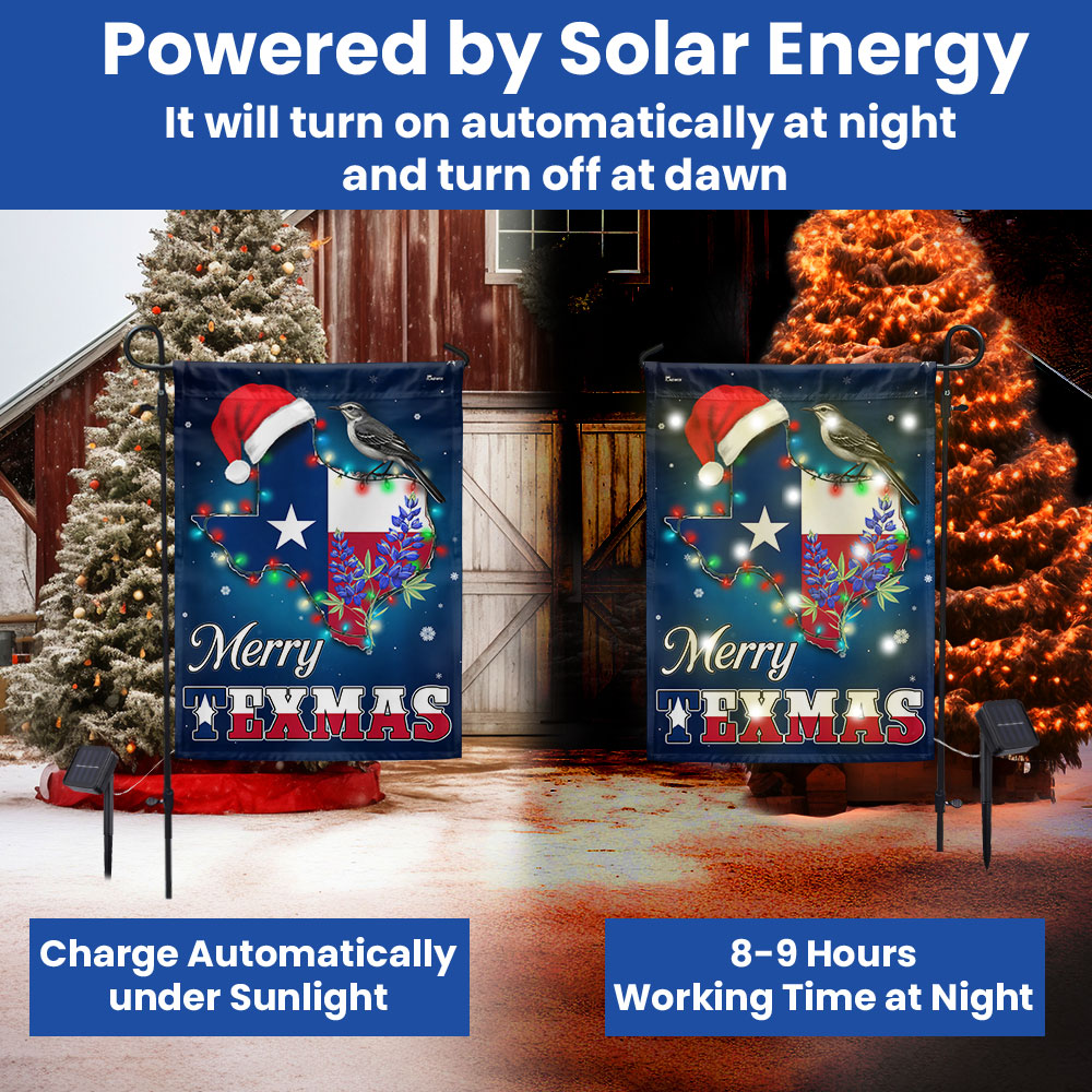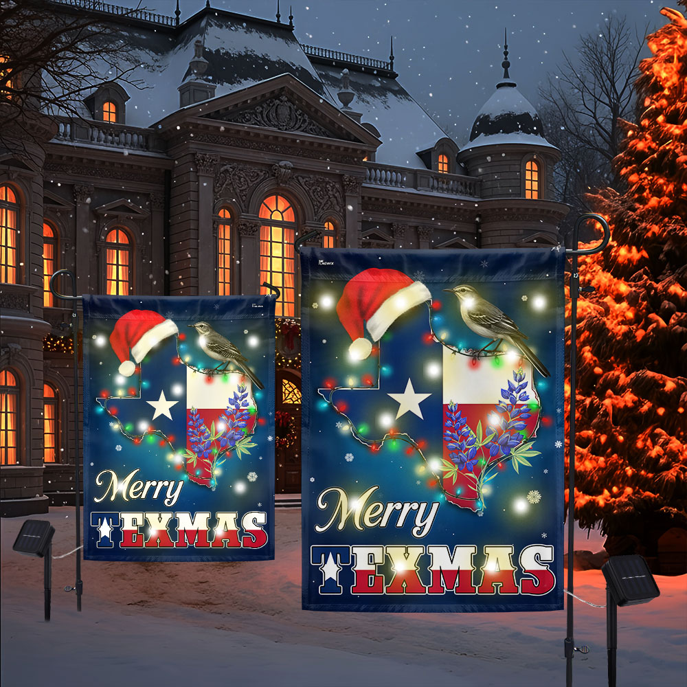 Merry Texmas Flag | Texas Northern Mockingbird Christmas Solar LED Flag