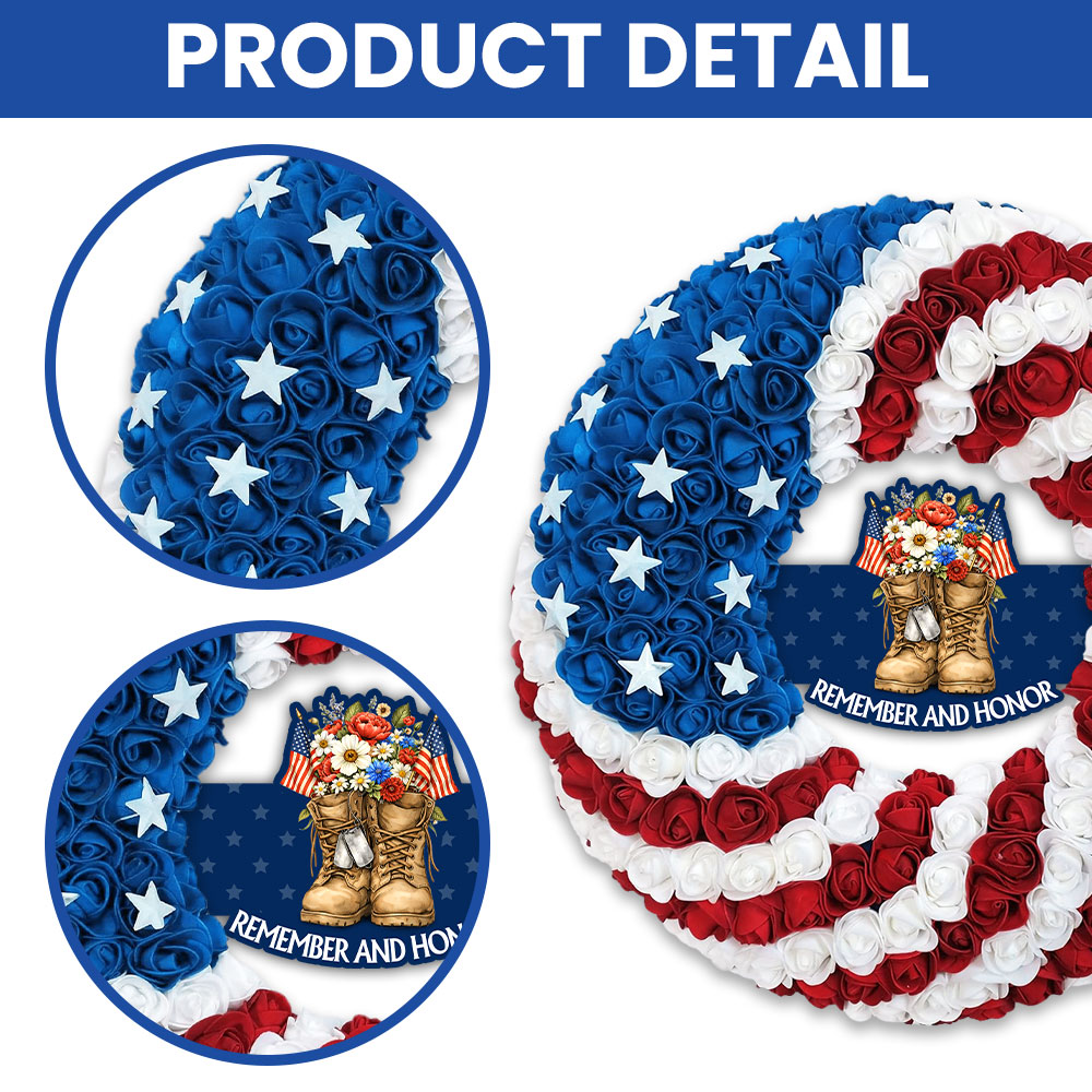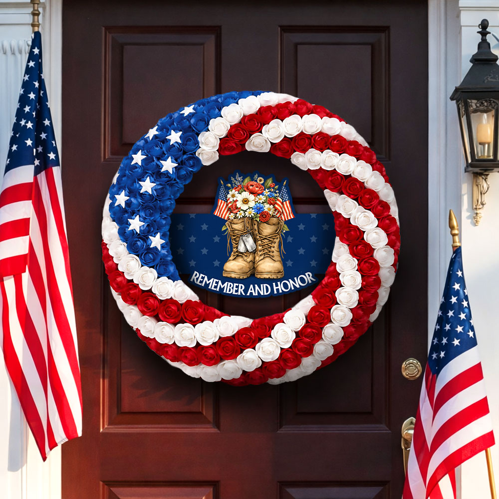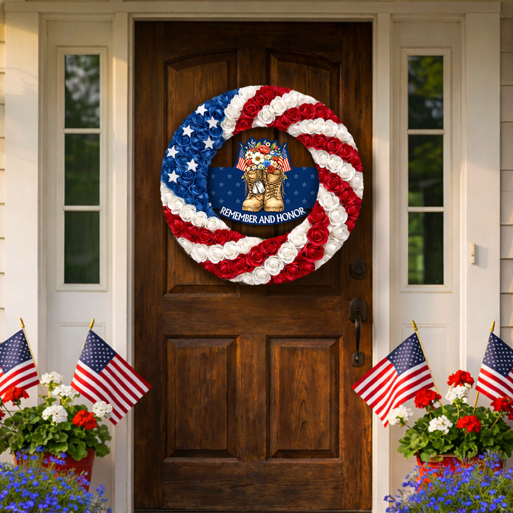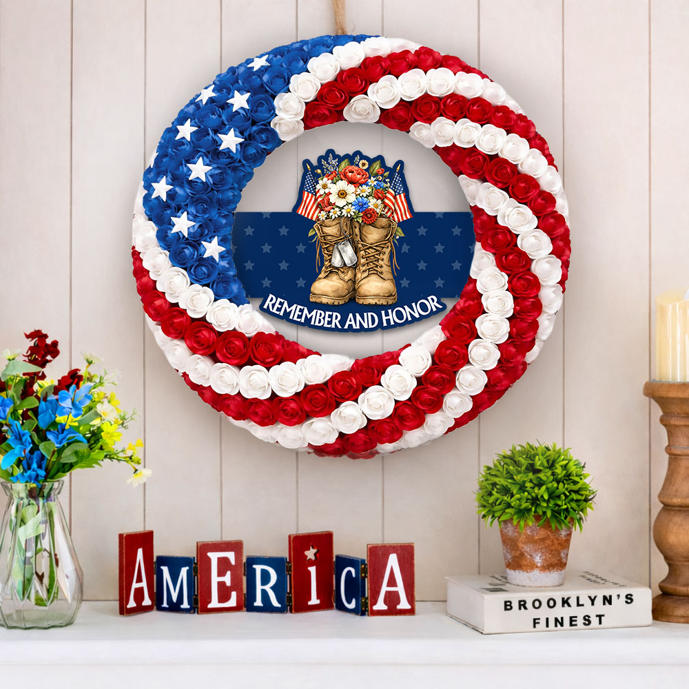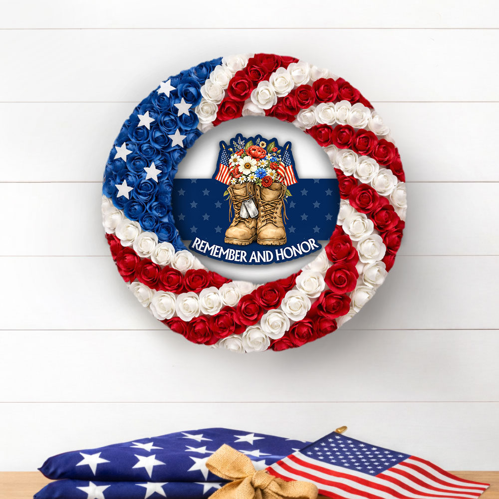 Military Boots Floral Memorial Day Remember And Honor Rose Wreath