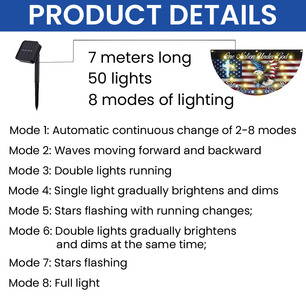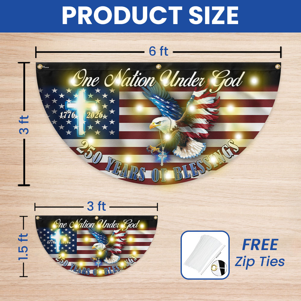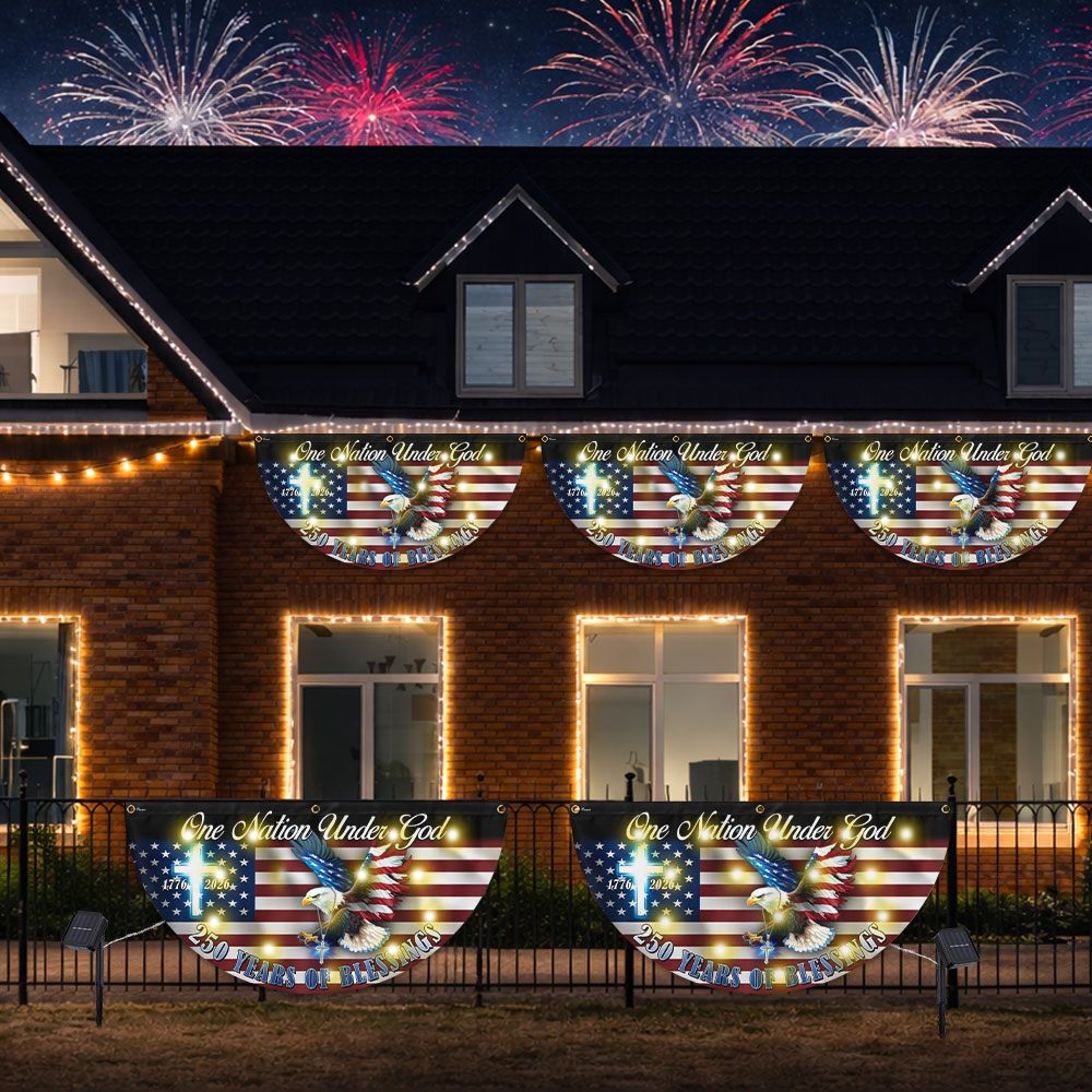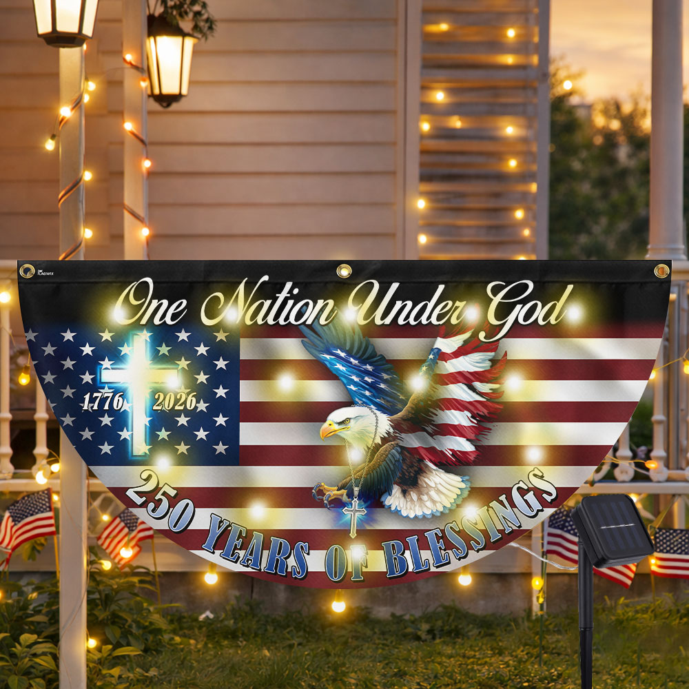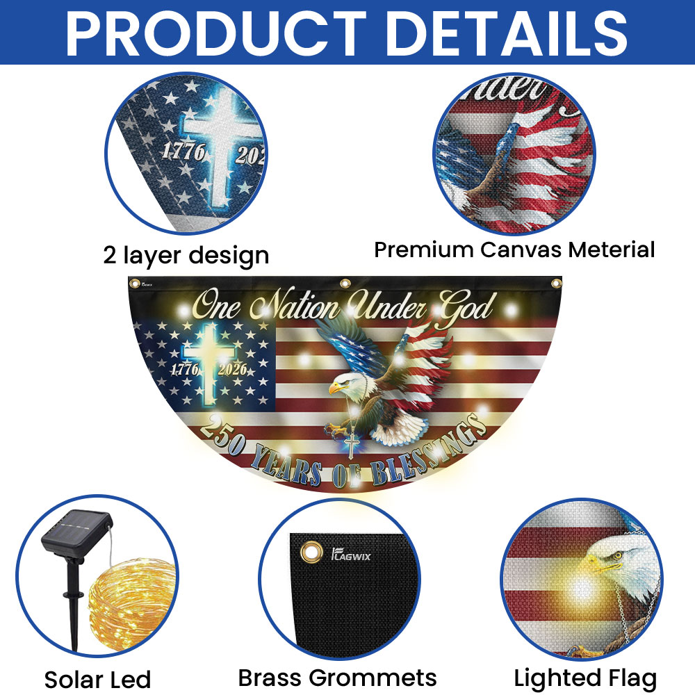One Nation Under God 250 Years of Blessings Eagle Cross Solar Led Fan Flag