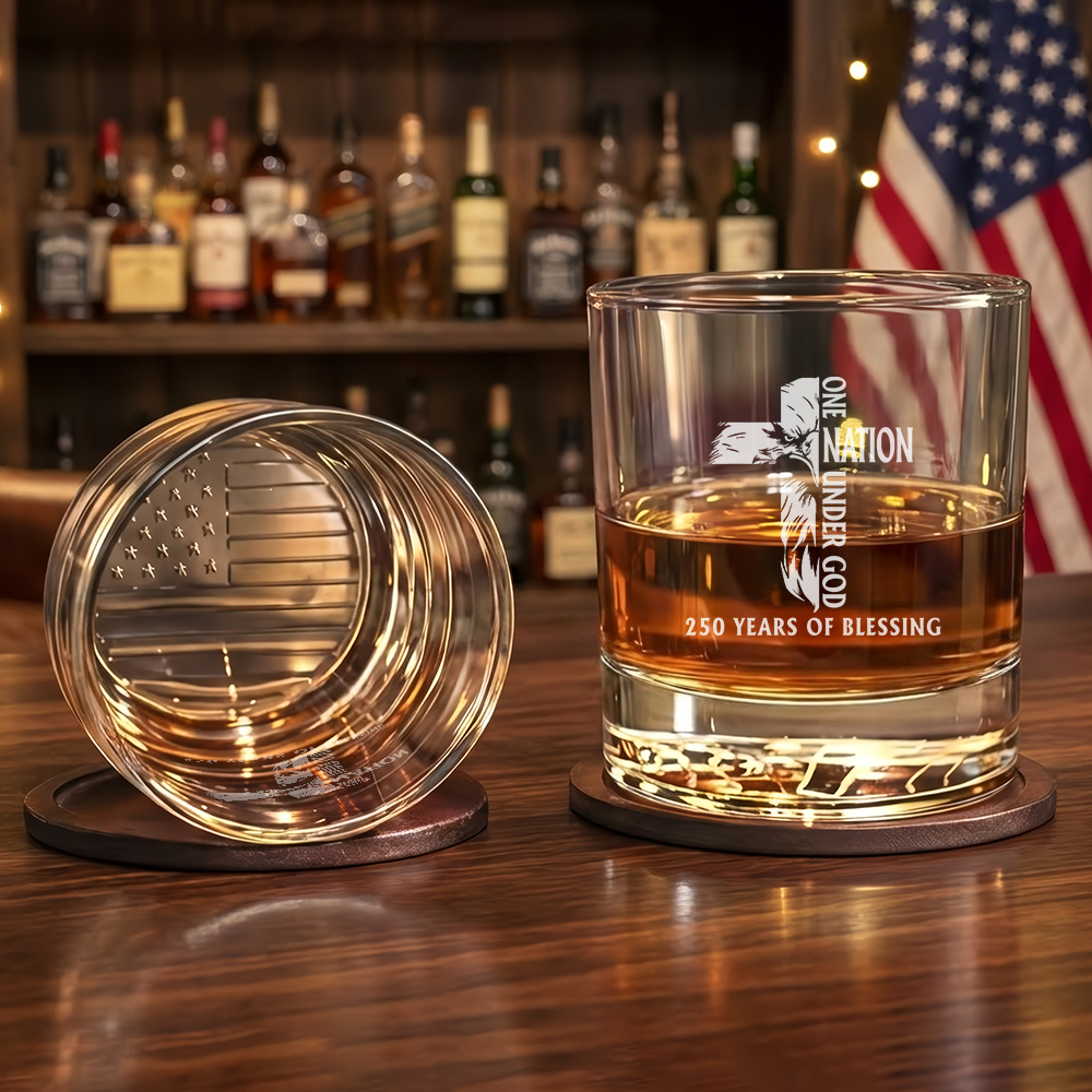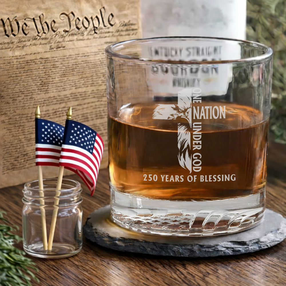 One Nation Under God American Engraved Whiskey Glass Patriotic Gift