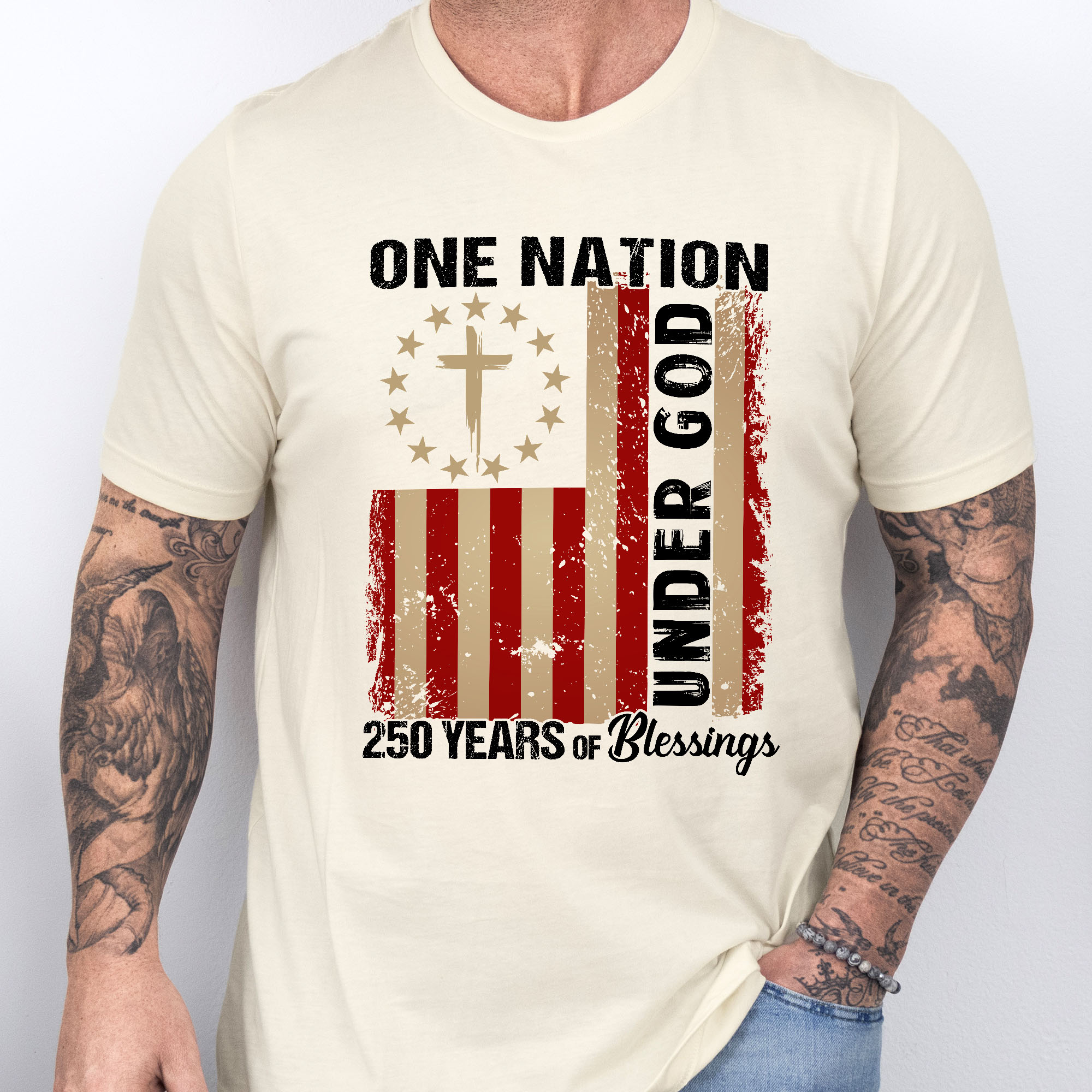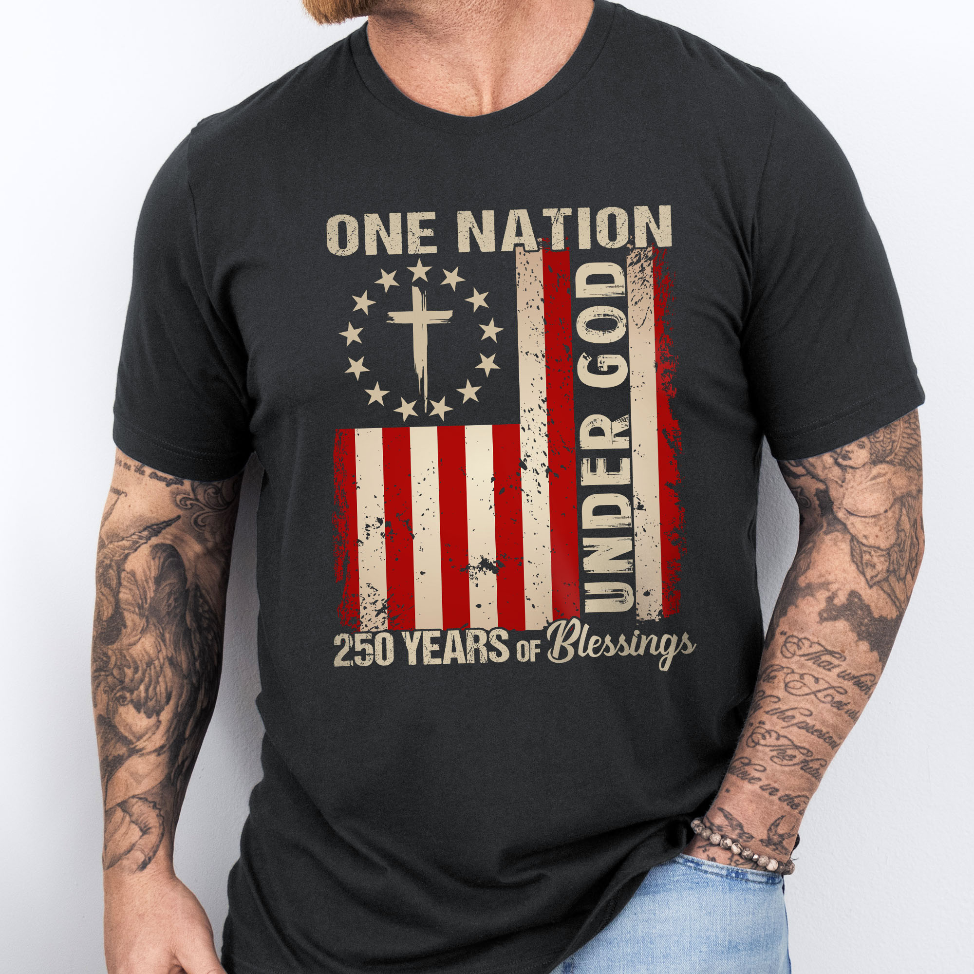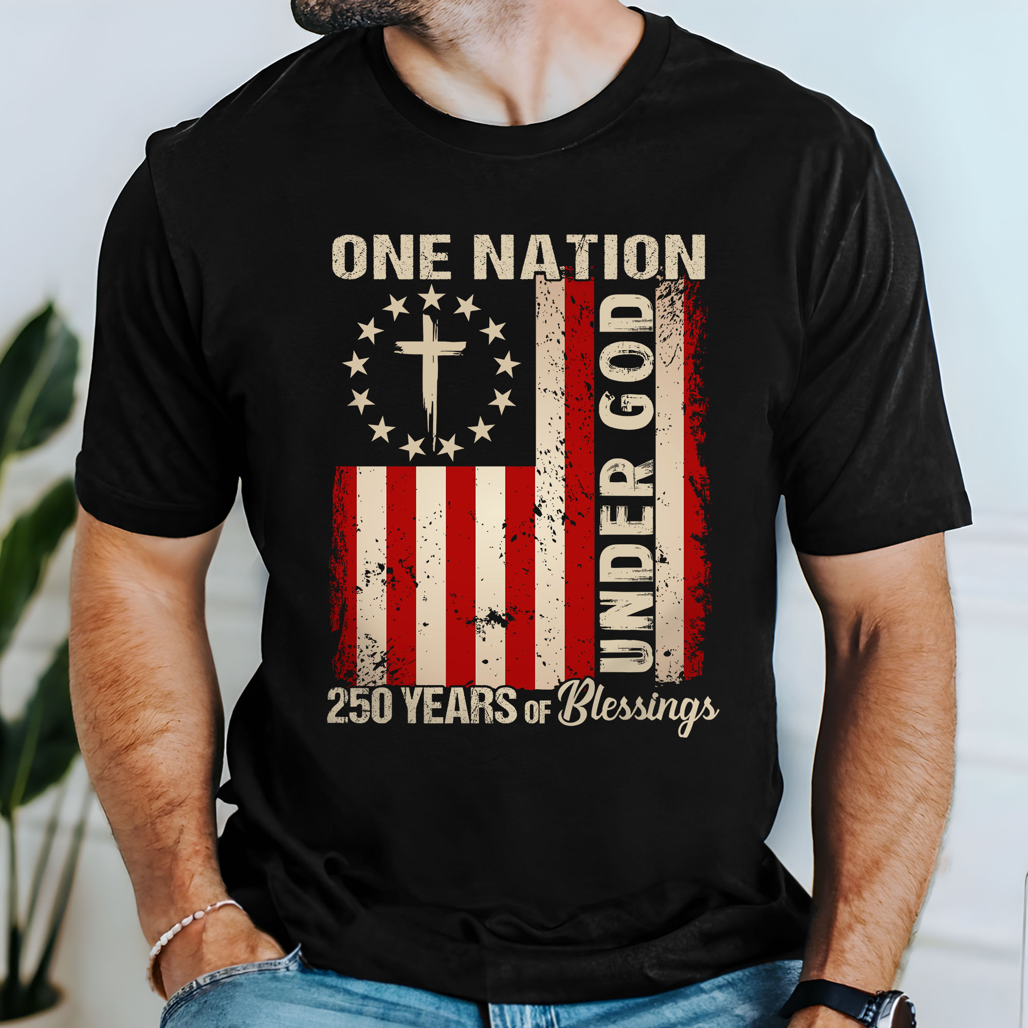 One Nation Under God Christian T-shirt, 250 Years of Blessing 1776 2026 Patriotic Tee